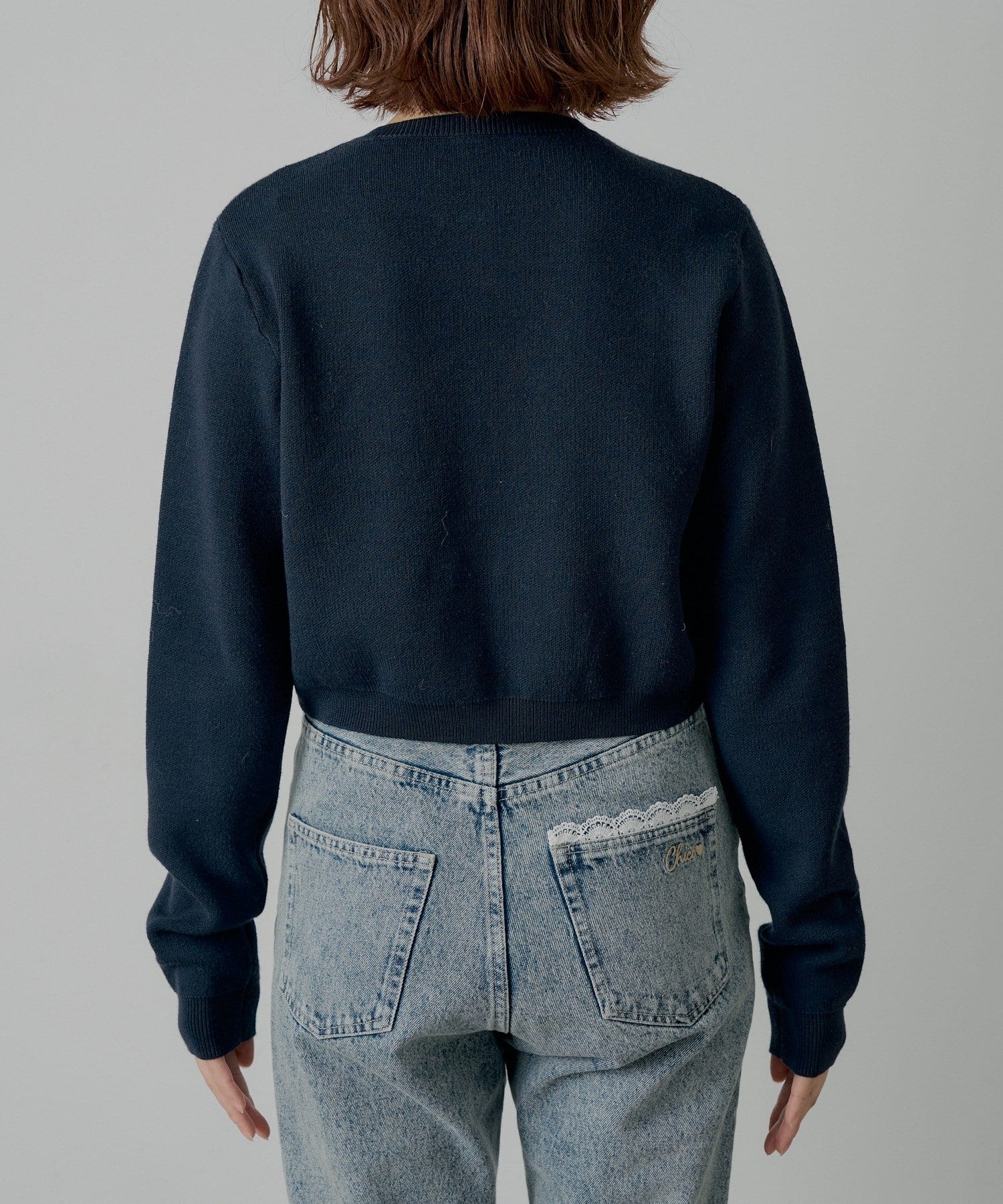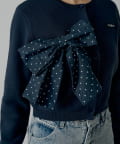 リボンはニットと同色なので大人かわいい💙