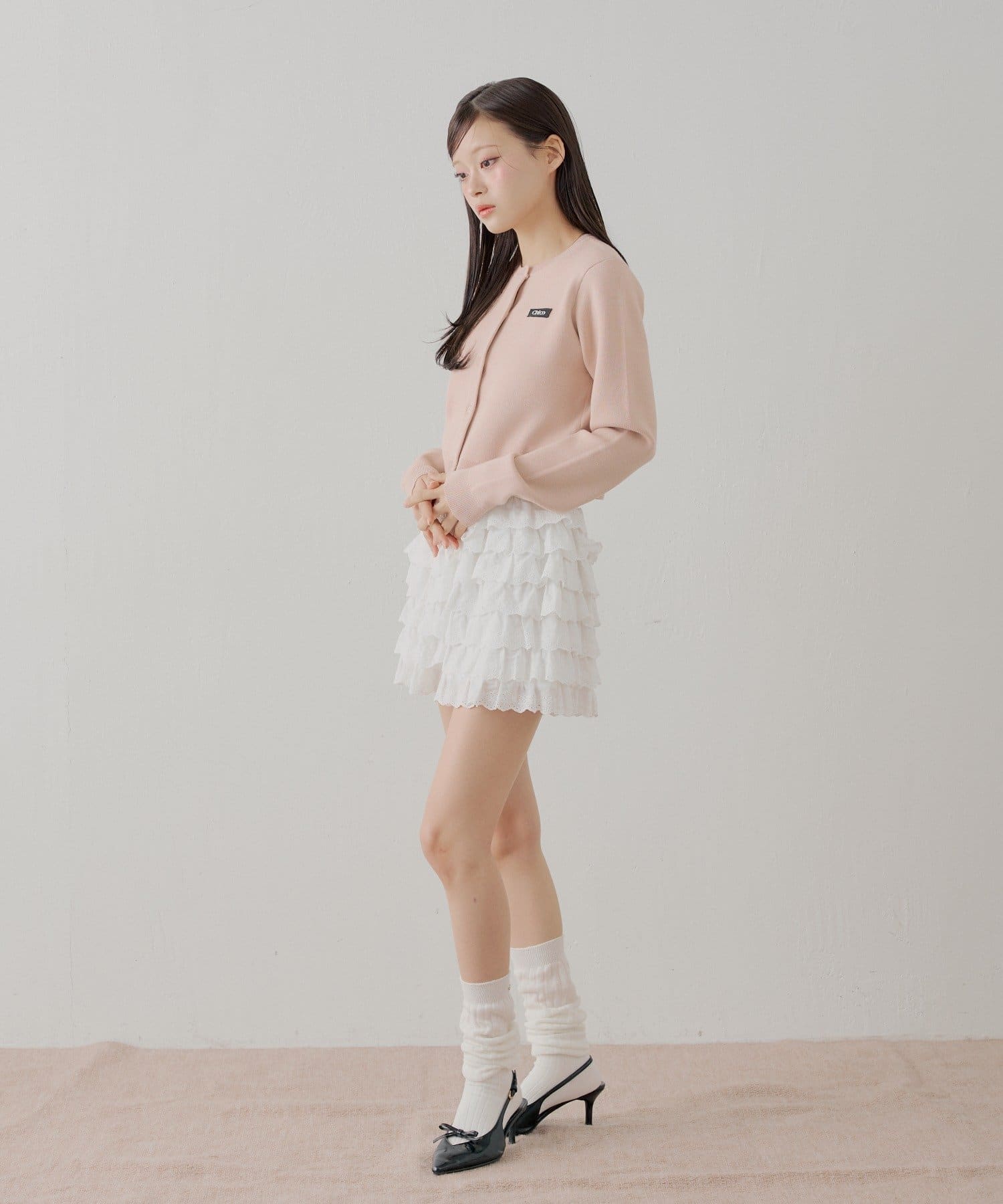 ・ミニボトムと合わせるとフェミニンなスタイルに仕上がります。