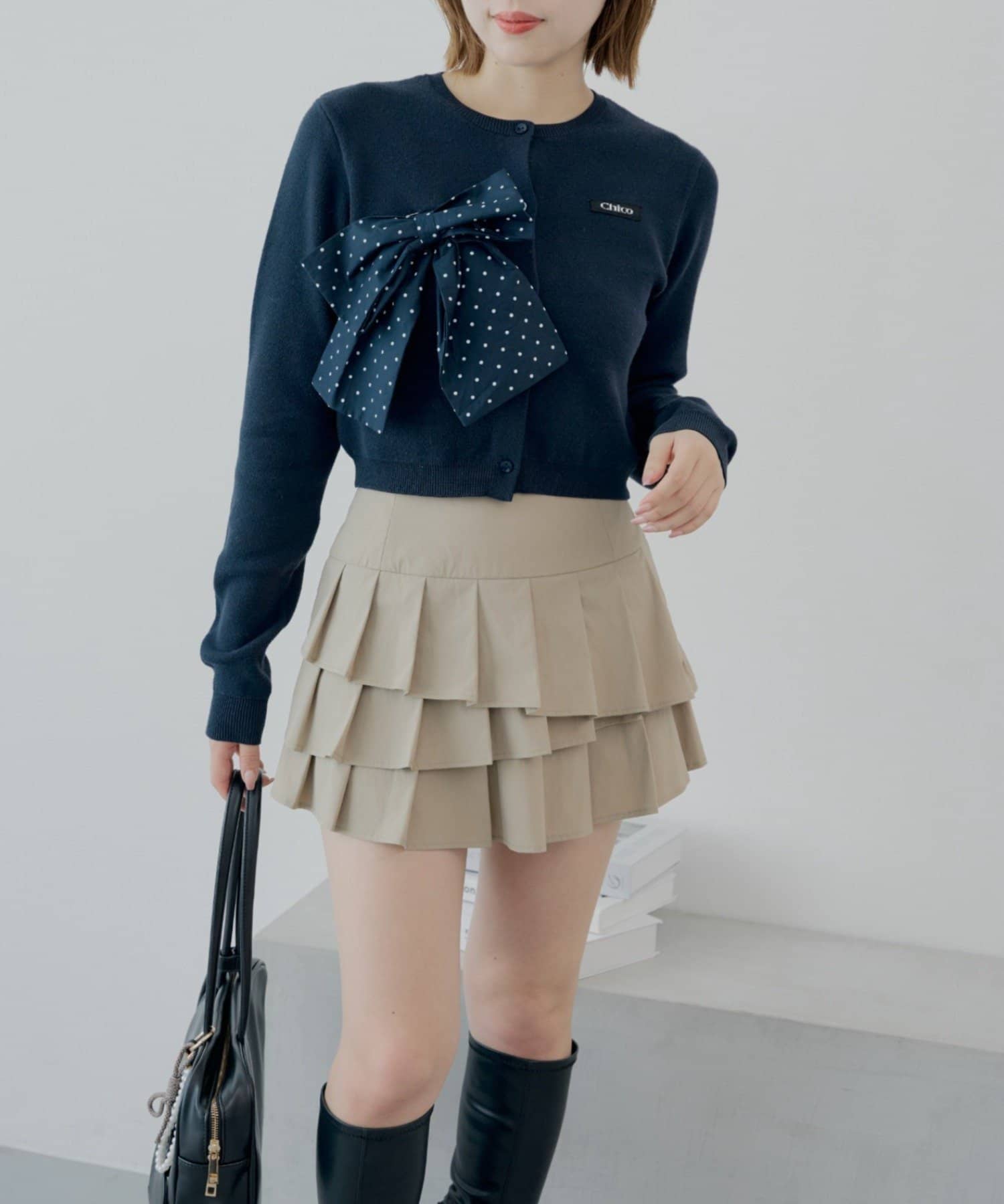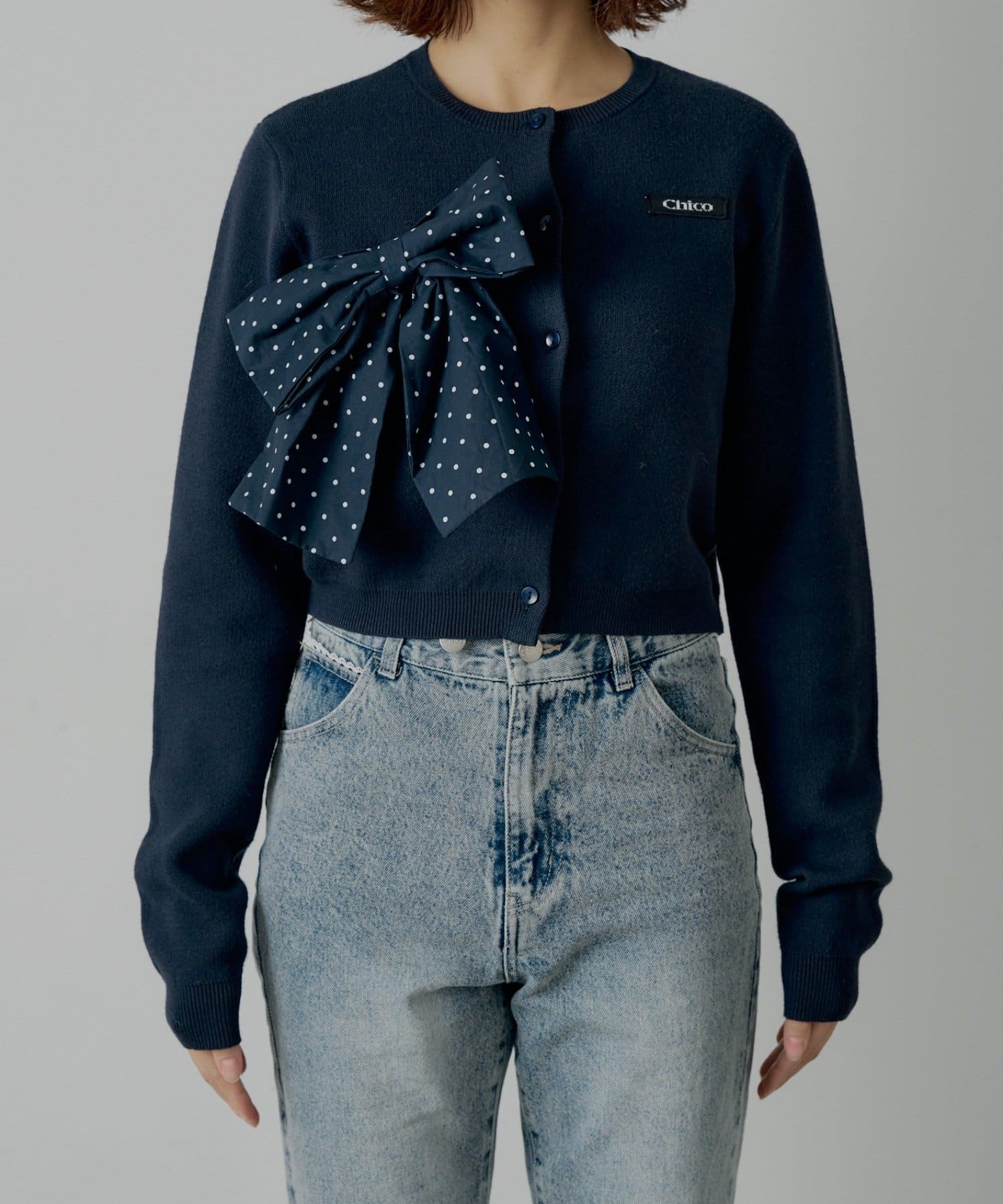Chico(チコ) 【セットアップ対応】リボンコンパクトニットカーディガン