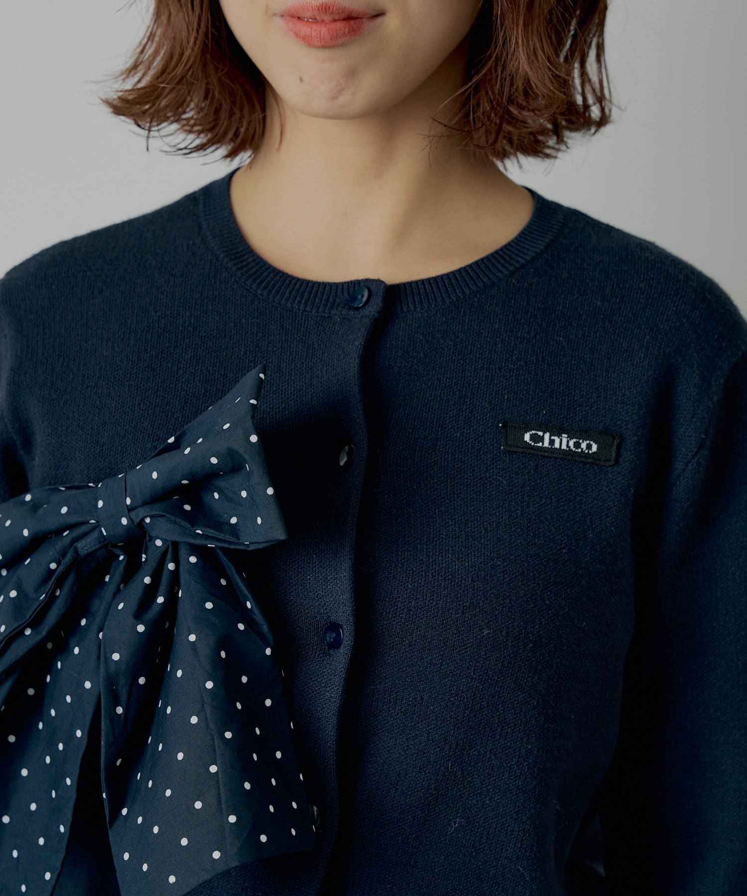 TOP > Chico > レディース > トップス > カーディガン/ボレロ > 【セットアップ対応】リボンコンパクトニットカーディガン