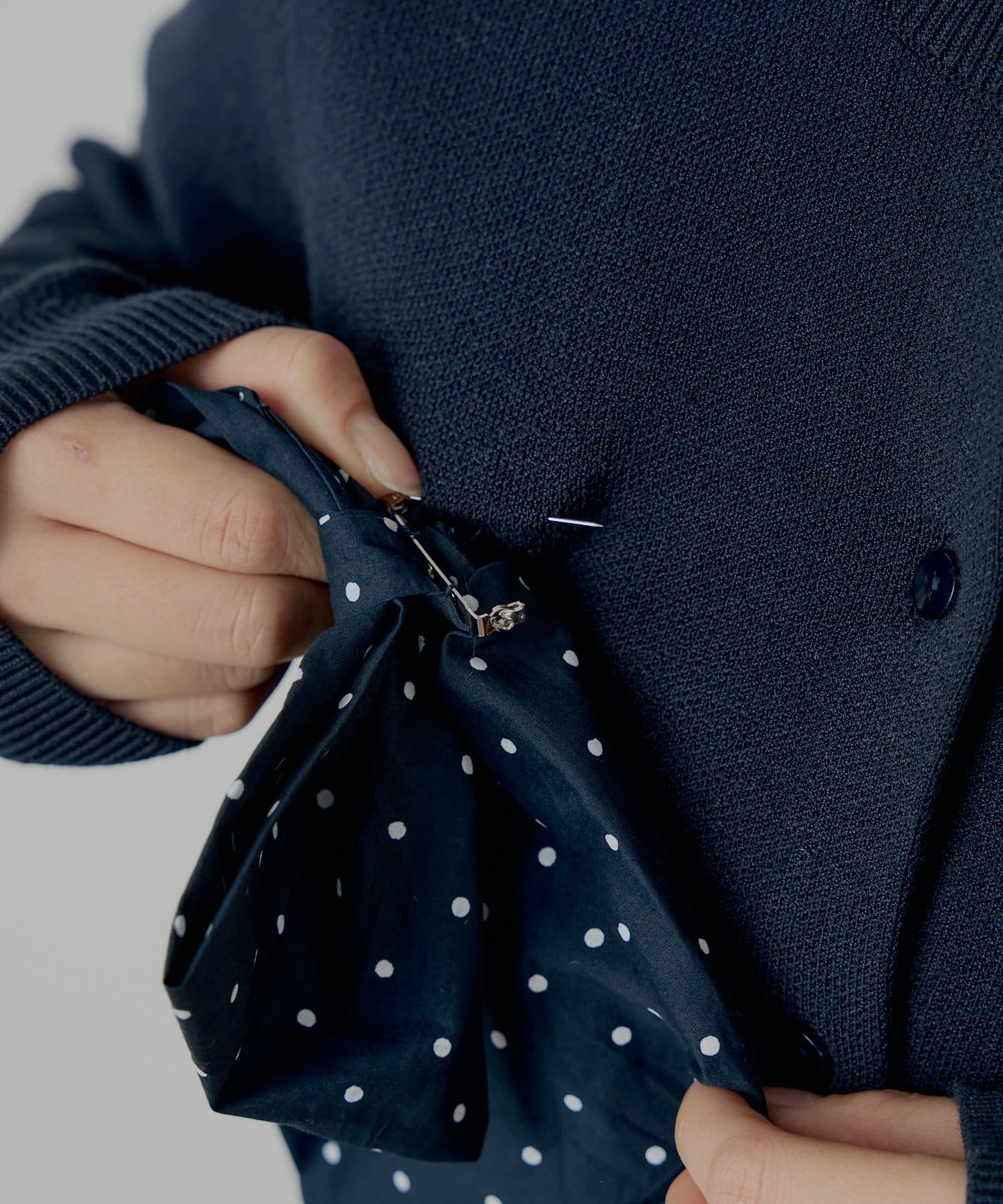 ドット柄カーディガンが新鮮!