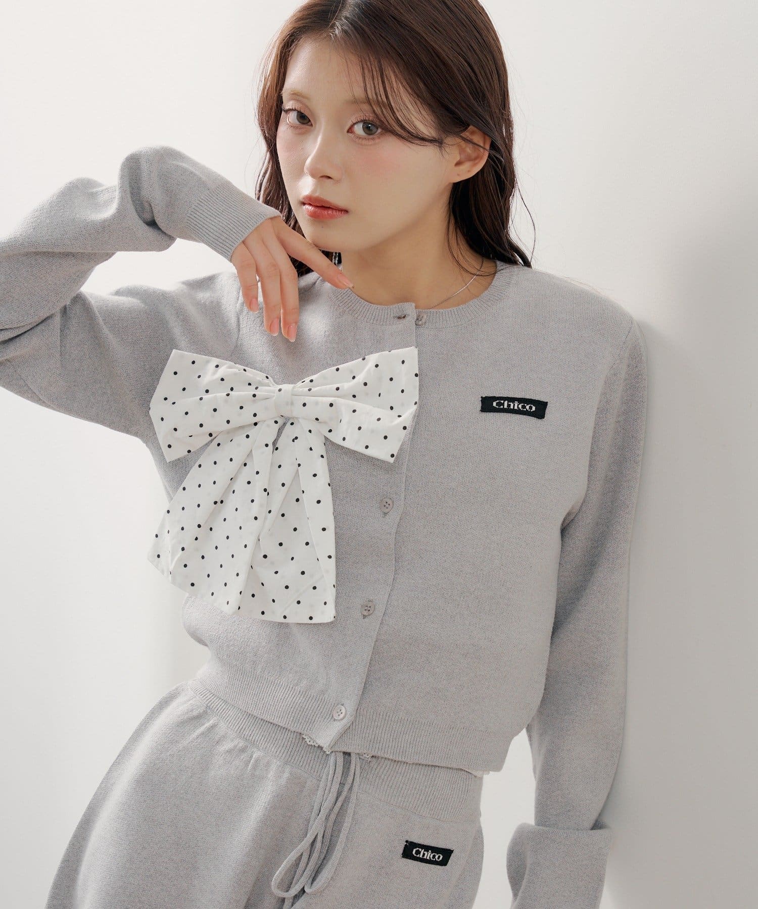 • Chico(チコ) 【セットアップ対応】リボンコンパクトニットカーディガン