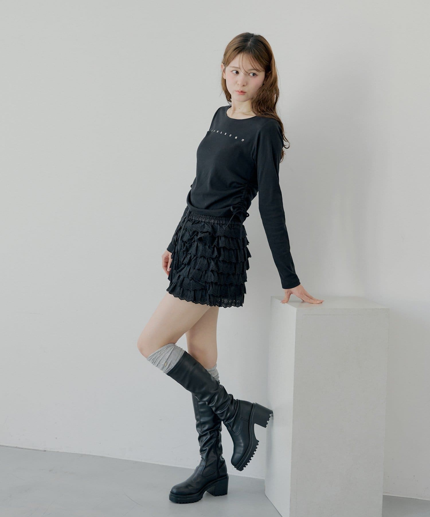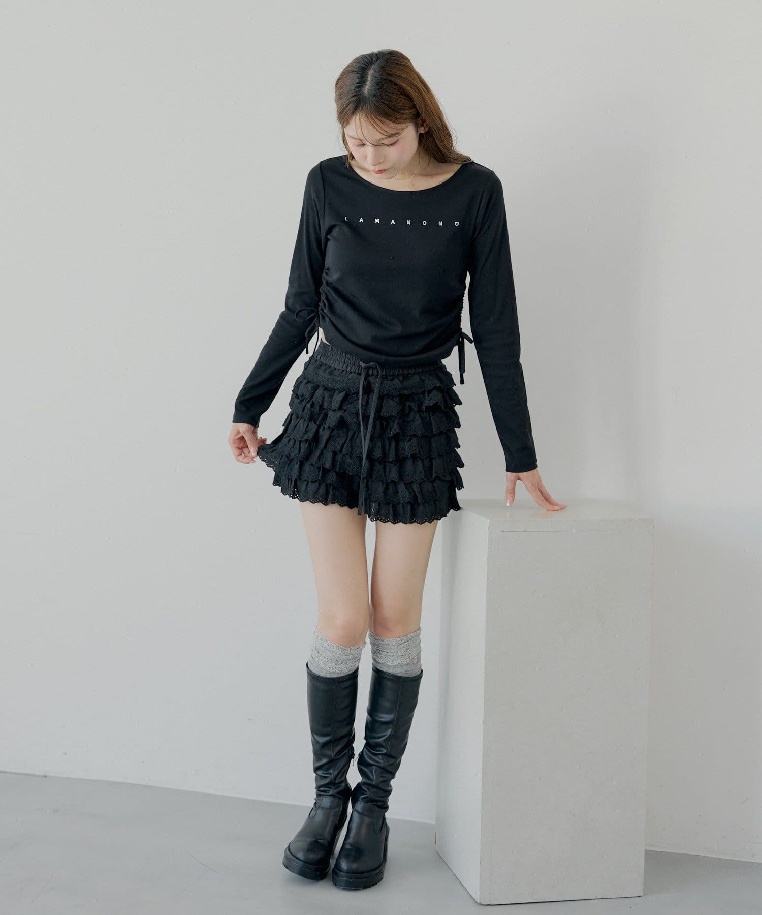 ・ミニボトムと合わせるとフェミニンなスタイルに仕上がります。