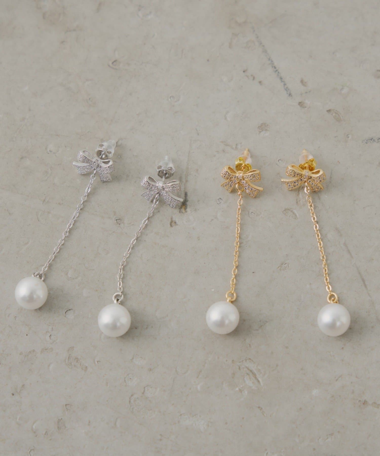 揺れるたびにときめきをまとうドロップパールリボンピアス登場♡