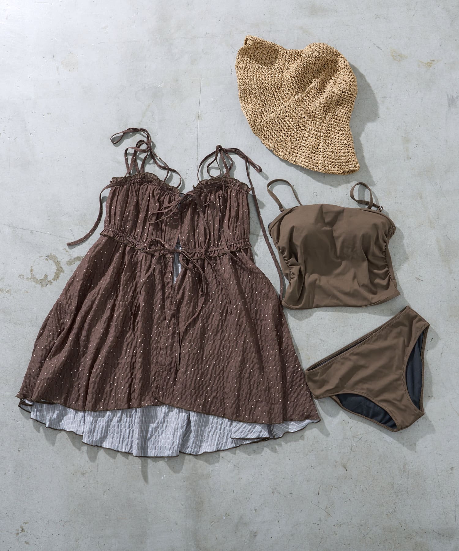 【WEB限定/REVIVAL】肩リボンキャミチュニック水着3点セット