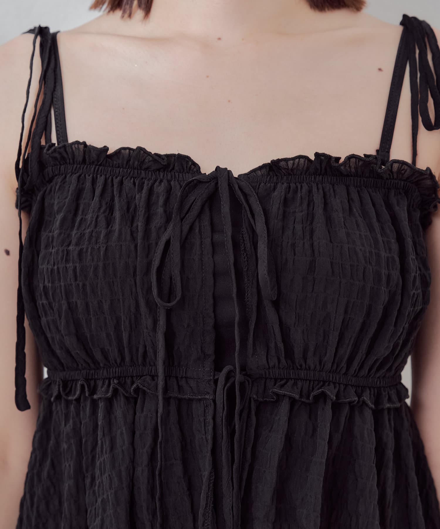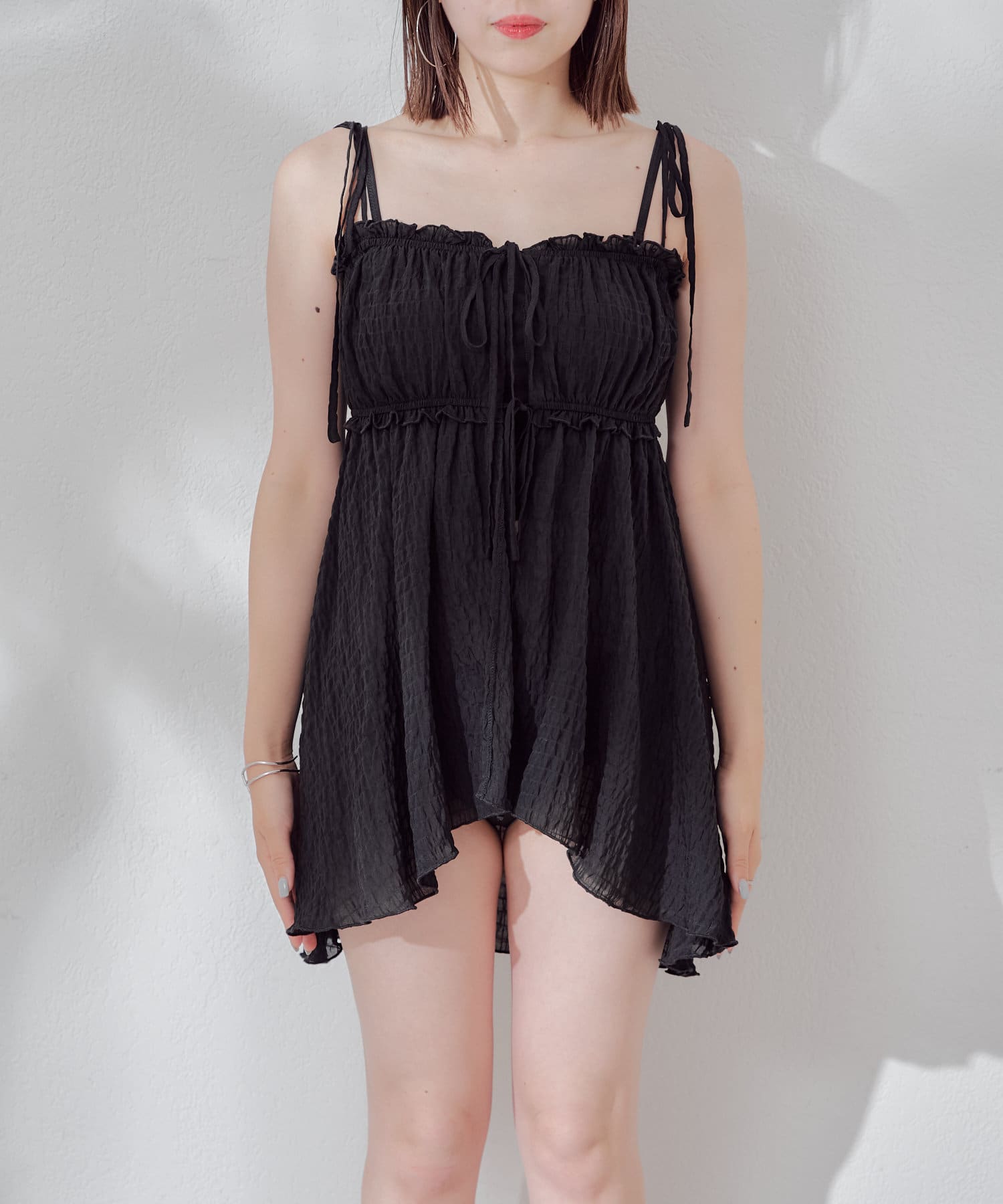 ・胸元のリボンを解いて羽織風に肌見せを楽しんでも◎