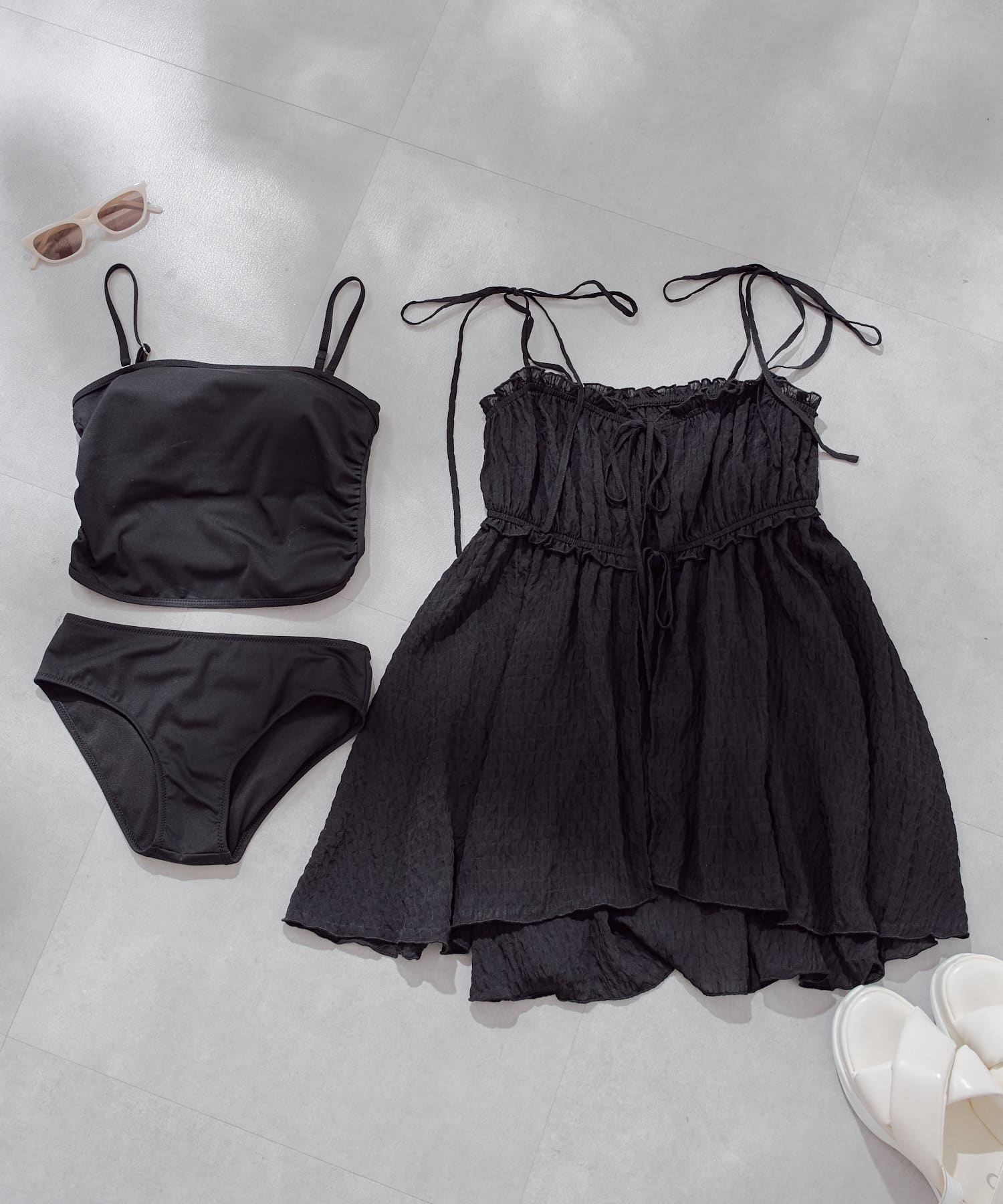 ・トップス、ショーツ、キャミチュニックがセットなのでこれ一つで水着コーデが完成します。