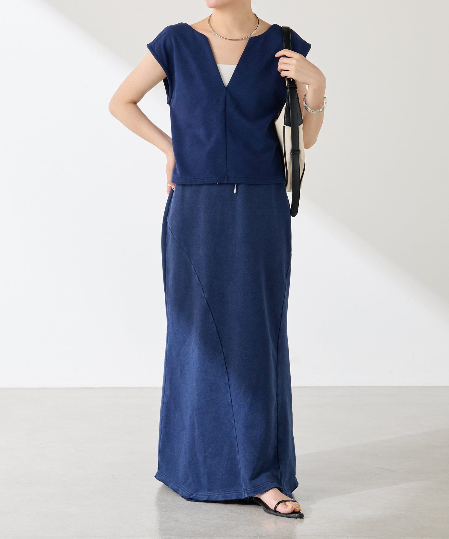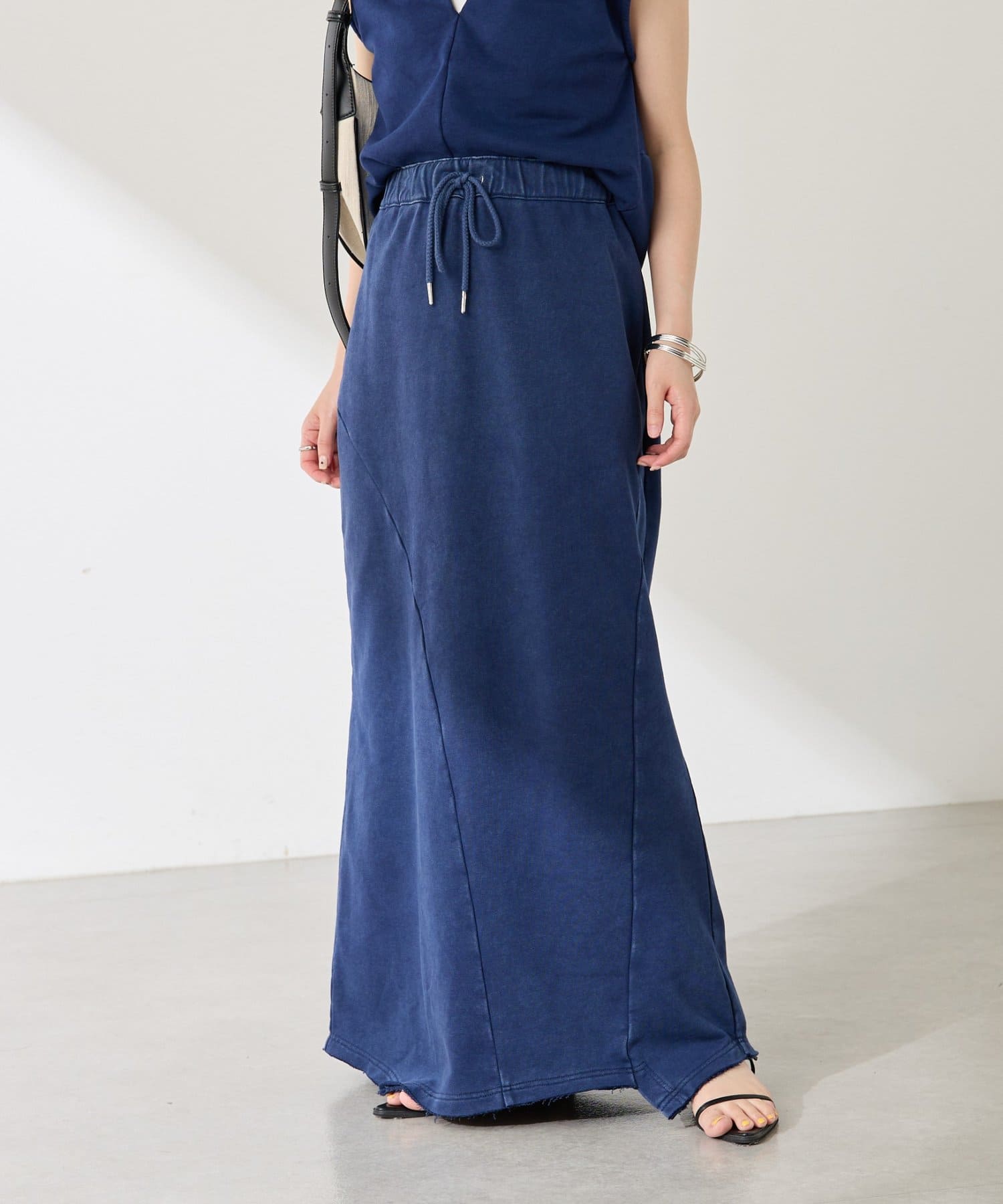 長めの丈ですので、フラットサンダルやシアートップスと合わせて