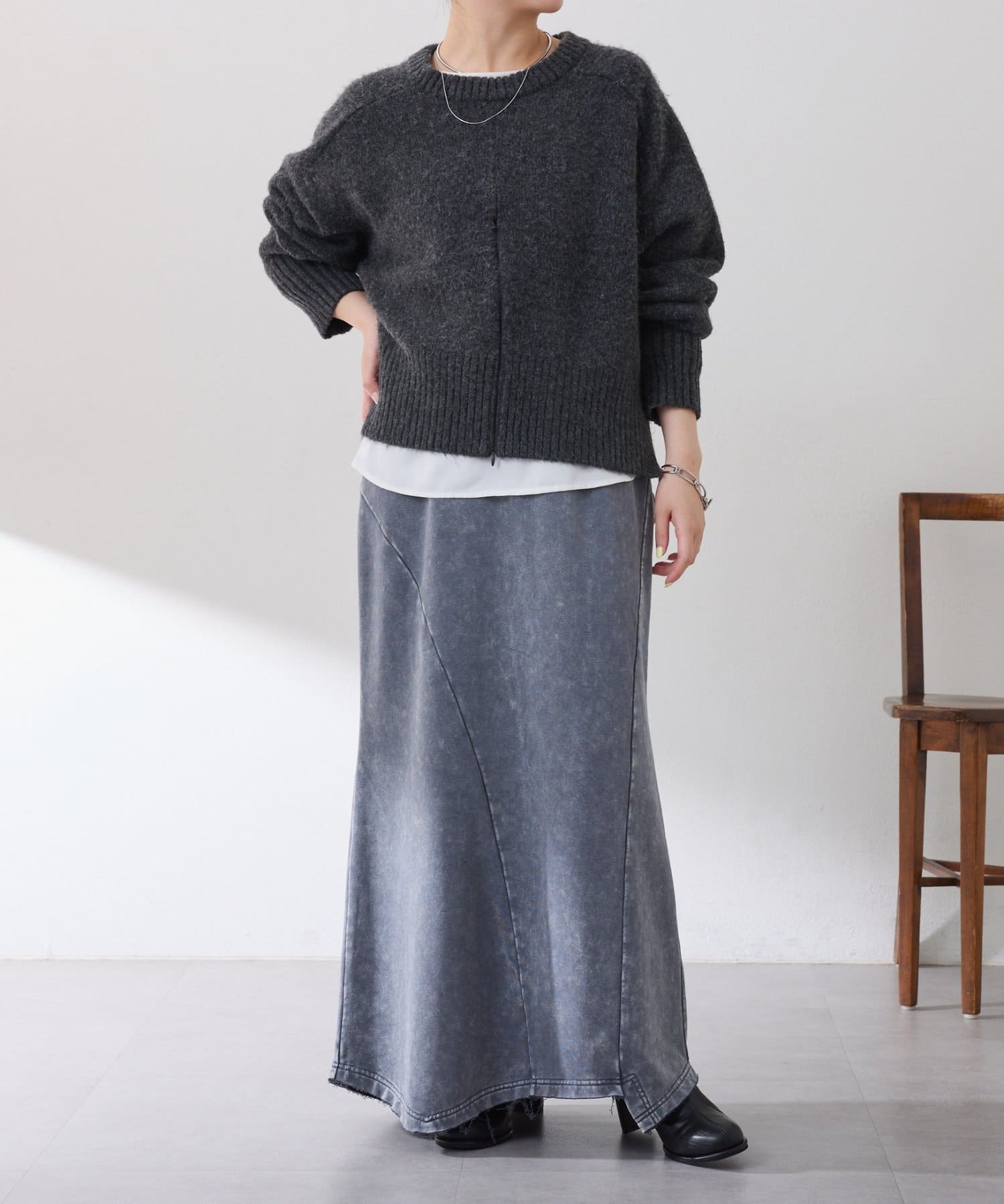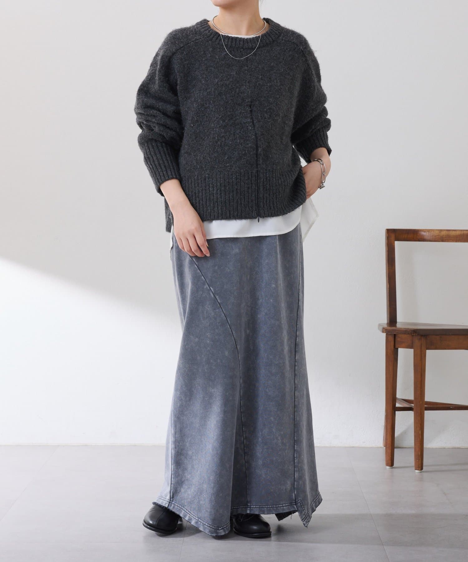 ・サイドに切替を入れることで、細見えが叶うマーメイドスカートです。