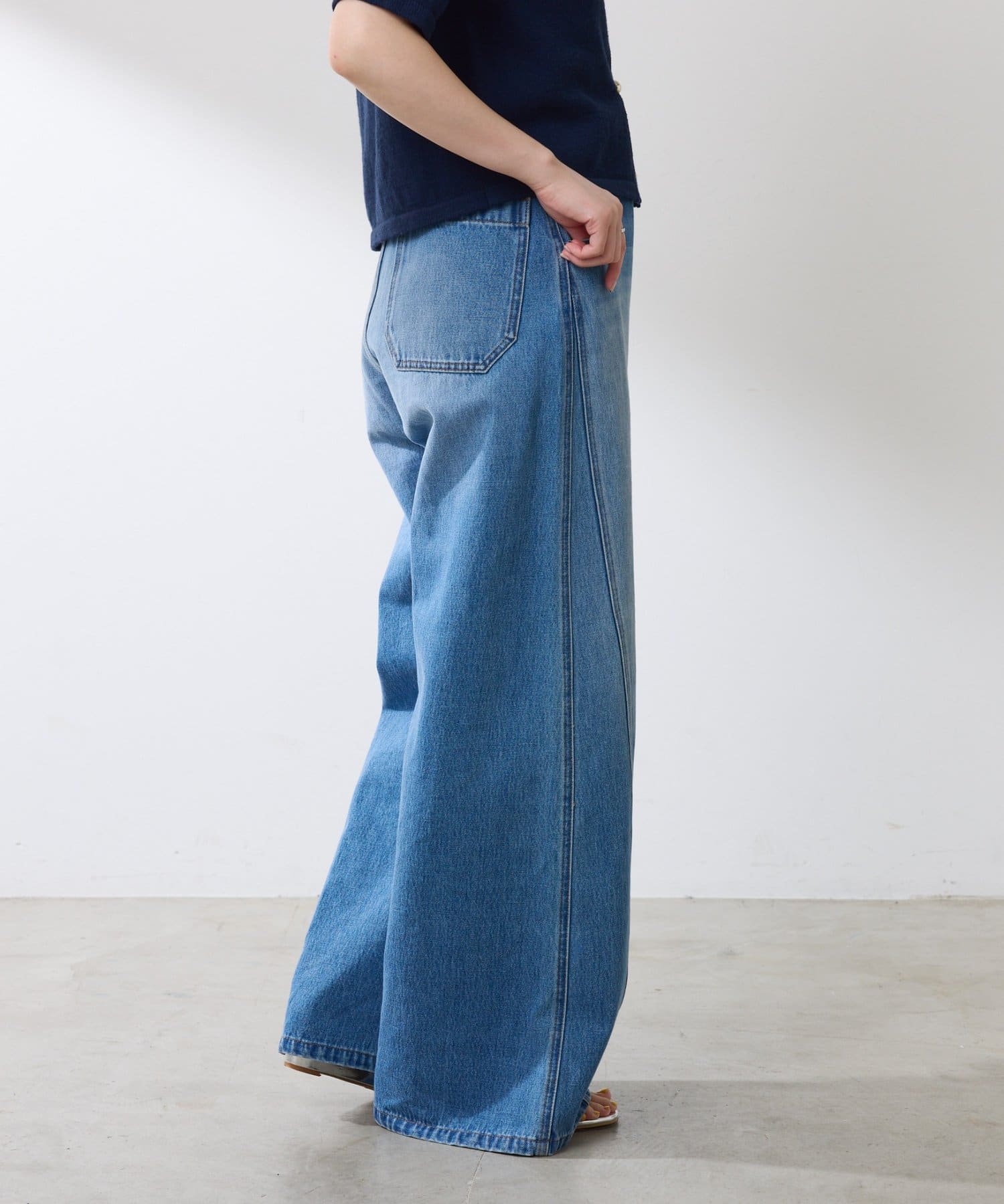 ・ワイドデニムですが、少しフレアデザインで女性らしいシルエットになります。