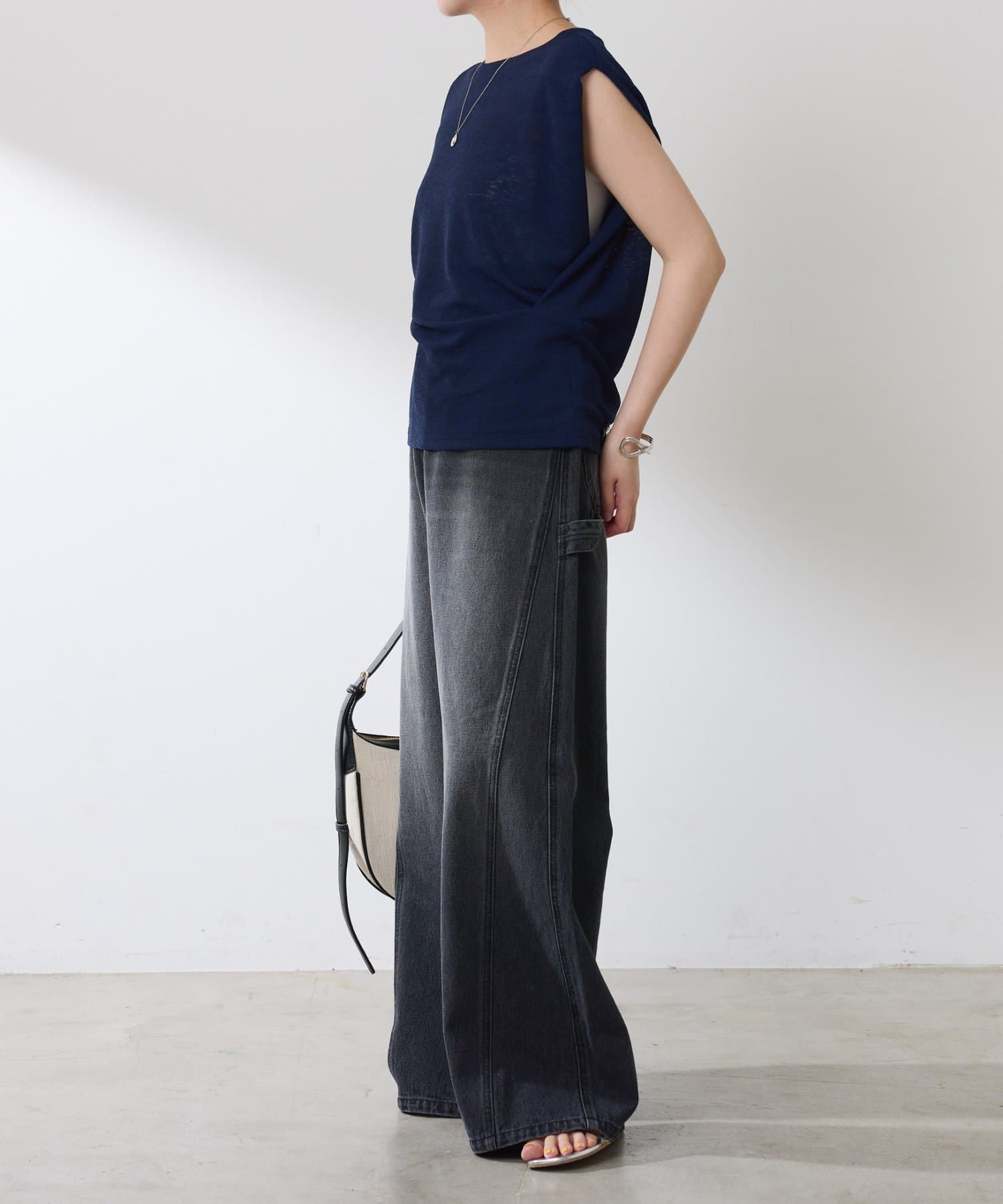 ・デザイン性のあるデニムは、きれいめにもカジュアルにも合わせやすく、スタイリングをワンランク上に仕上げてくれます。