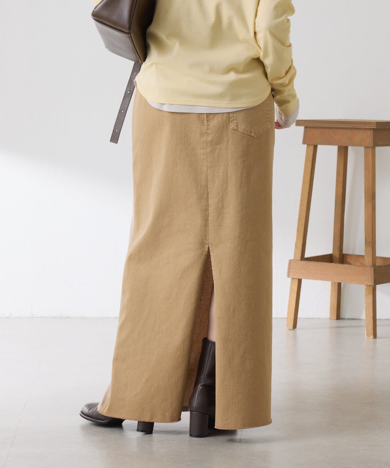 おしゃれ見えと楽チンが両立するコンビデニムスカート