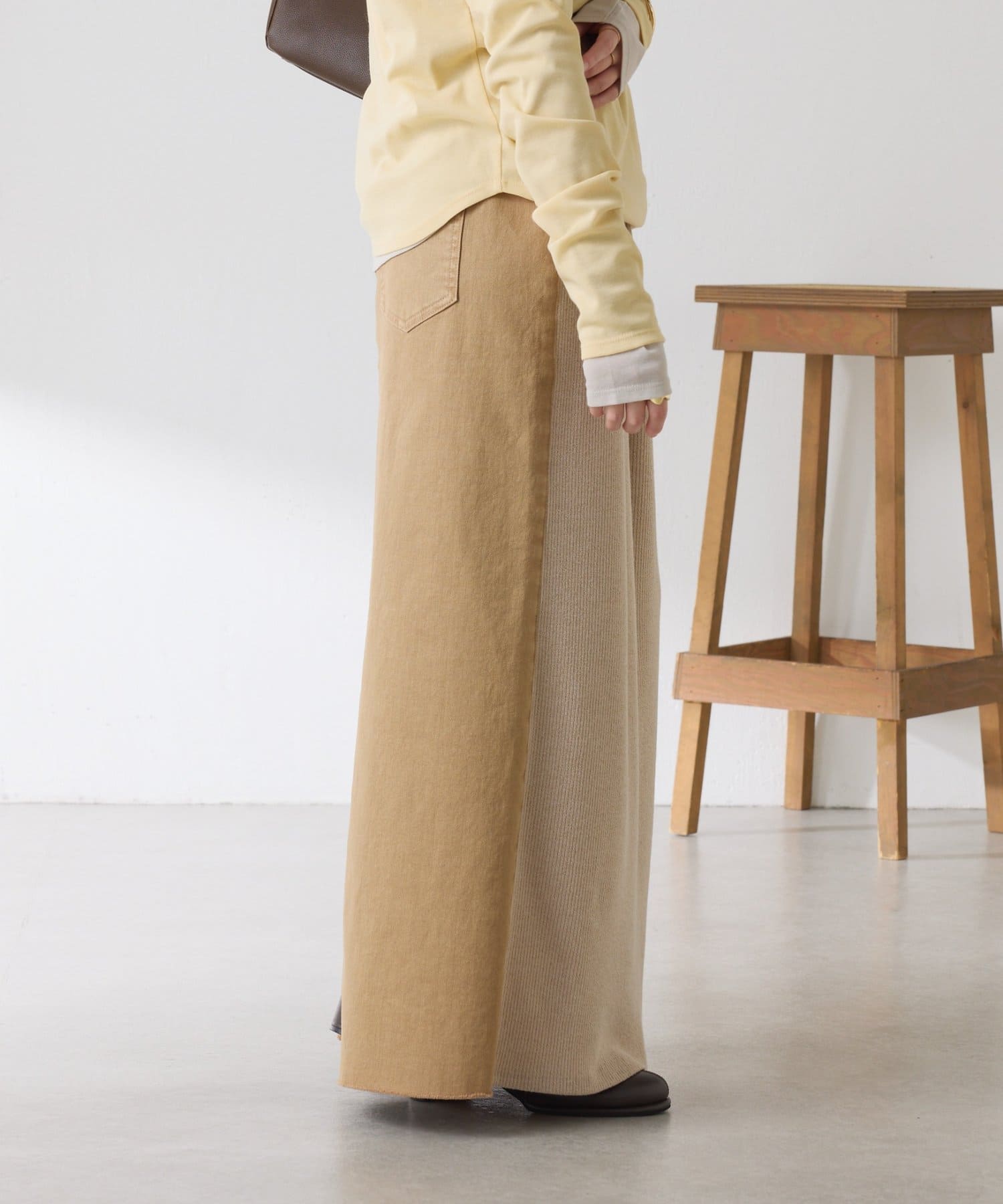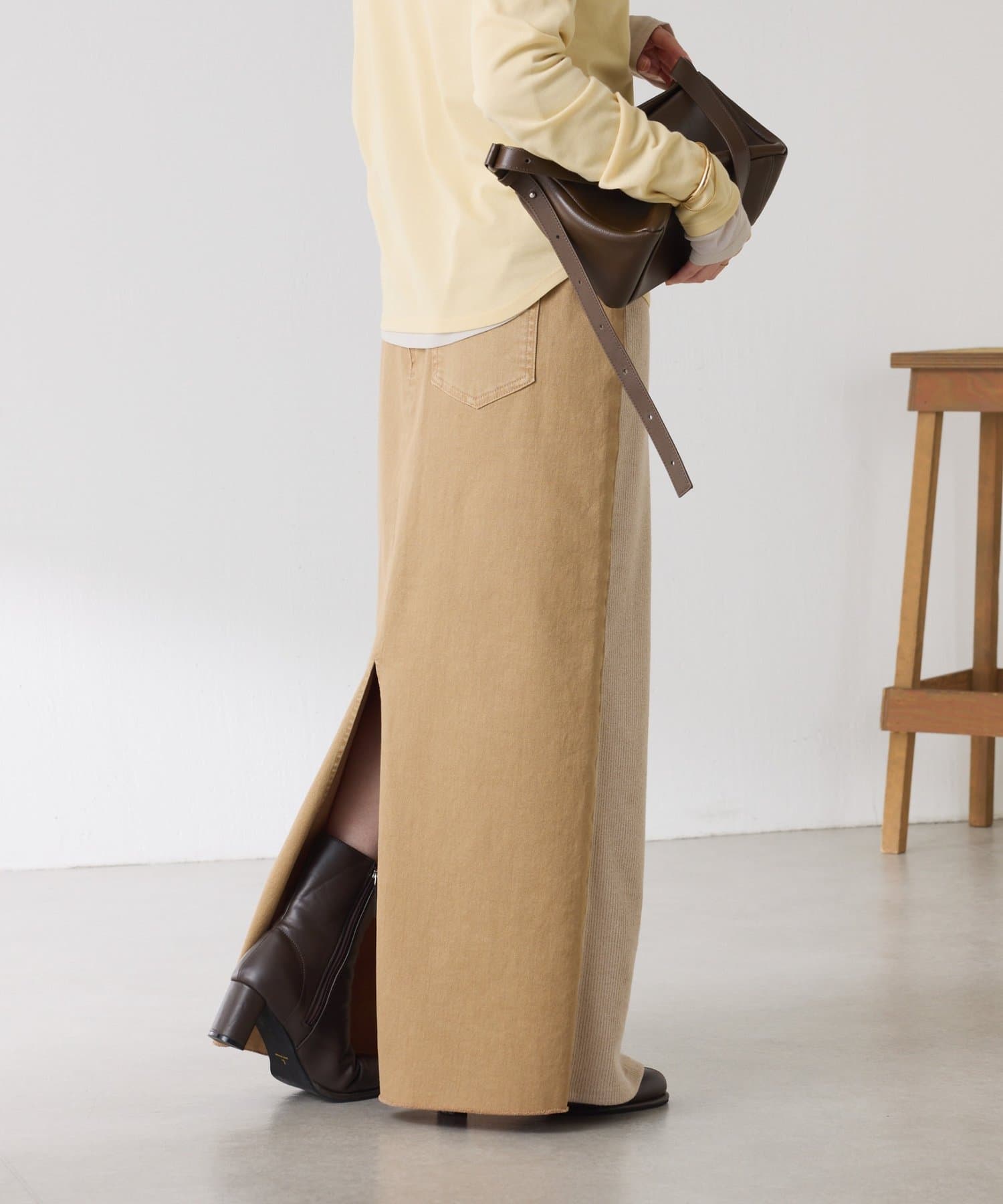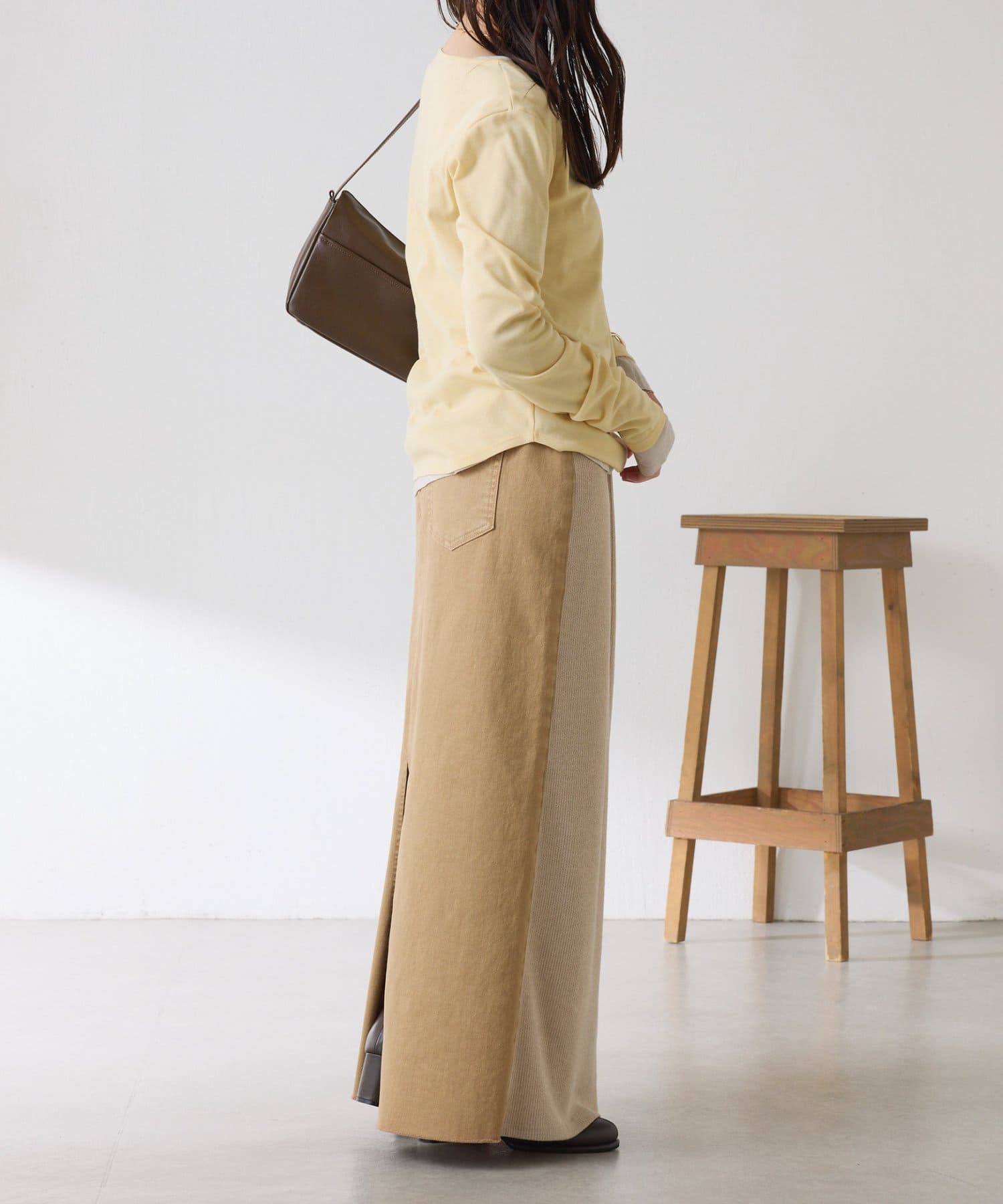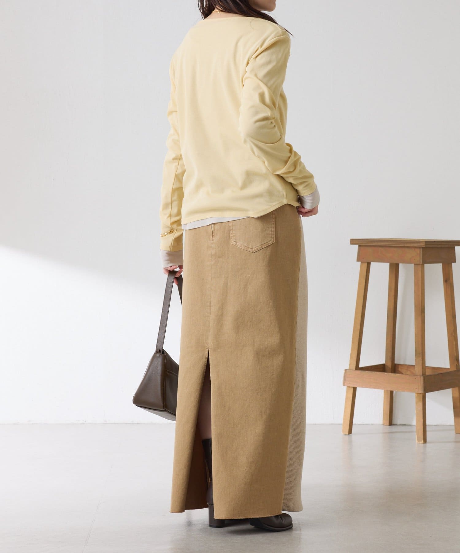 ・前はカットソーで後ろはデニムの前後で異なる表情を楽しめコンビデニムスカート。