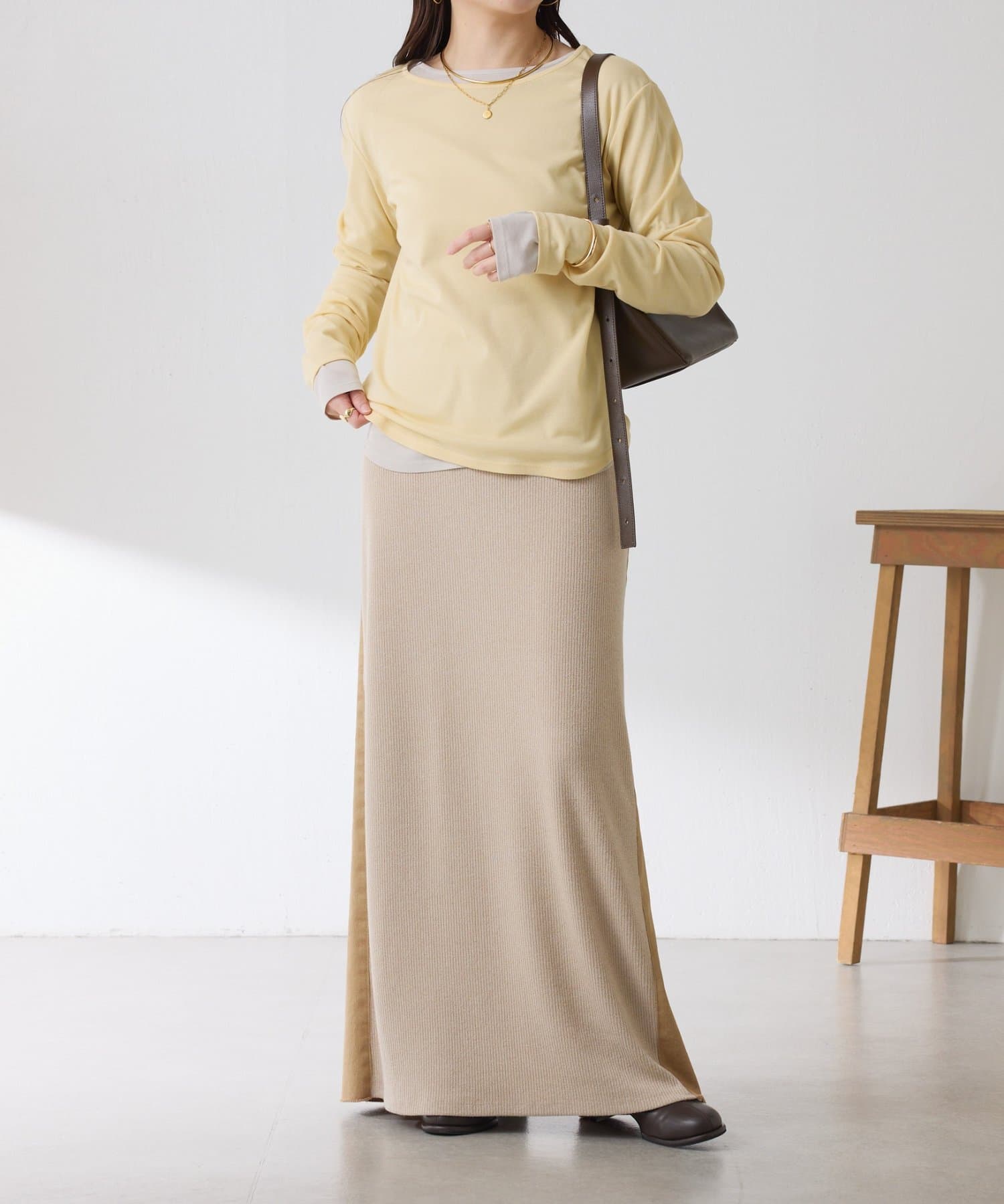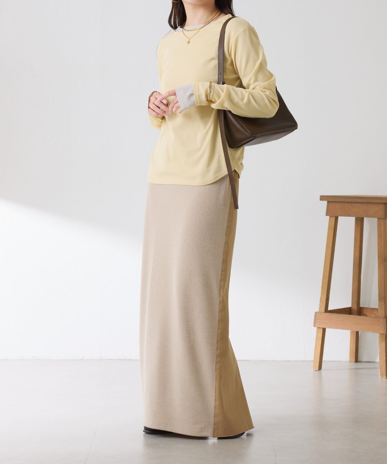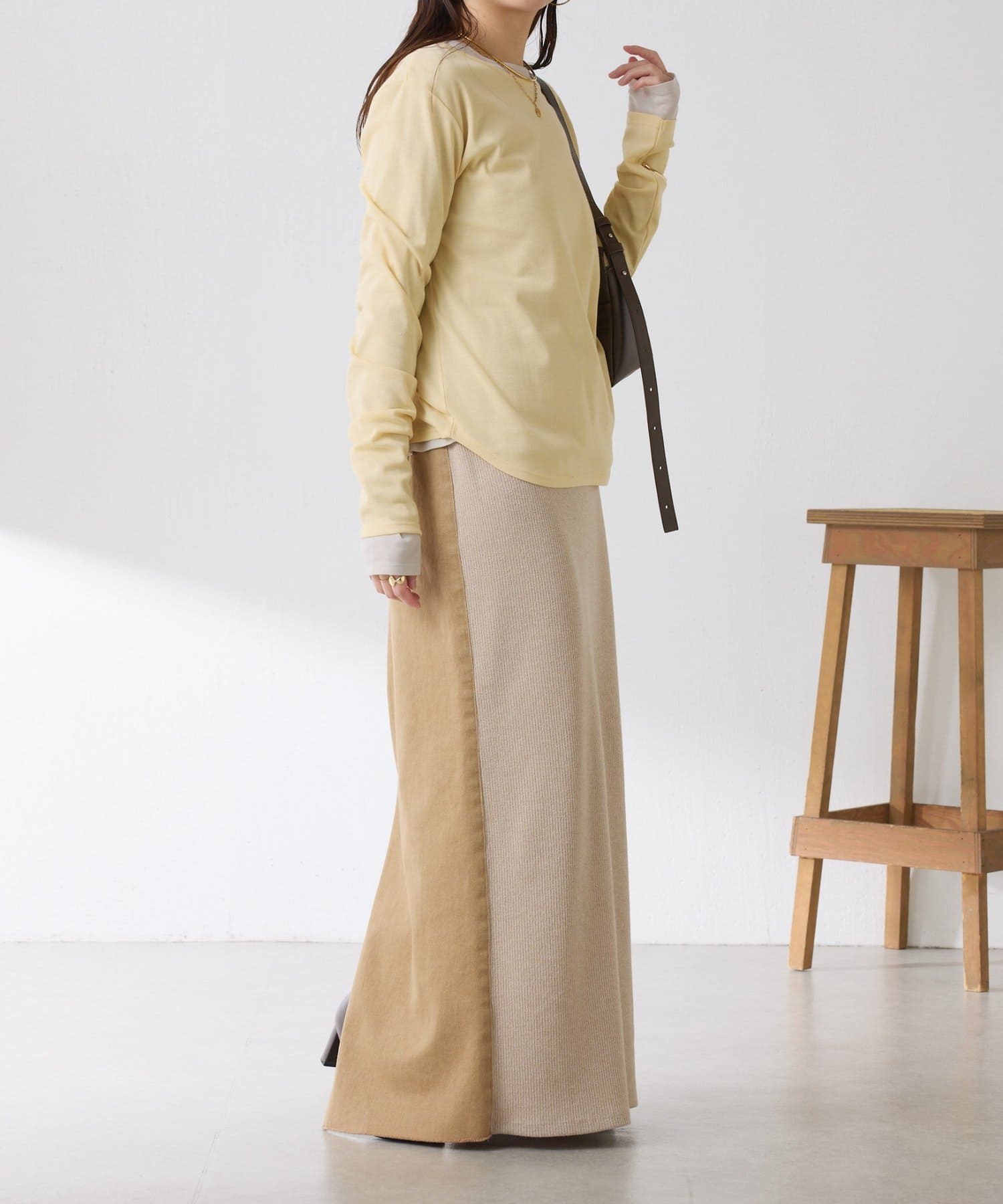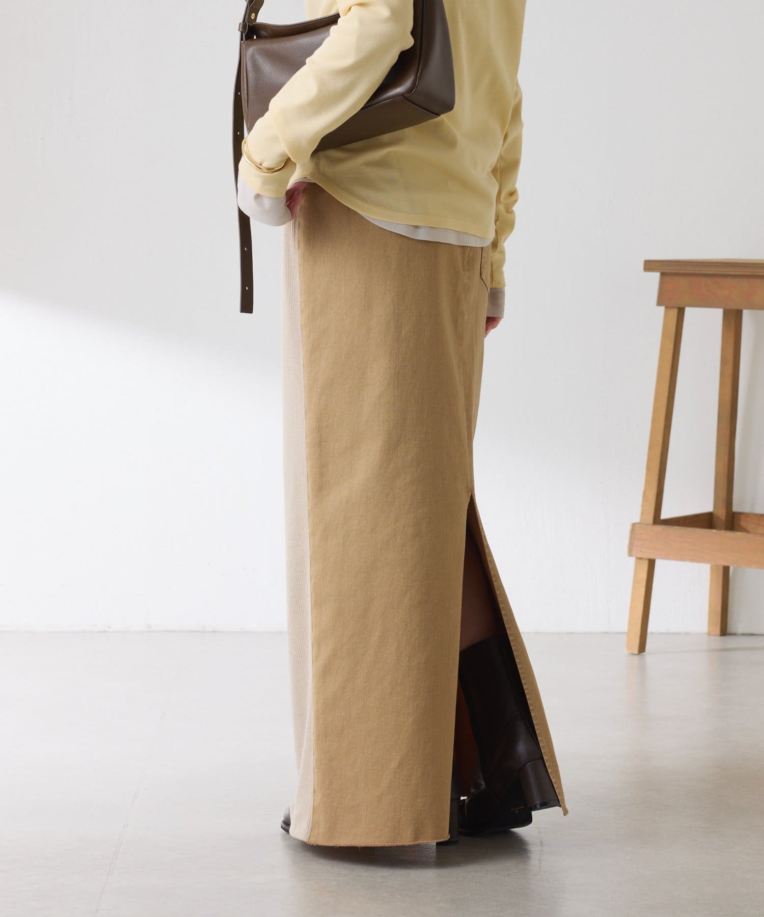 ・前はカットソーで後ろはデニムの前後で異なる表情を楽しめコンビデニムスカート。