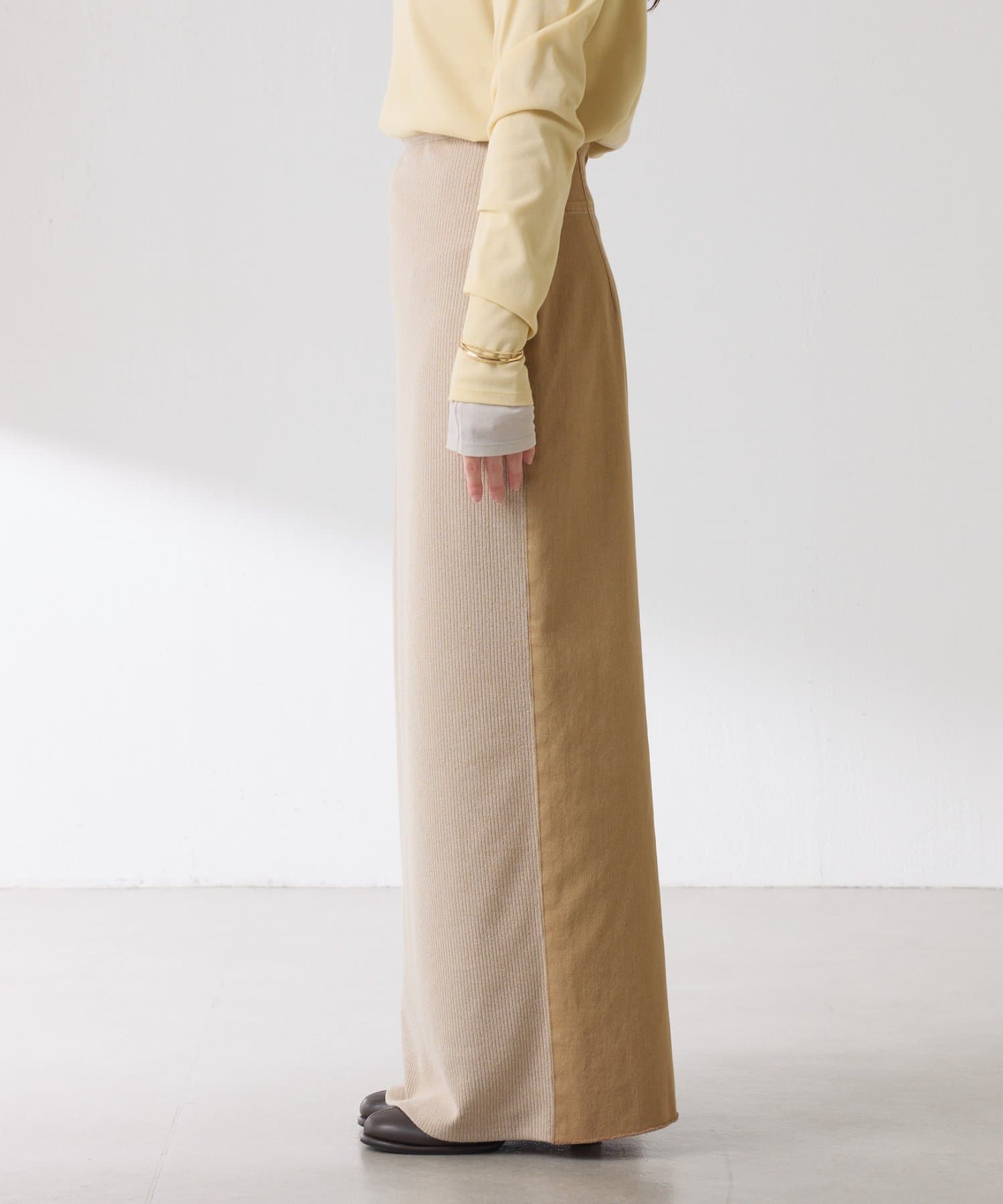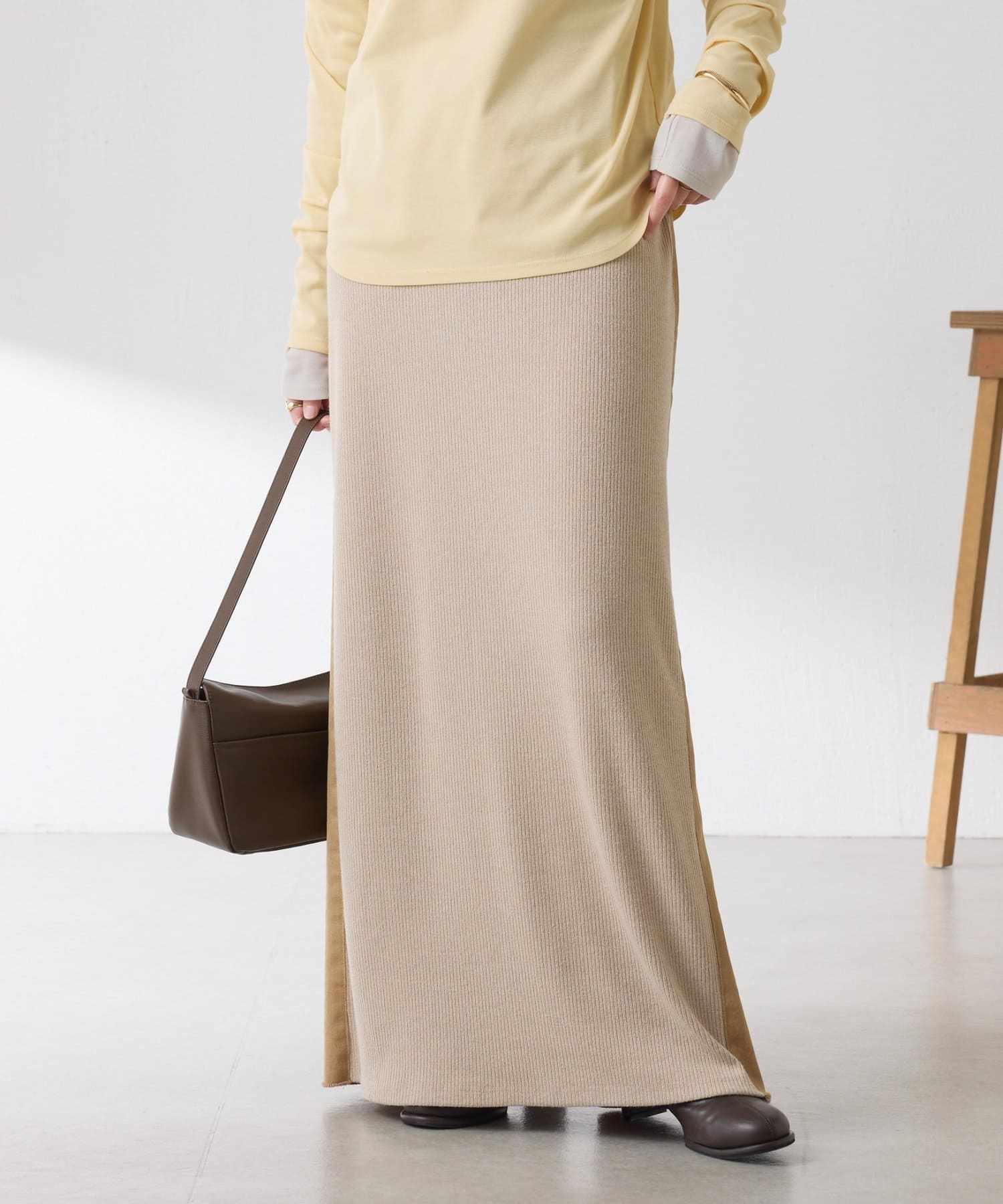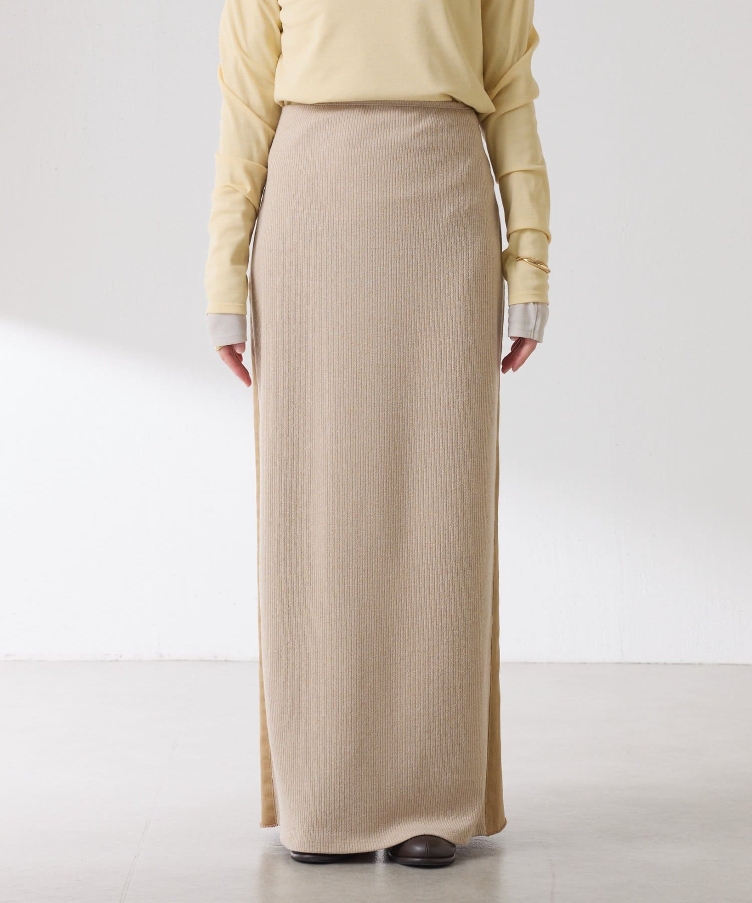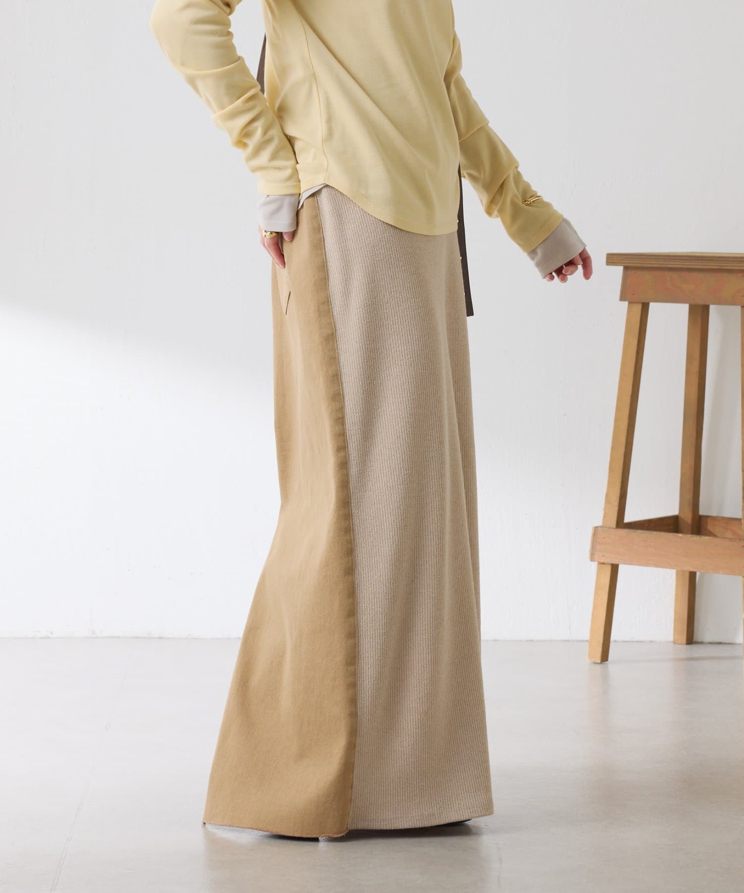 ・前はカットソーで後ろはデニムの前後で異なる表情を楽しめコンビデニムスカート。