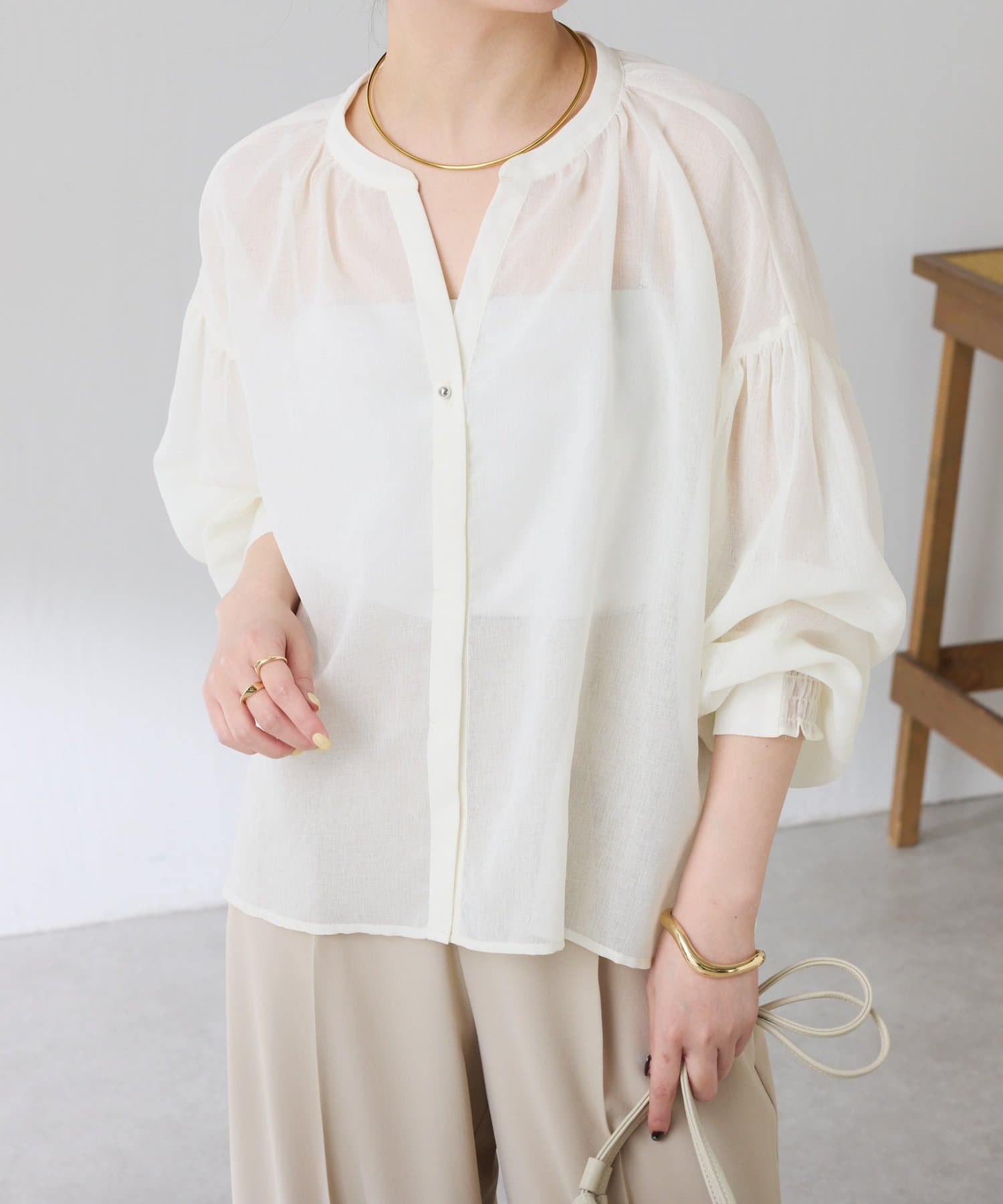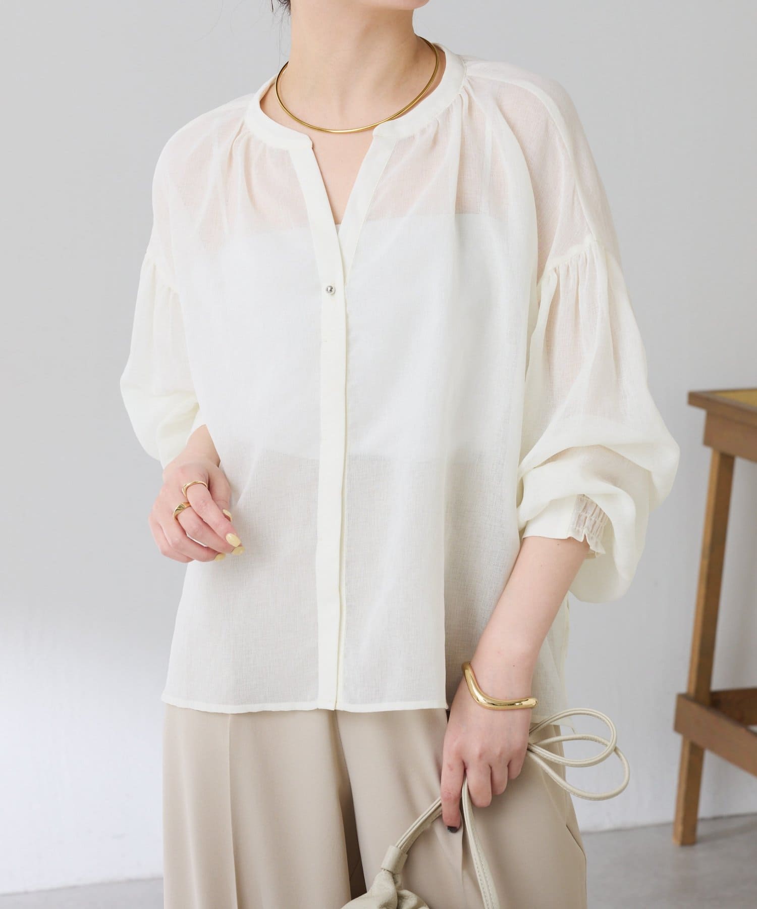 ・絶妙なシアー感が涼しげに着られるブラウス。