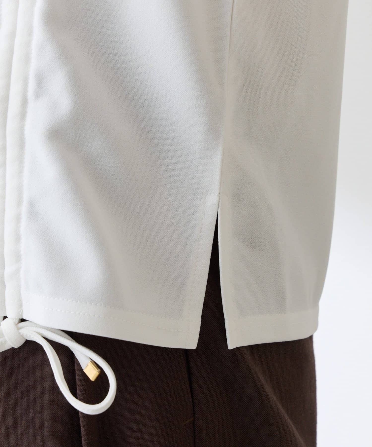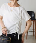 ・片側に施されたドロストでシャーリングを調整できるアイテム。ギャザーを効かせれば立体感のあるシルエットになります◎