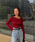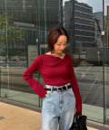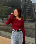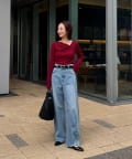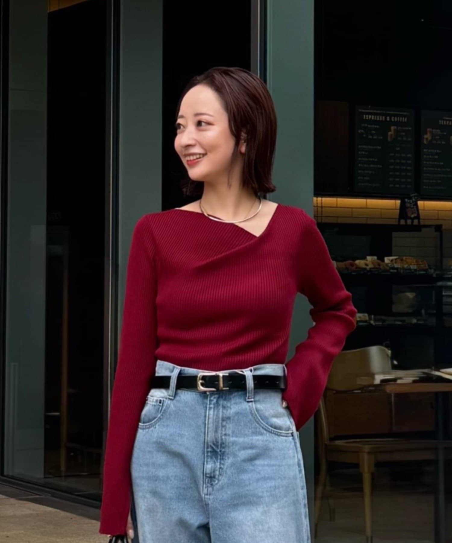 カラーニットは明るすぎると派手になってしまいますが、深いお色のボルドーは大人でも上品に着やすいです◎