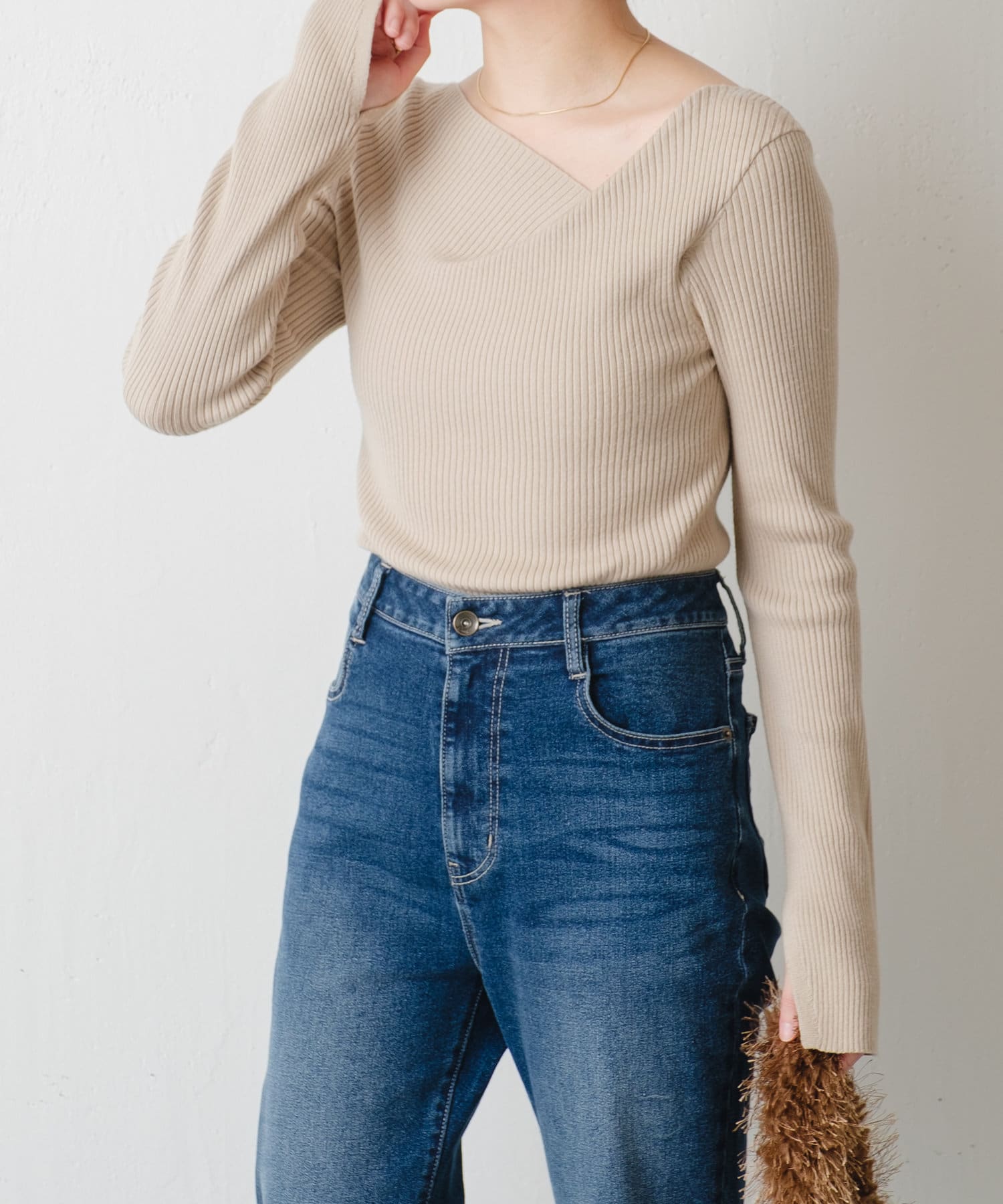 Takaokaも細見えできると絶賛の“デザインネックリブニット”にTakaoka監修の