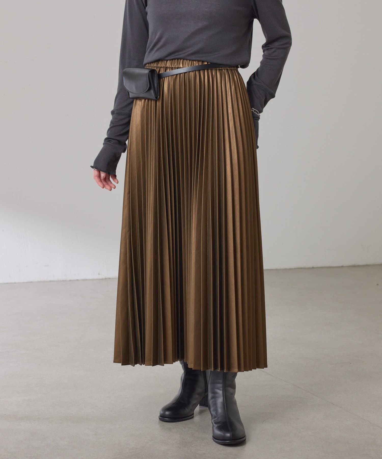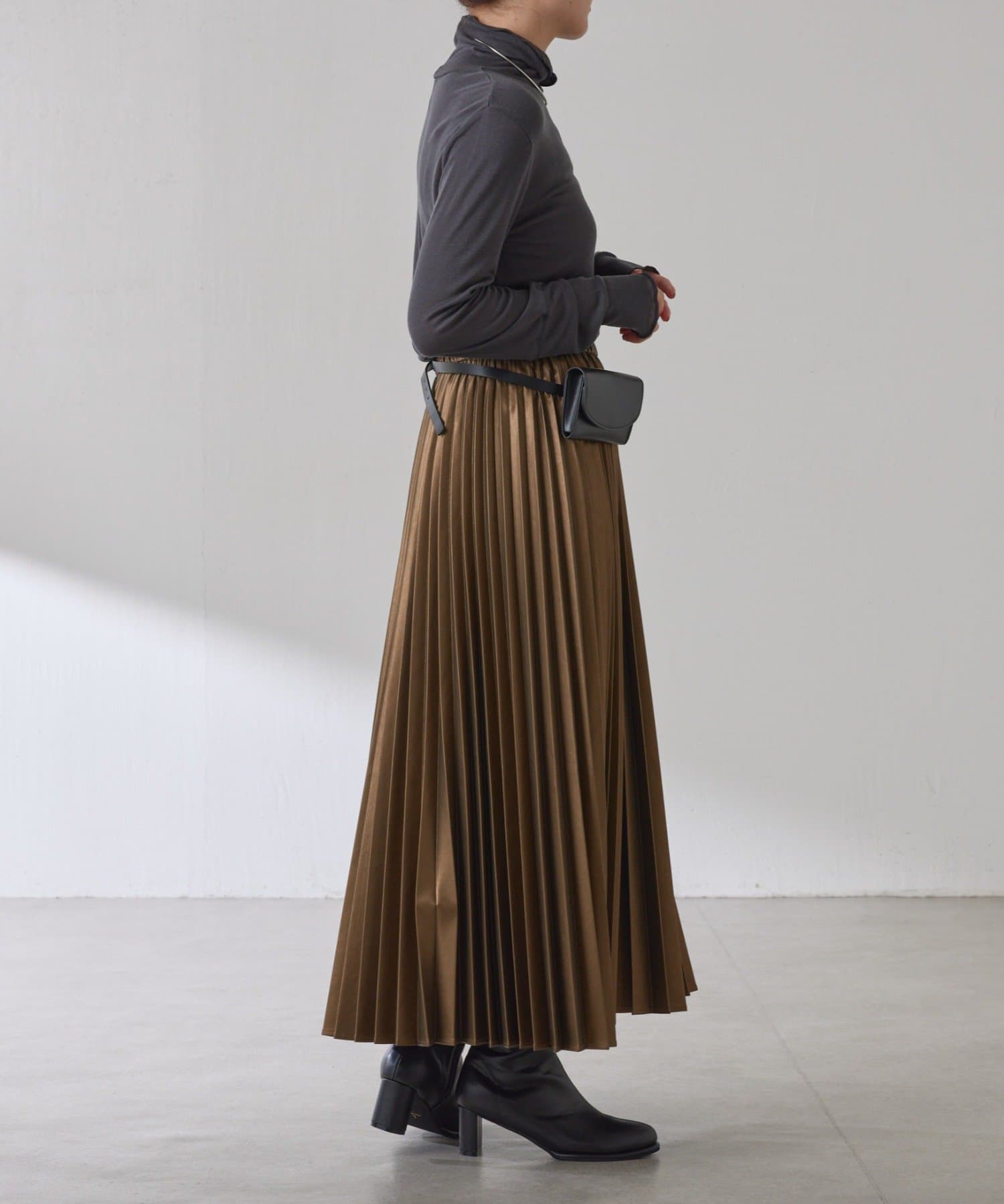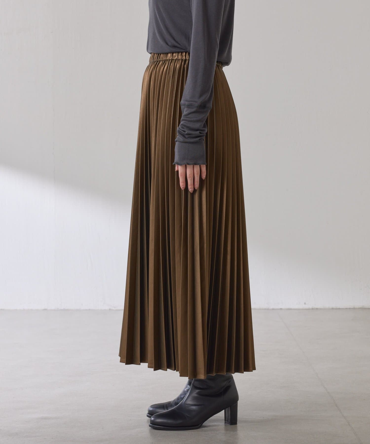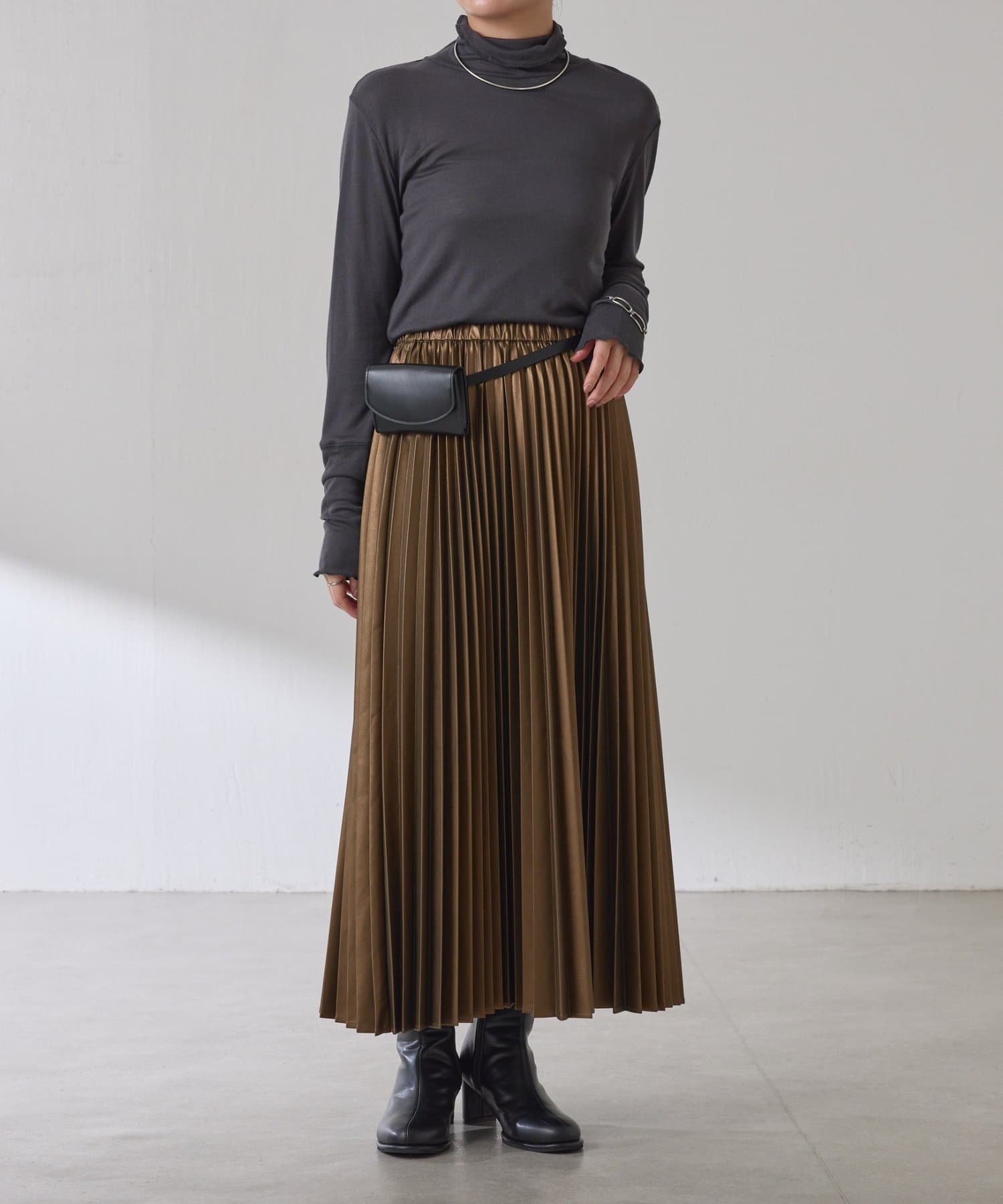 ・甘くなりがちなプリーツをスタイリッシュな印象に仕上げました。