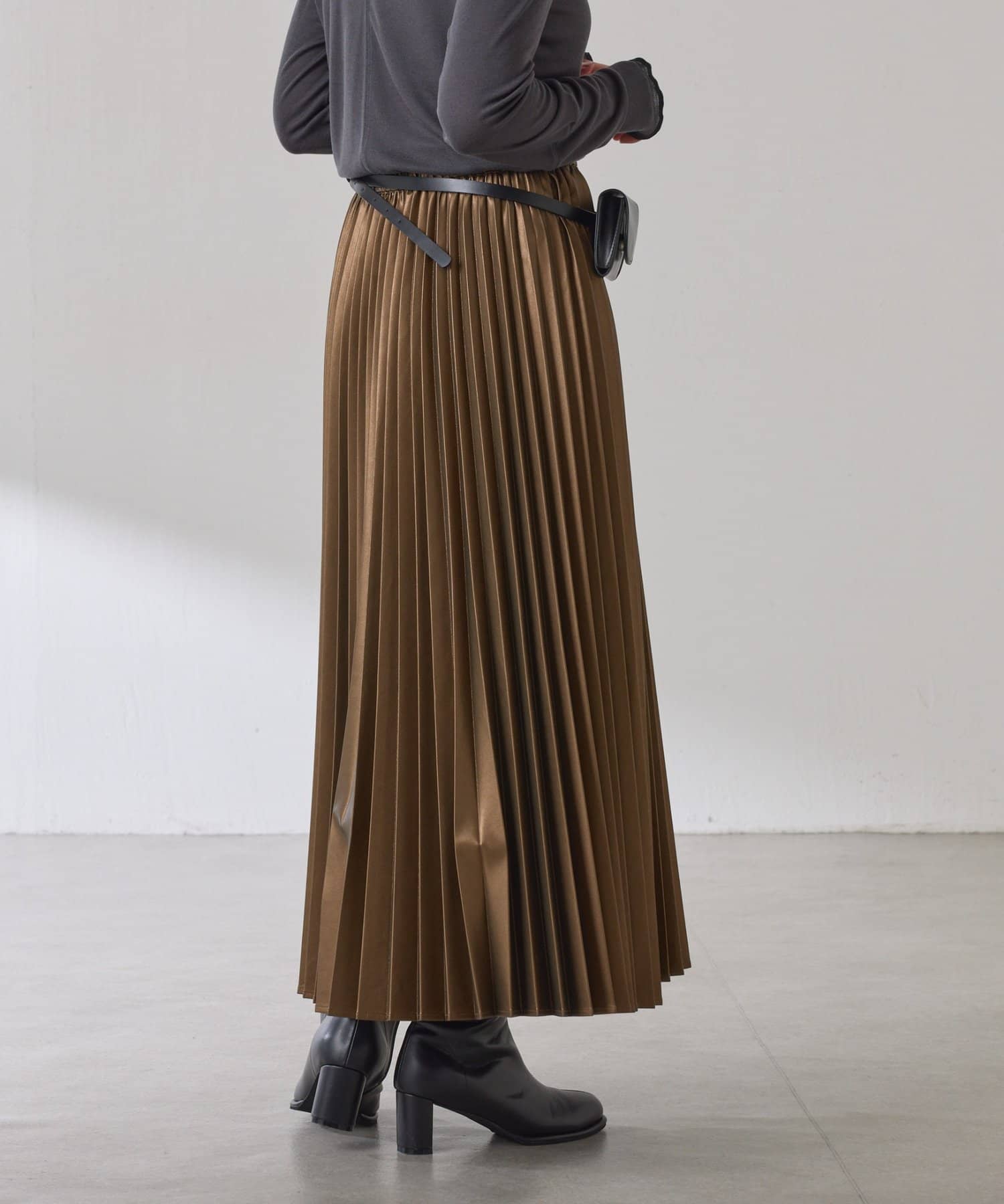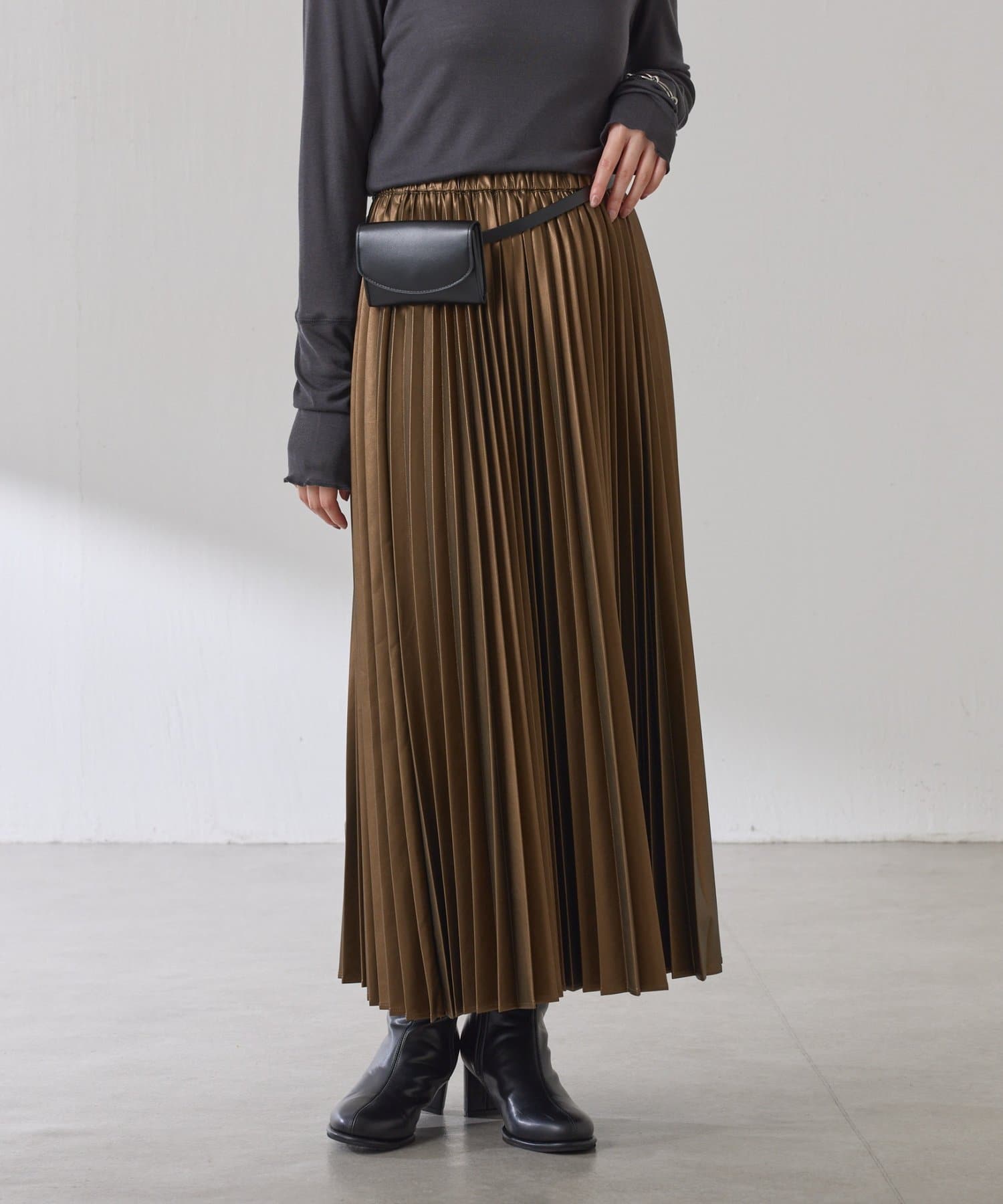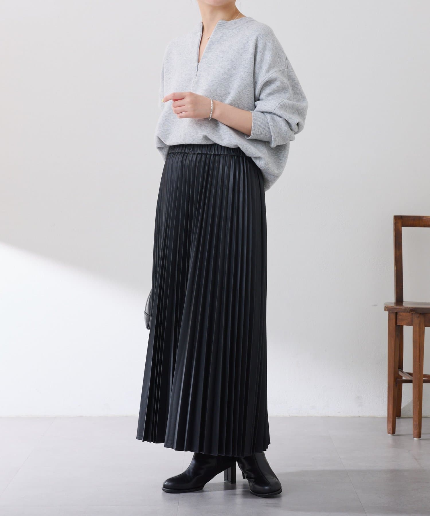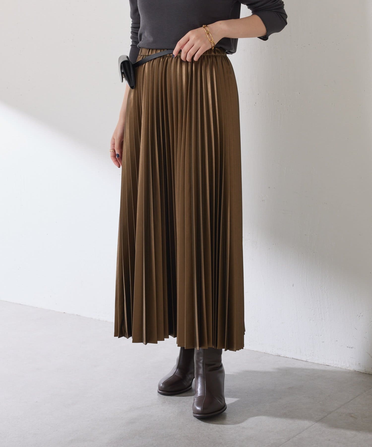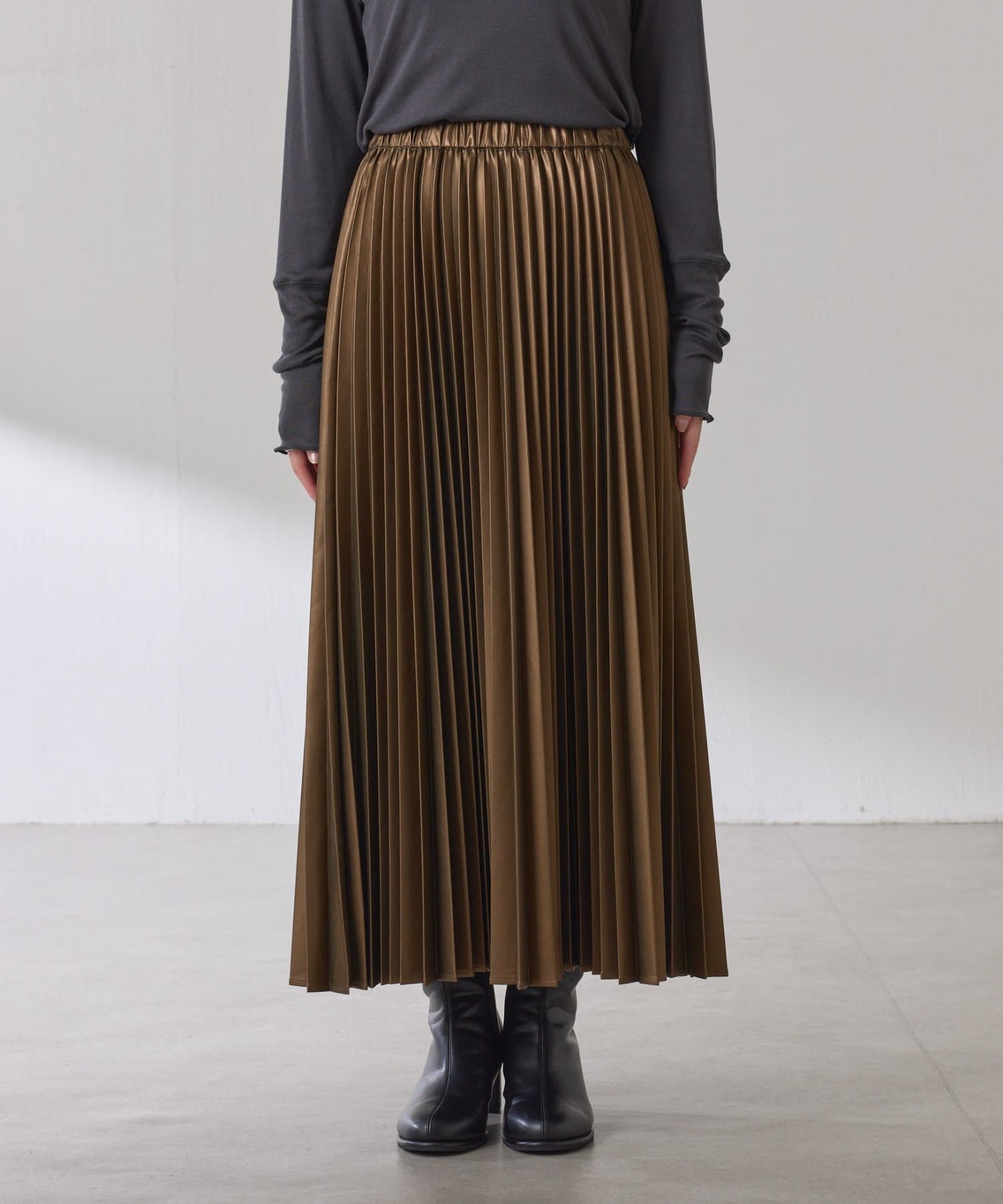 ・甘くなりがちなプリーツをスタイリッシュな印象に仕上げました。