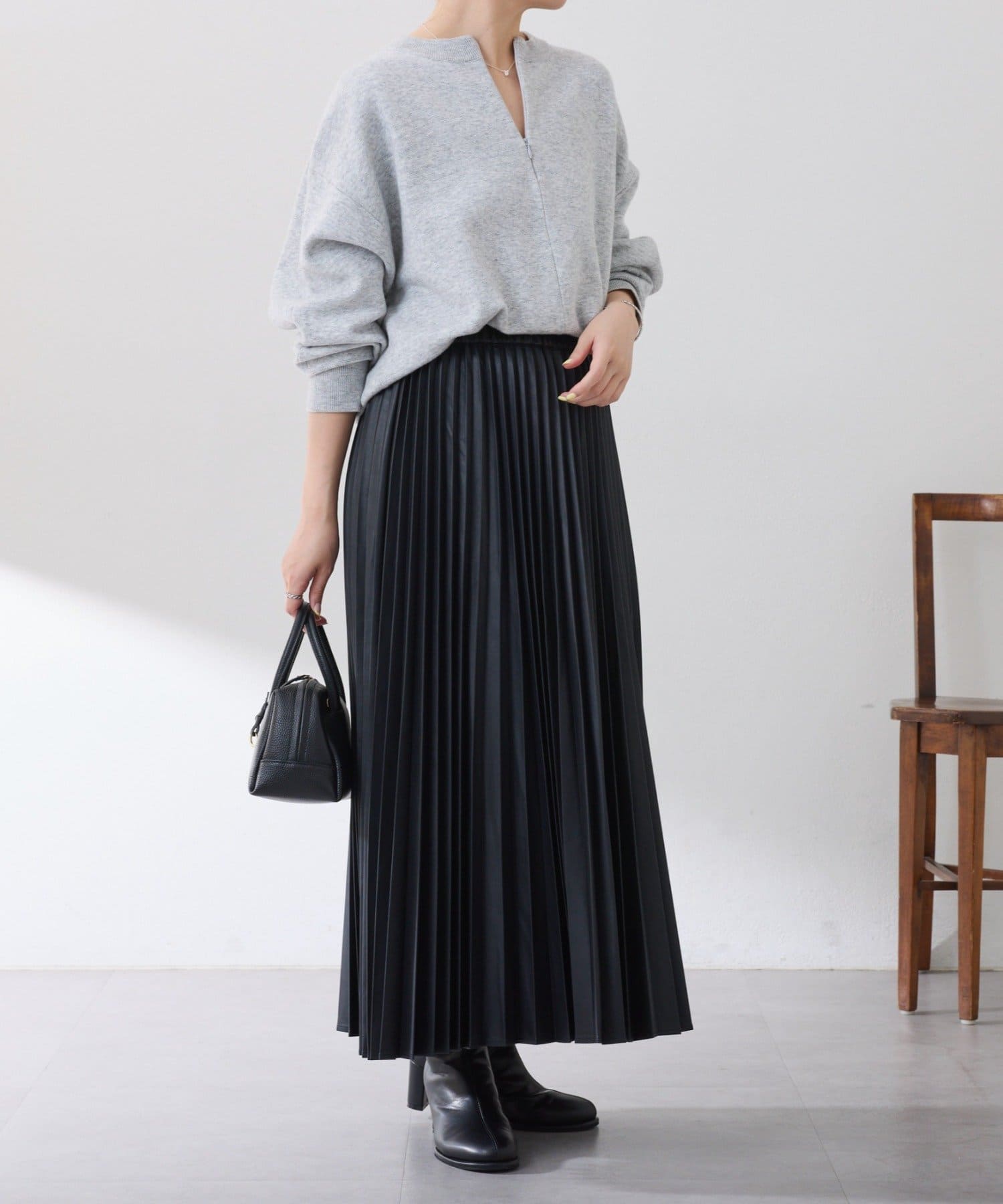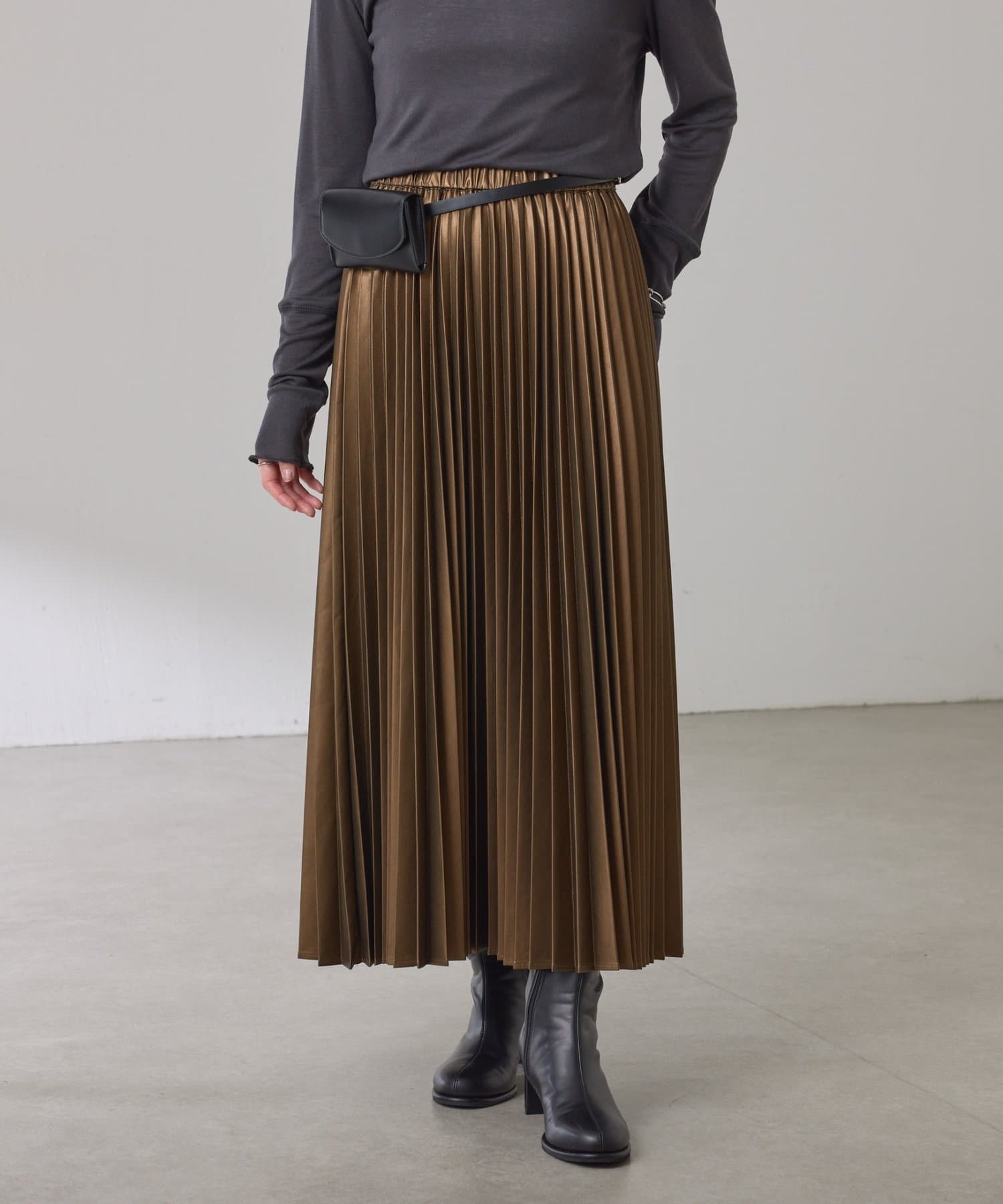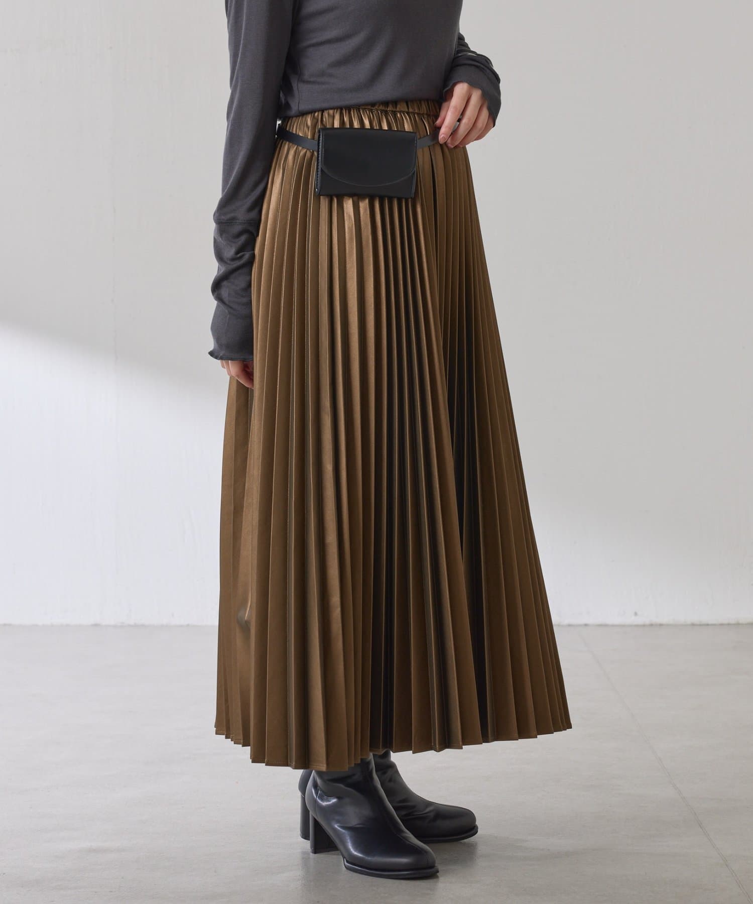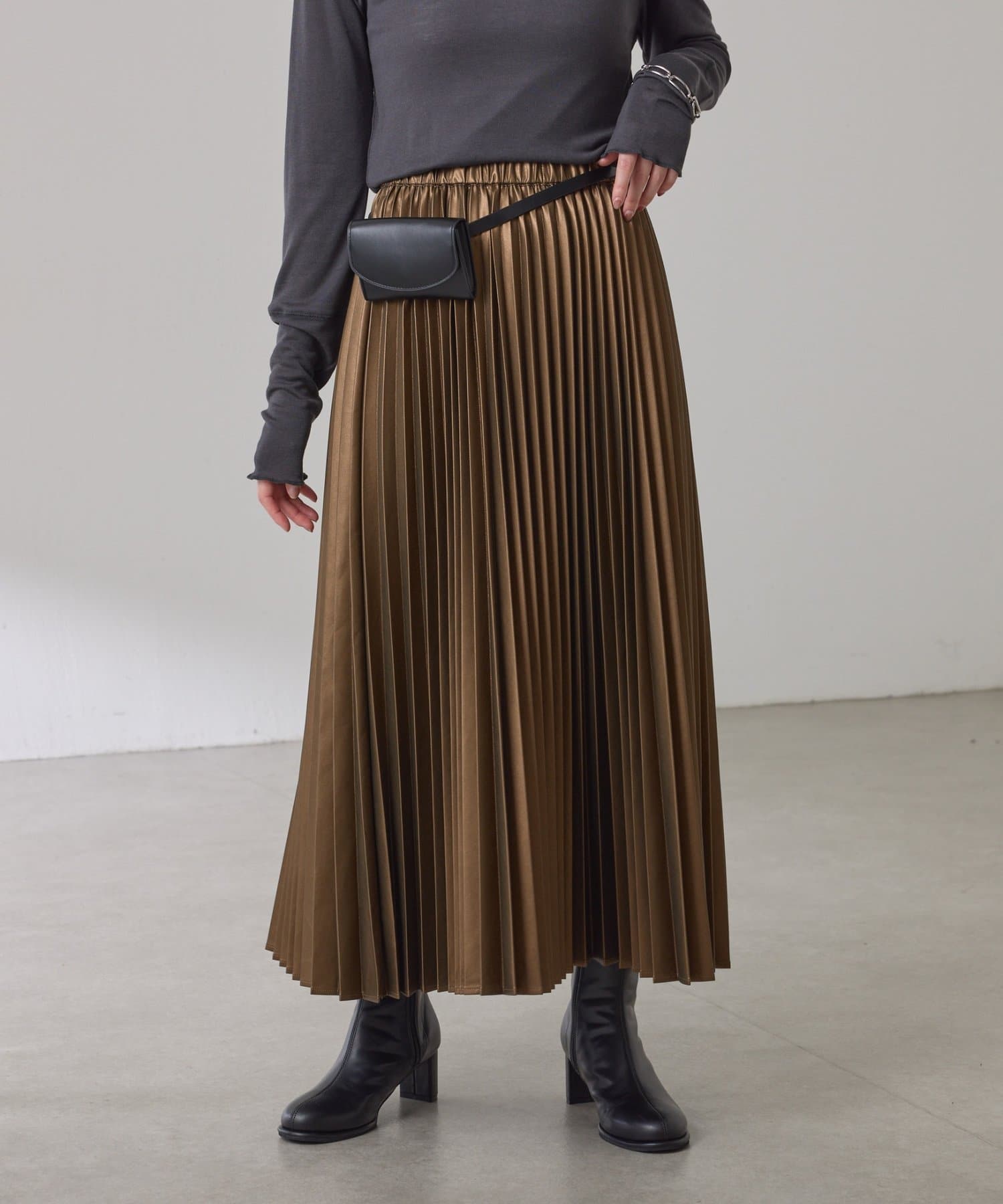 ・甘くなりがちなプリーツをスタイリッシュな印象に仕上げました。