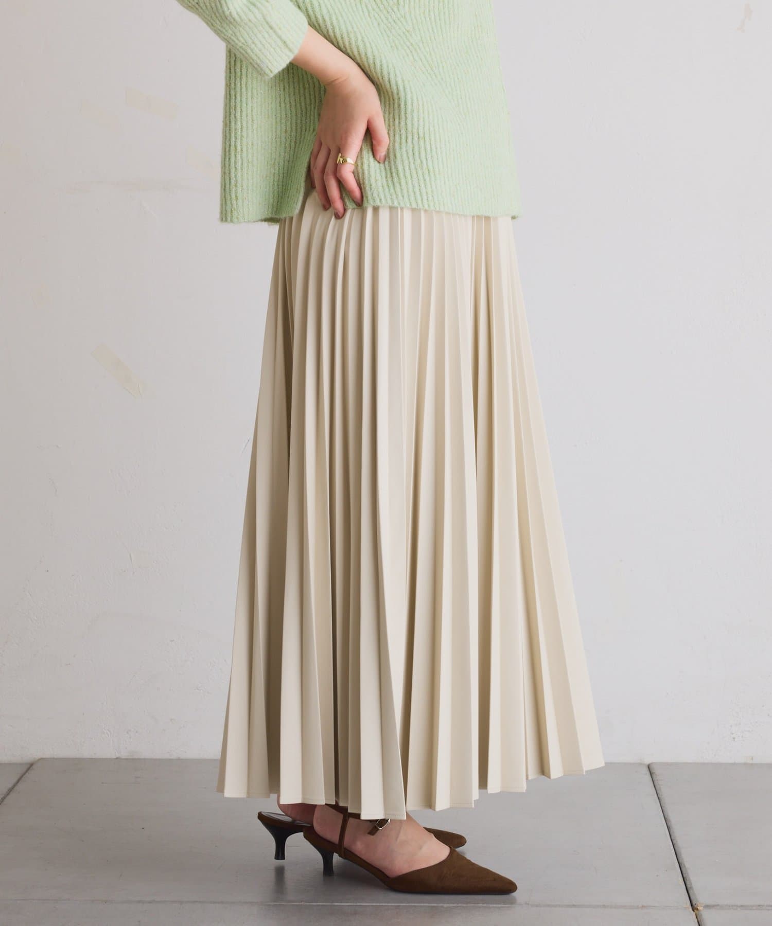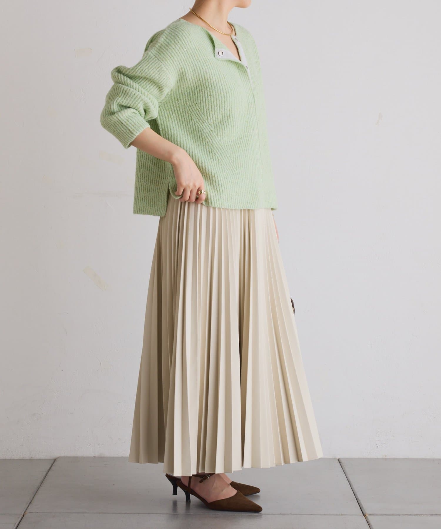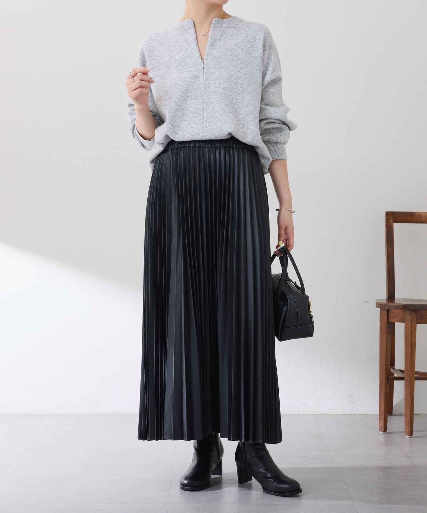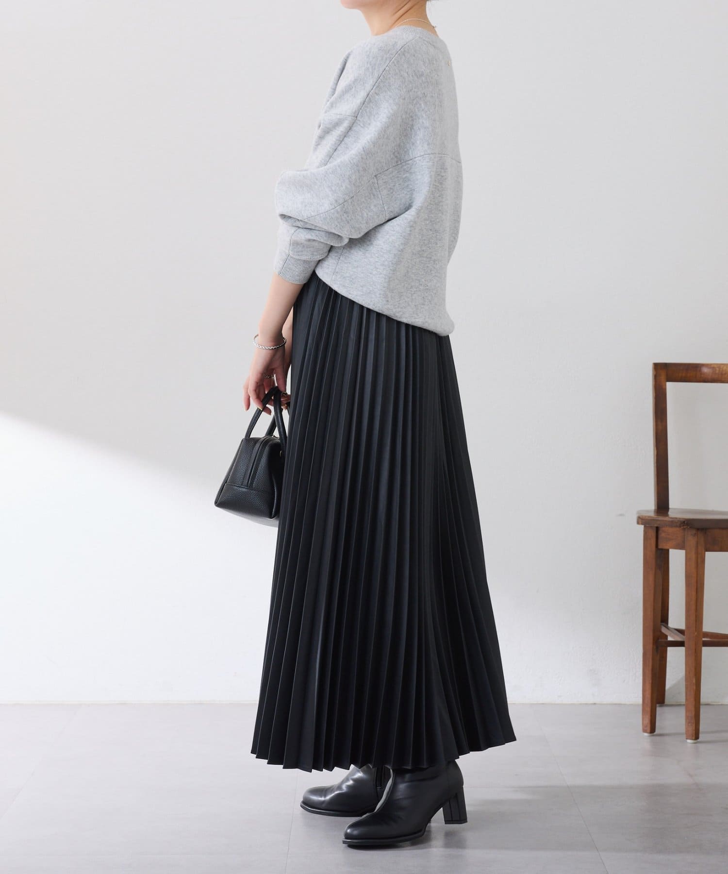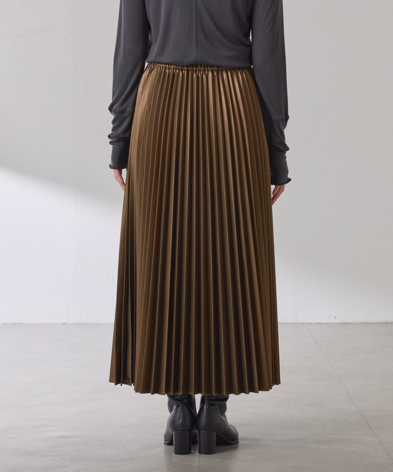 ・甘くなりがちなプリーツをスタイリッシュな印象に仕上げました。