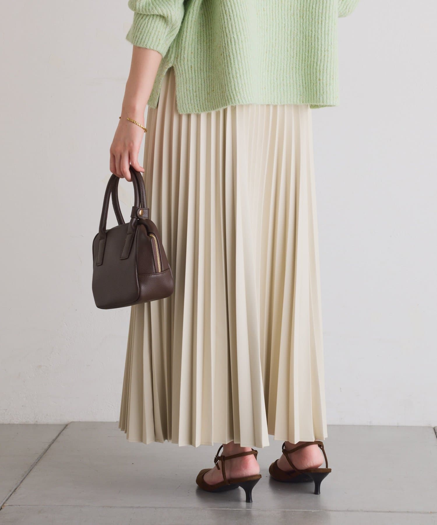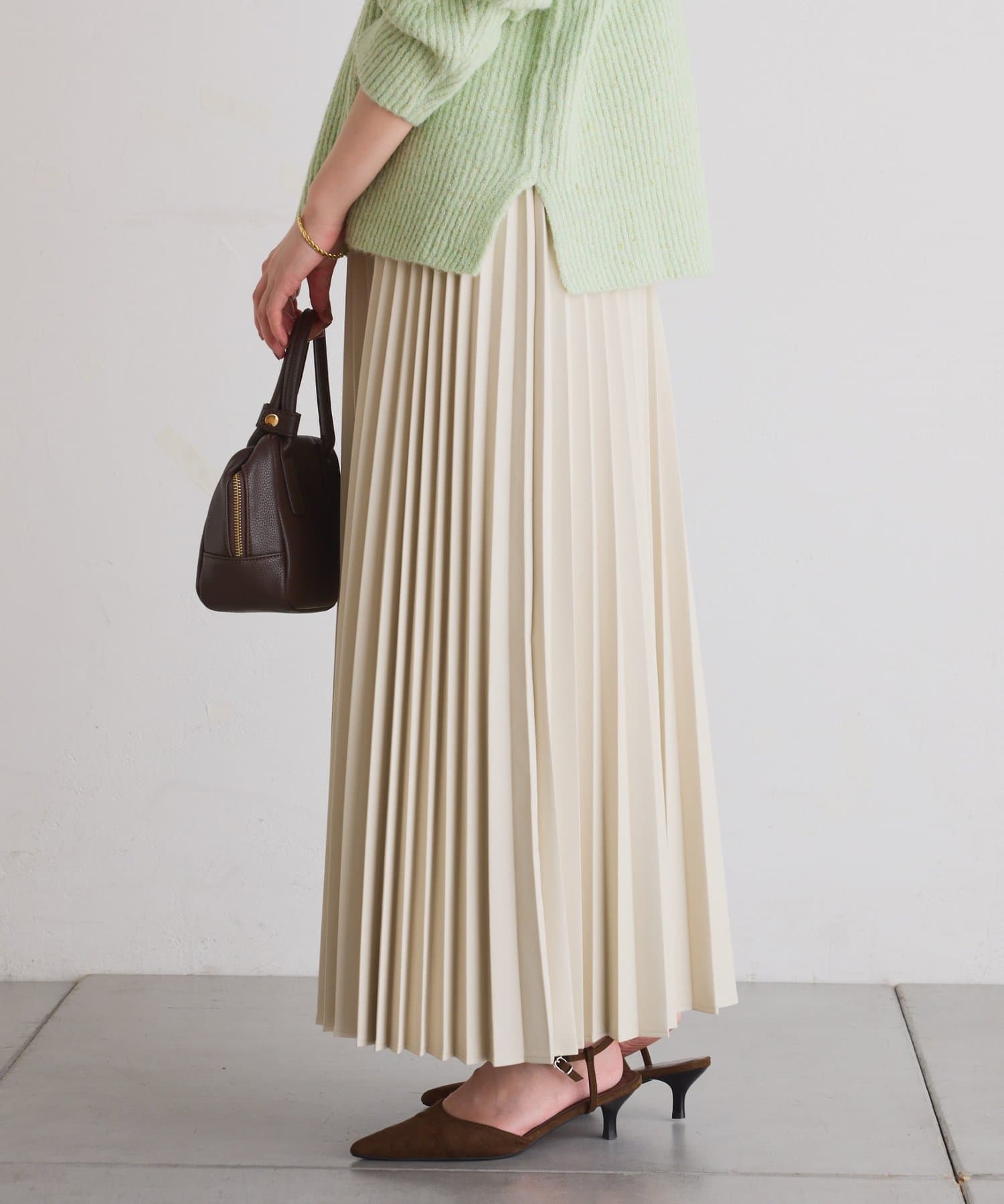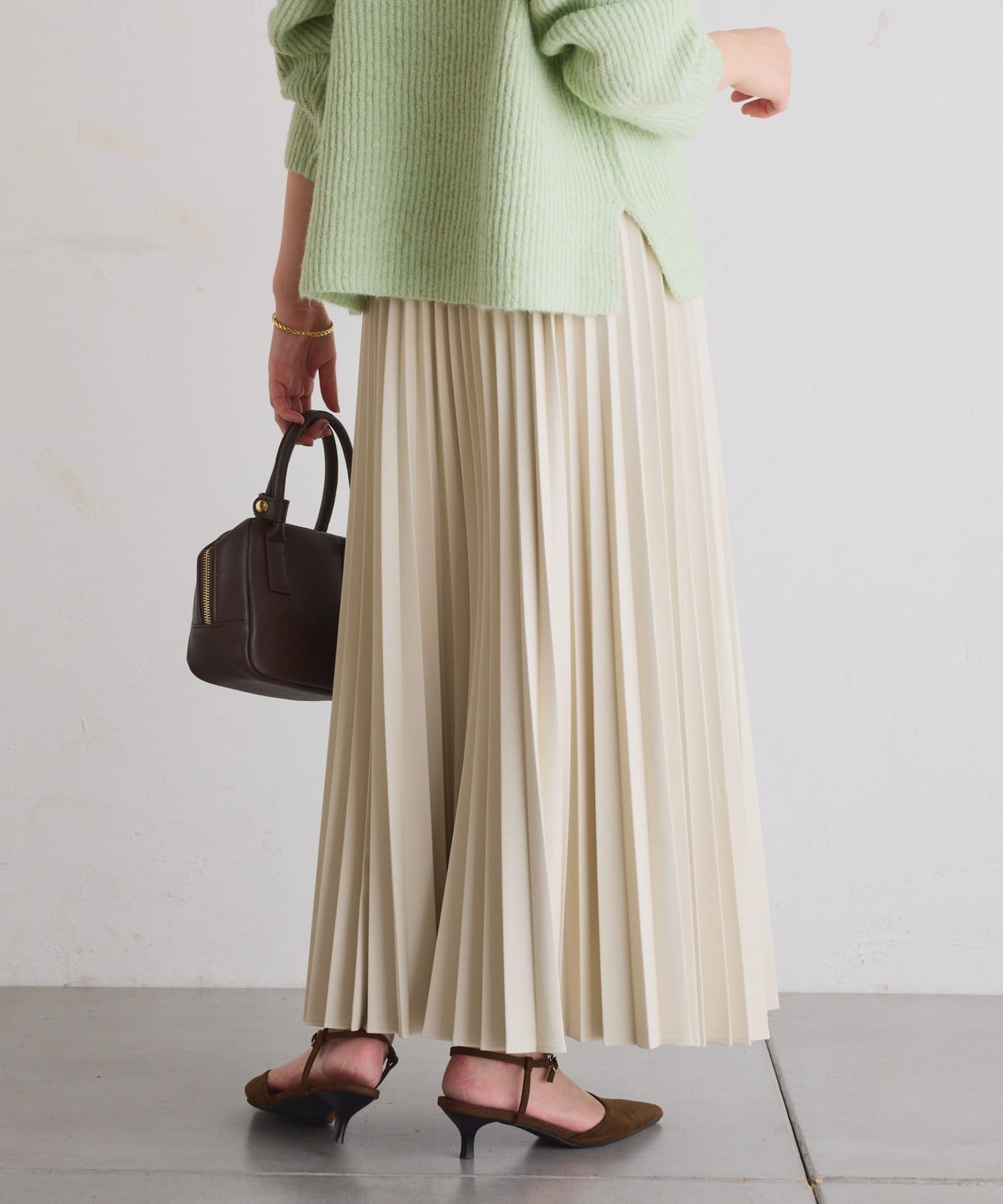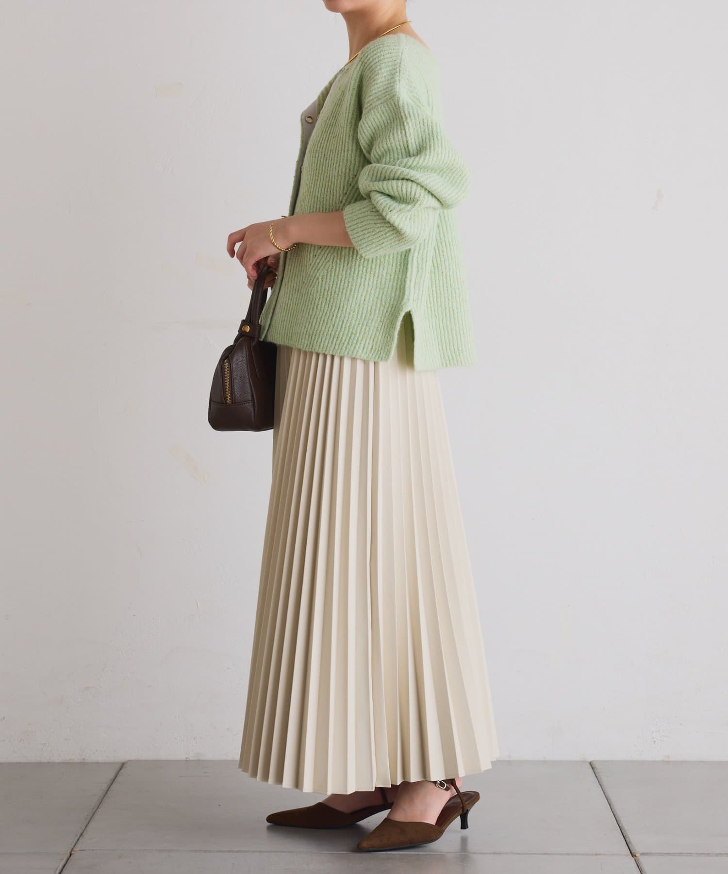 ・甘くなりがちなプリーツをスタイリッシュな印象に仕上げました。