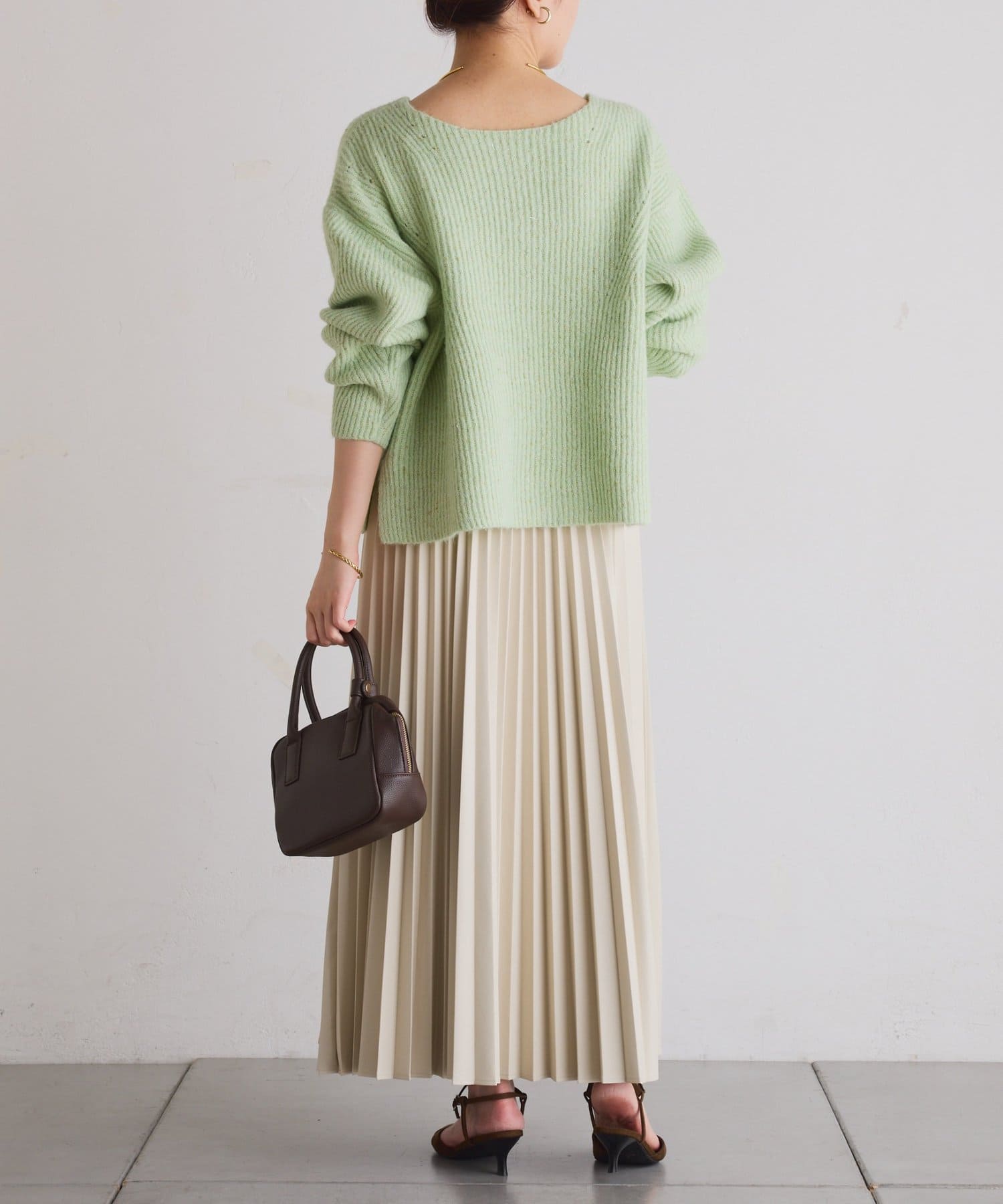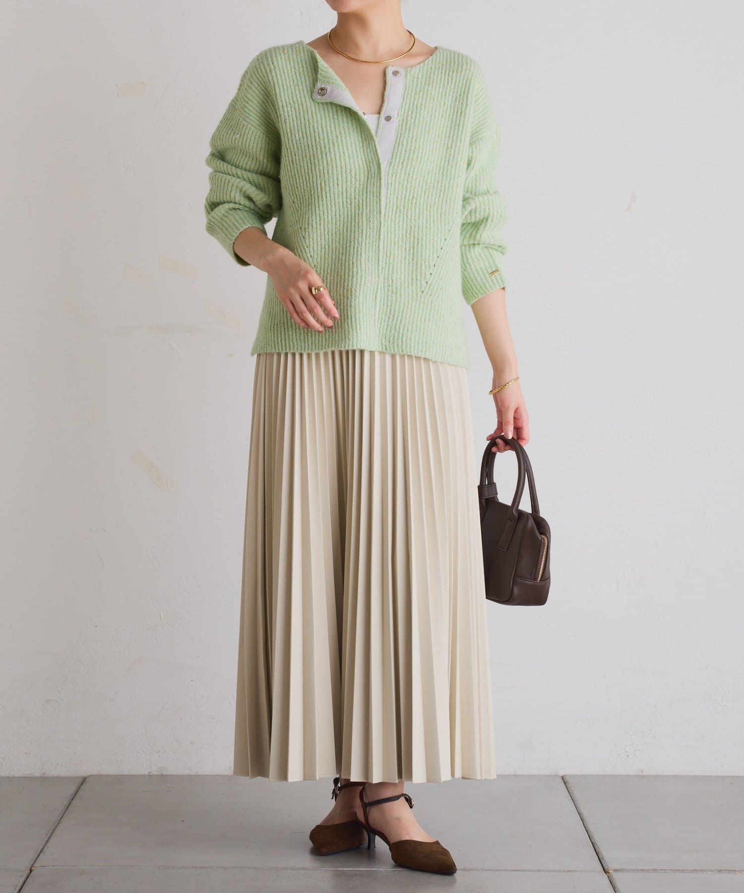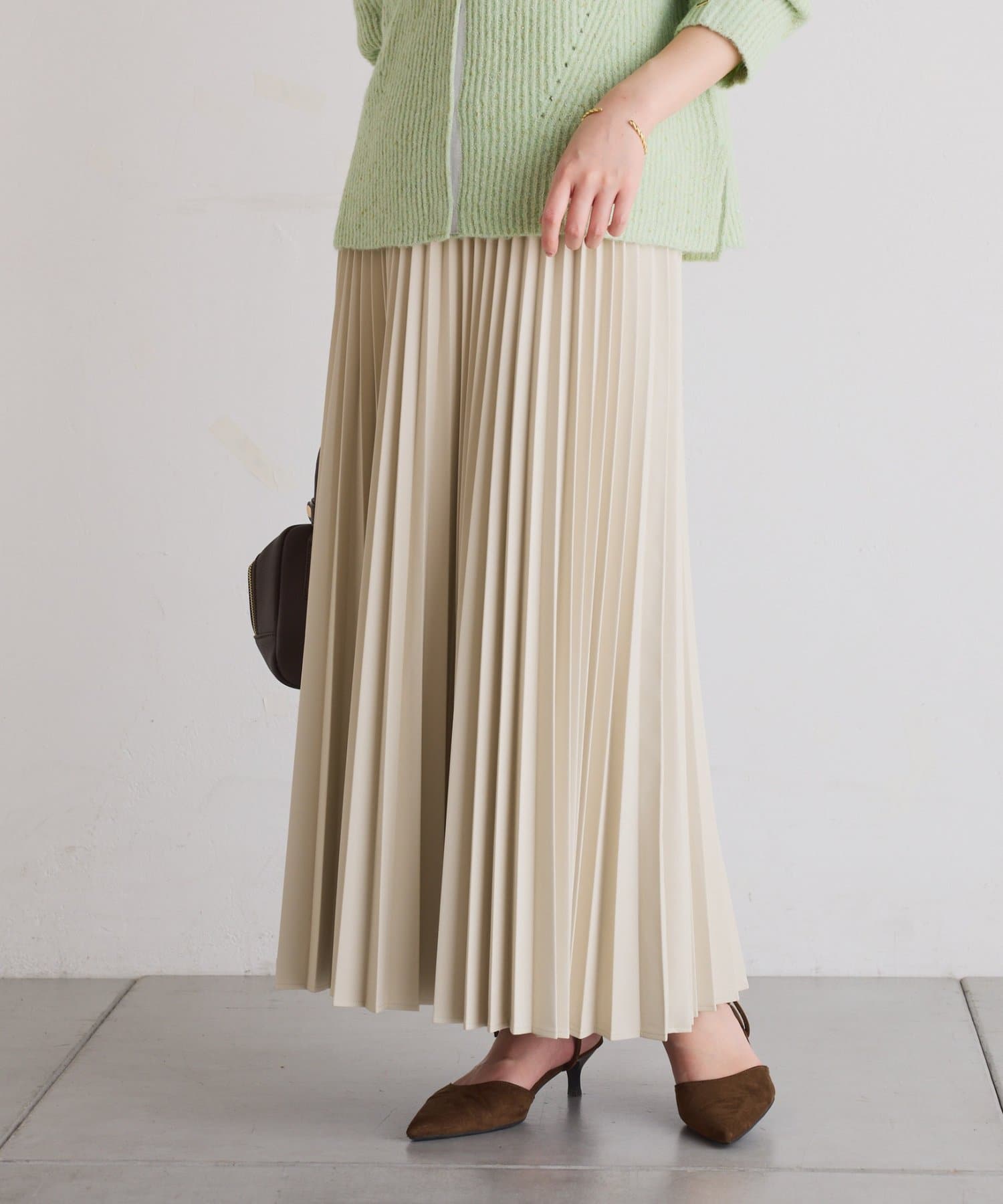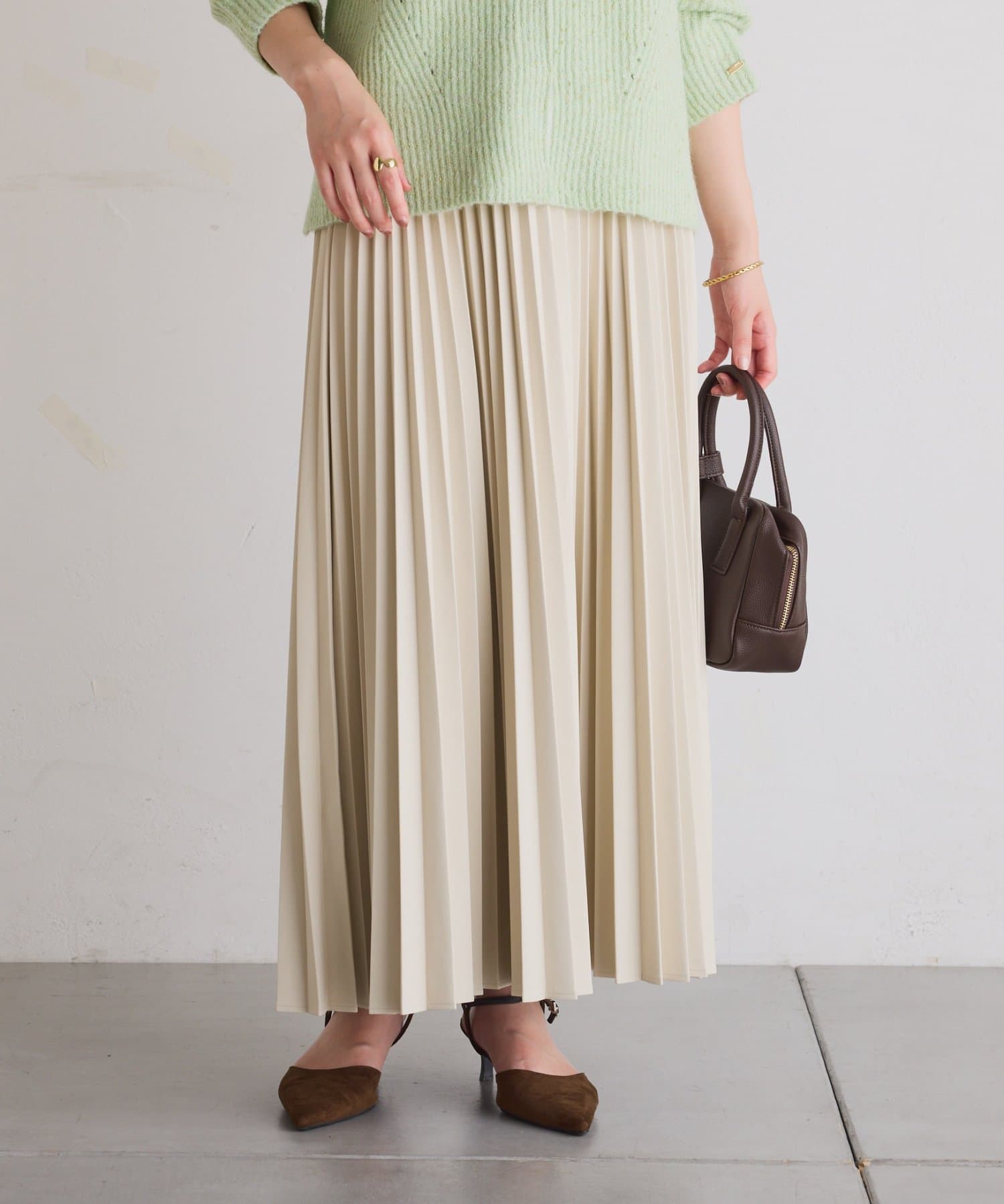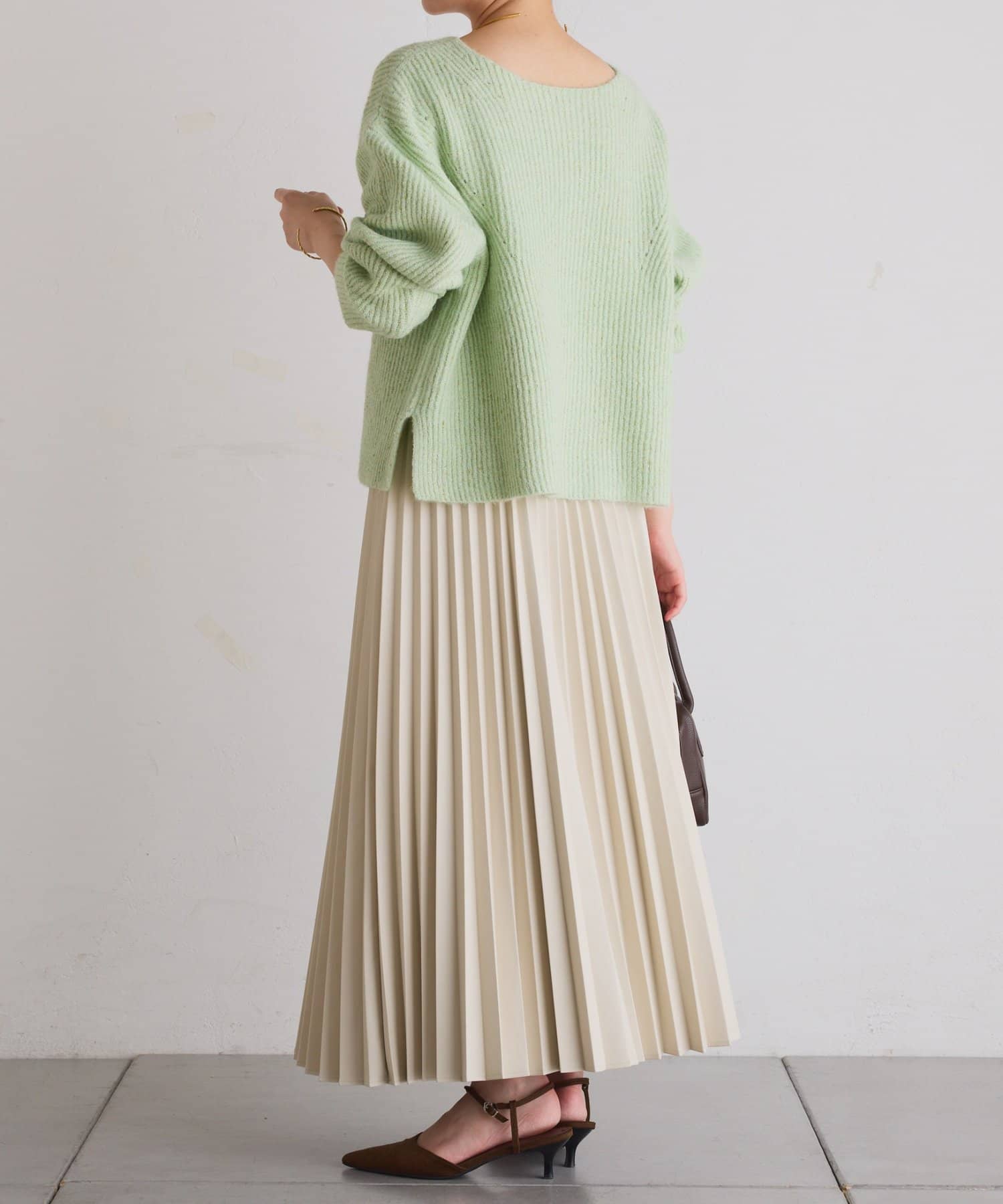 ・甘くなりがちなプリーツをスタイリッシュな印象に仕上げました。