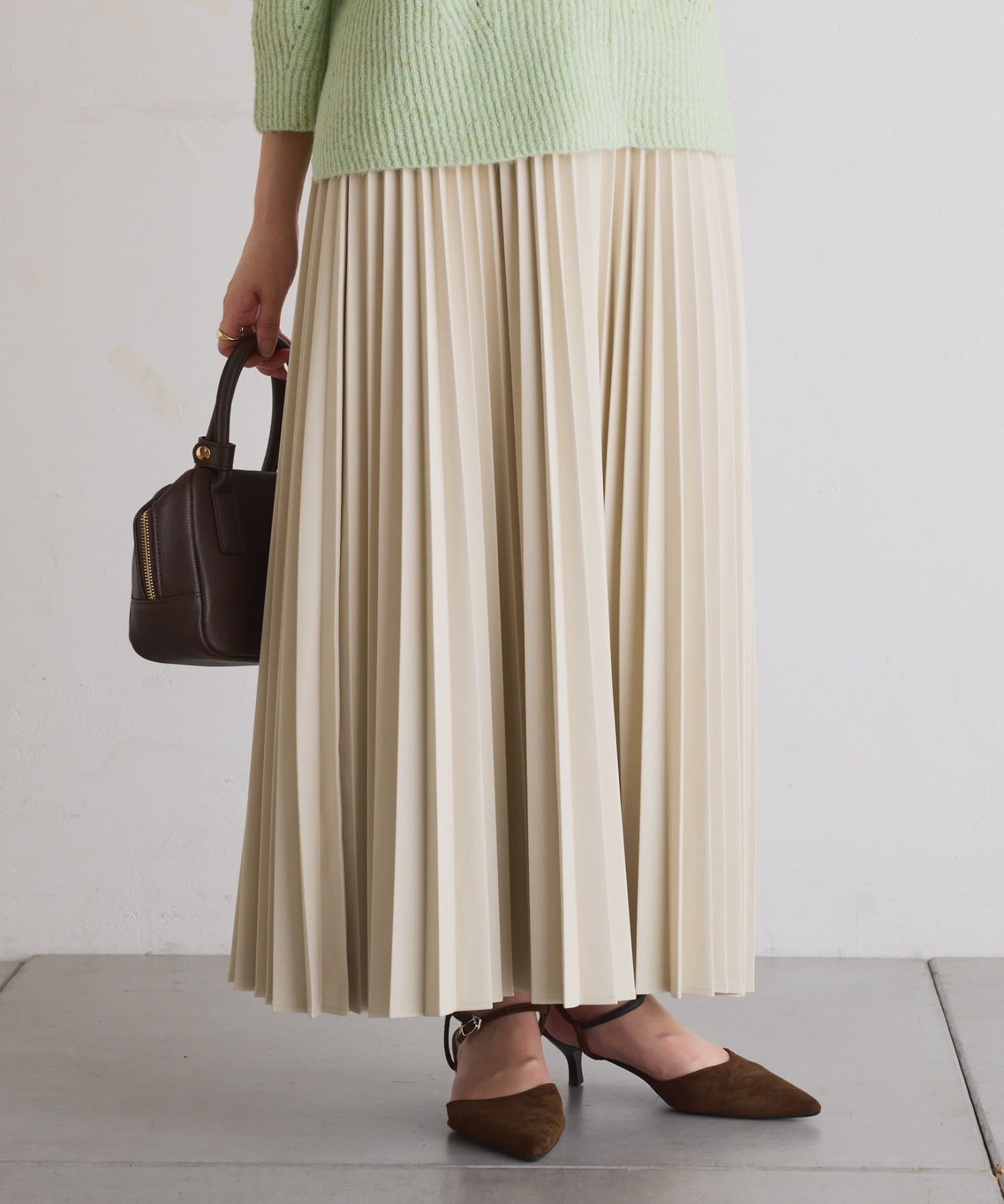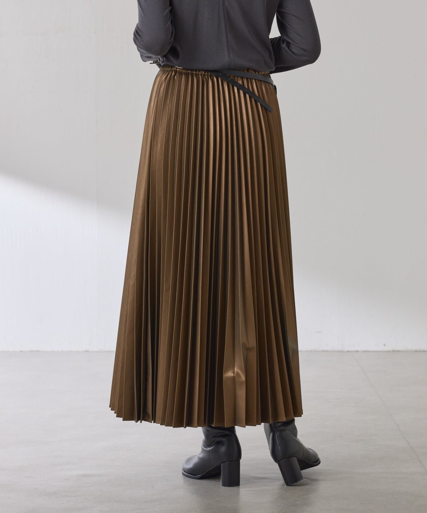 ・上品な艶感としなやかさが魅力のフェイクレザーを使用したプリーツスカート。