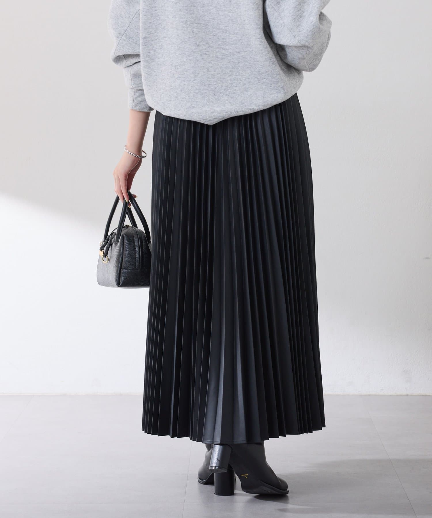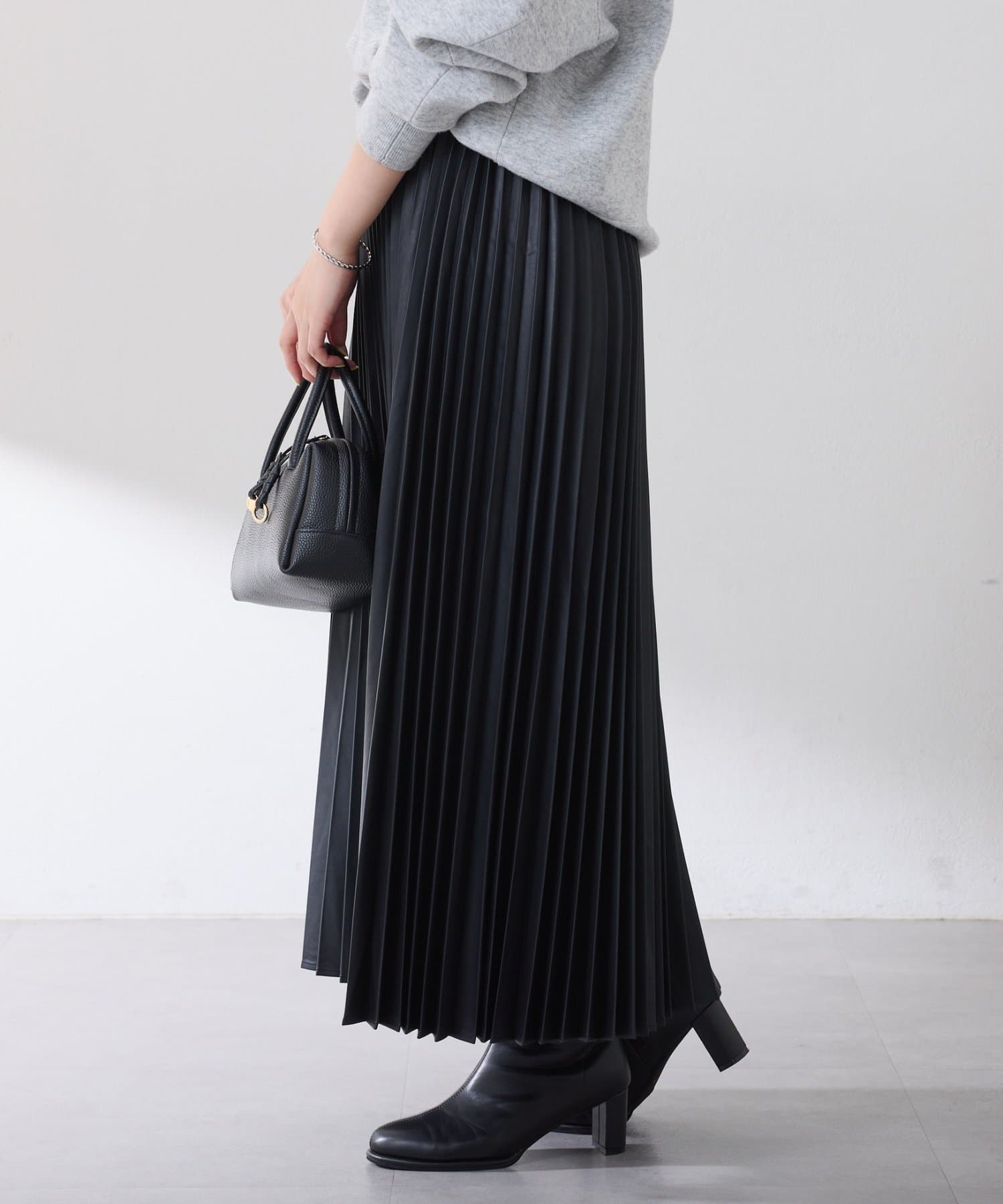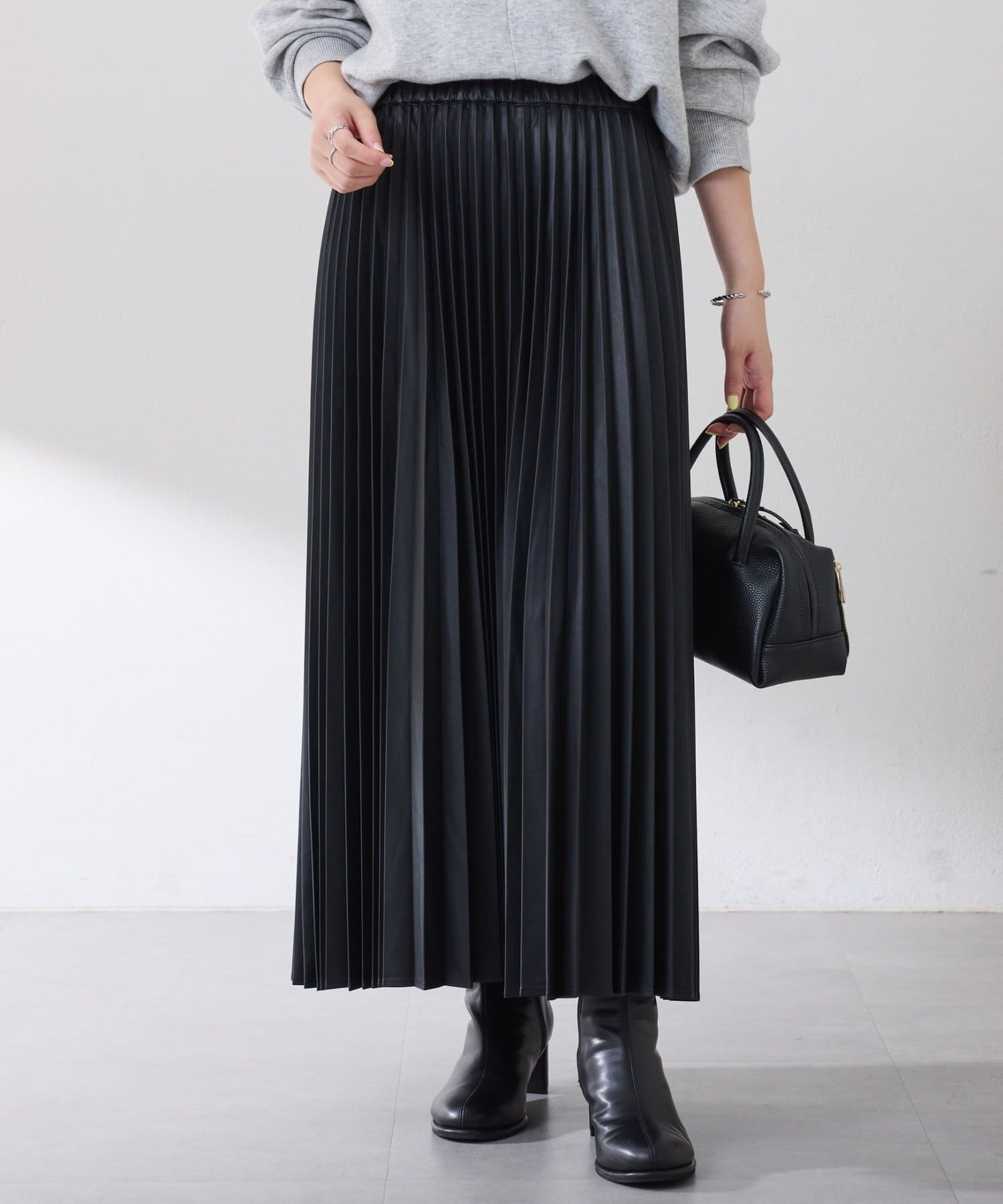 カジュアルからきれいめまで幅広く活躍するフェイクレザーのプリーツスカート
