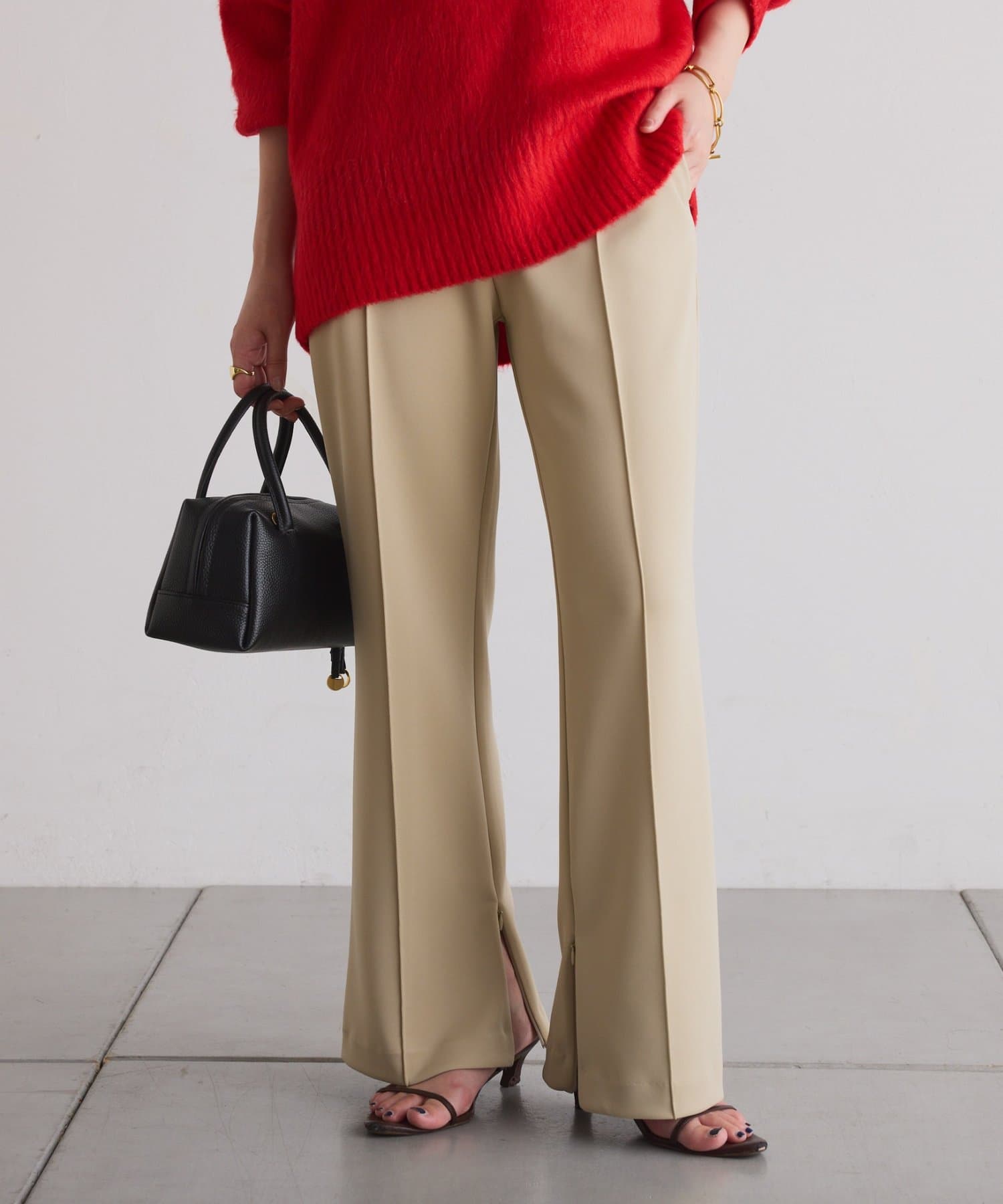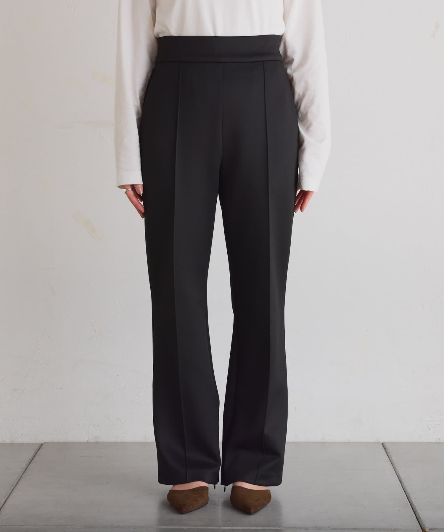 美脚効果抜群の楽ちんセミフレアパンツ