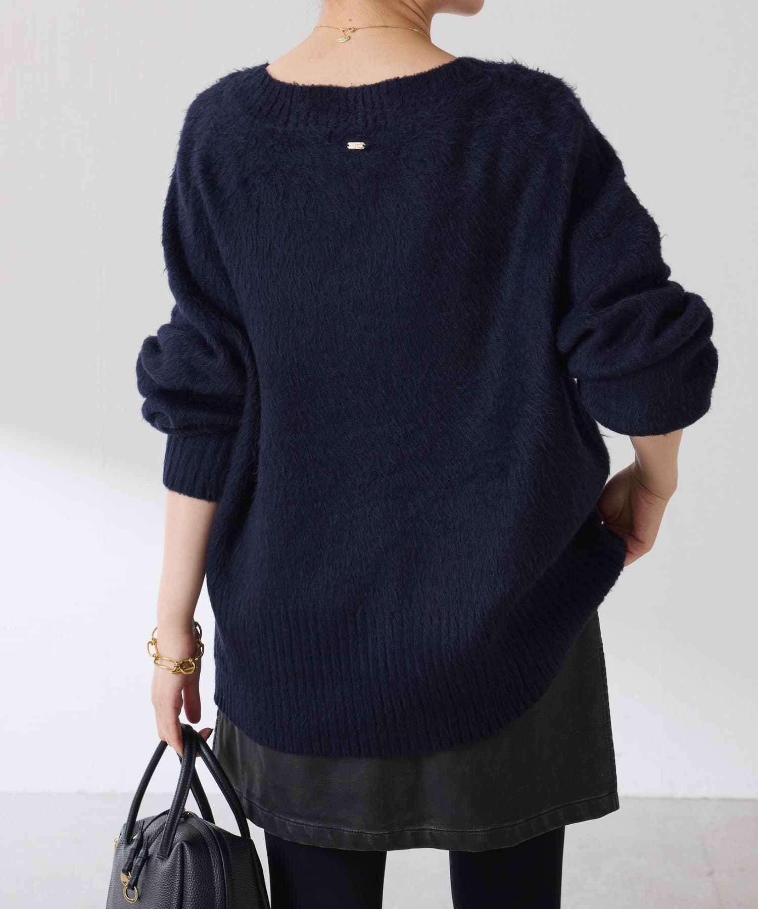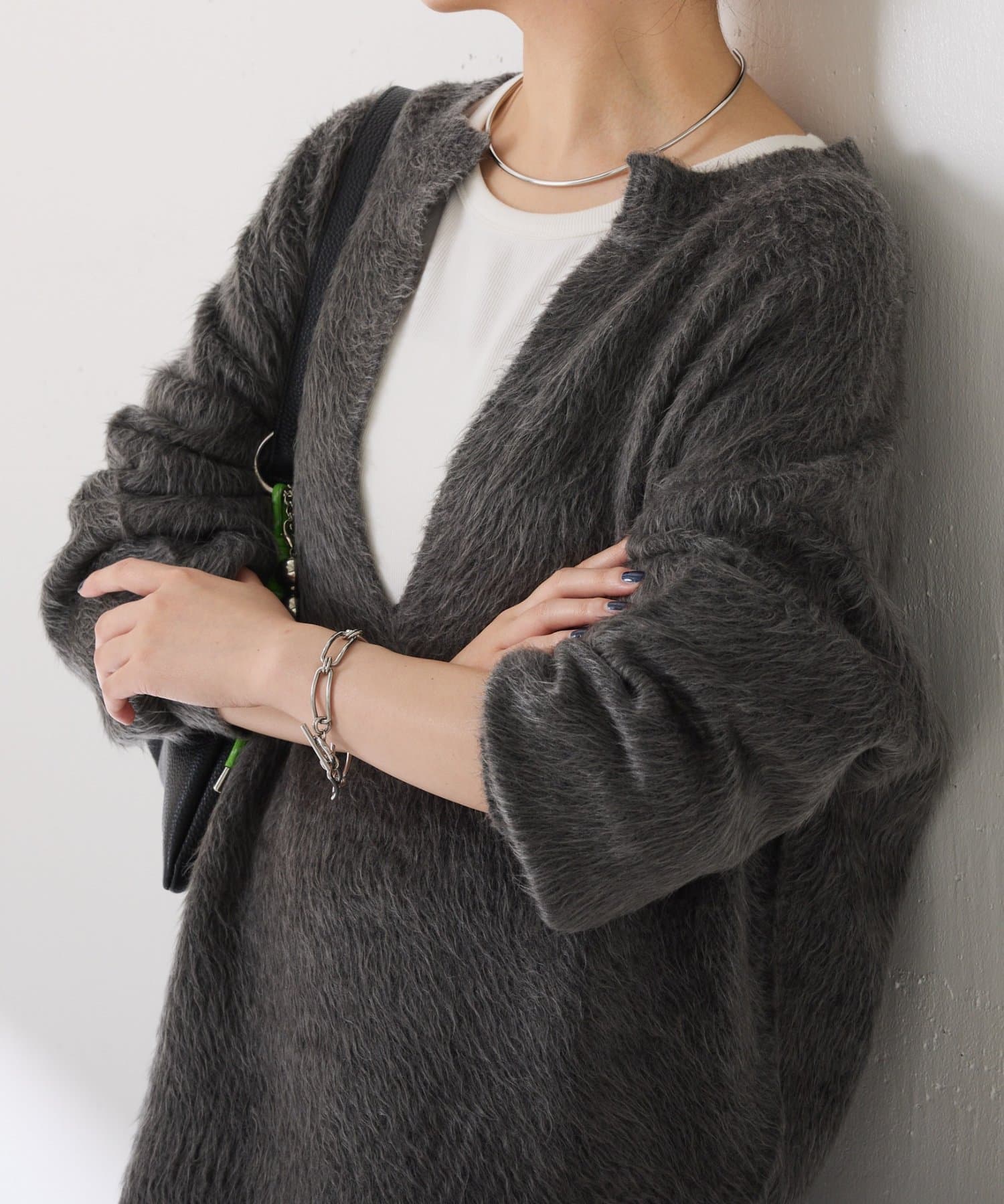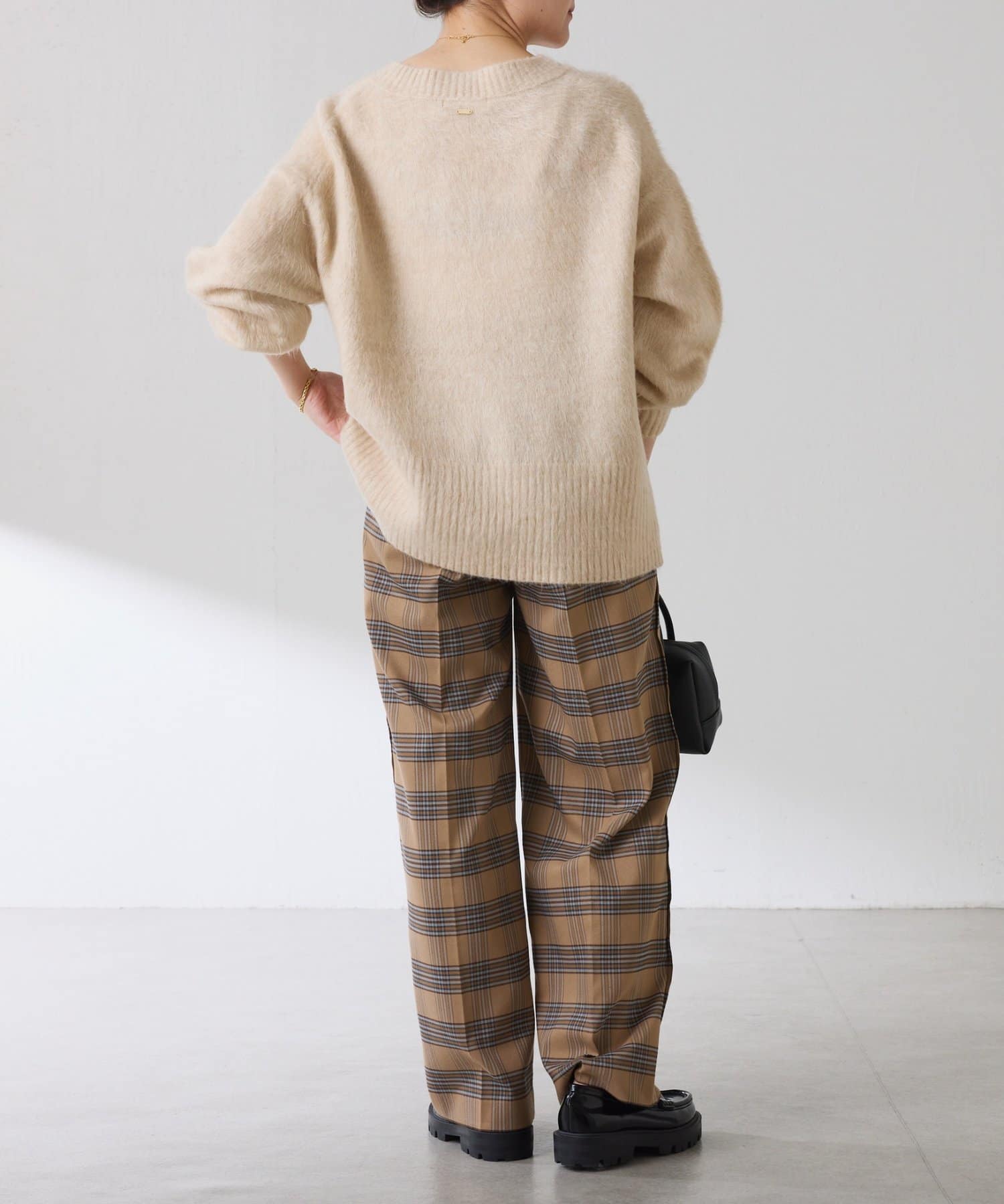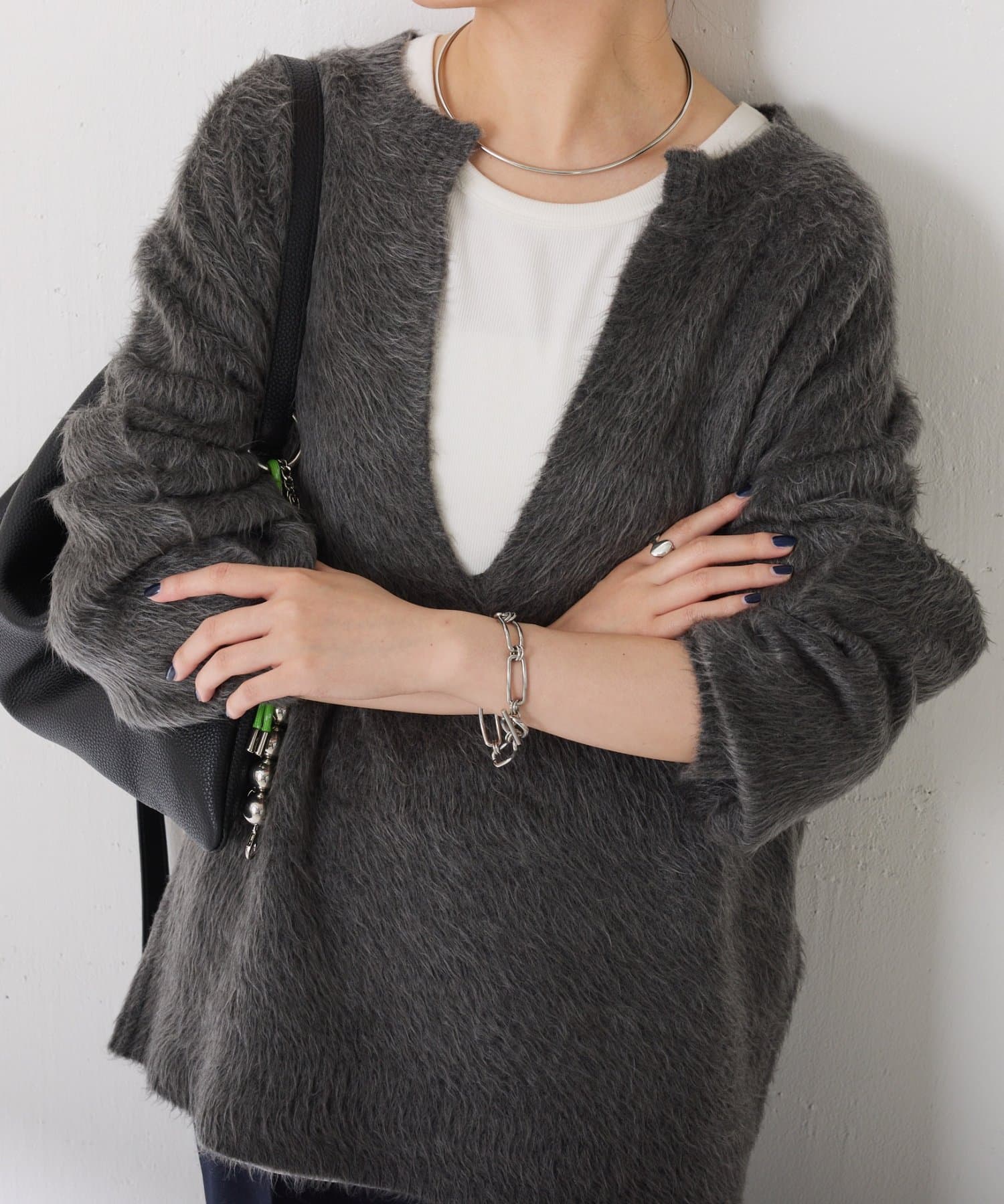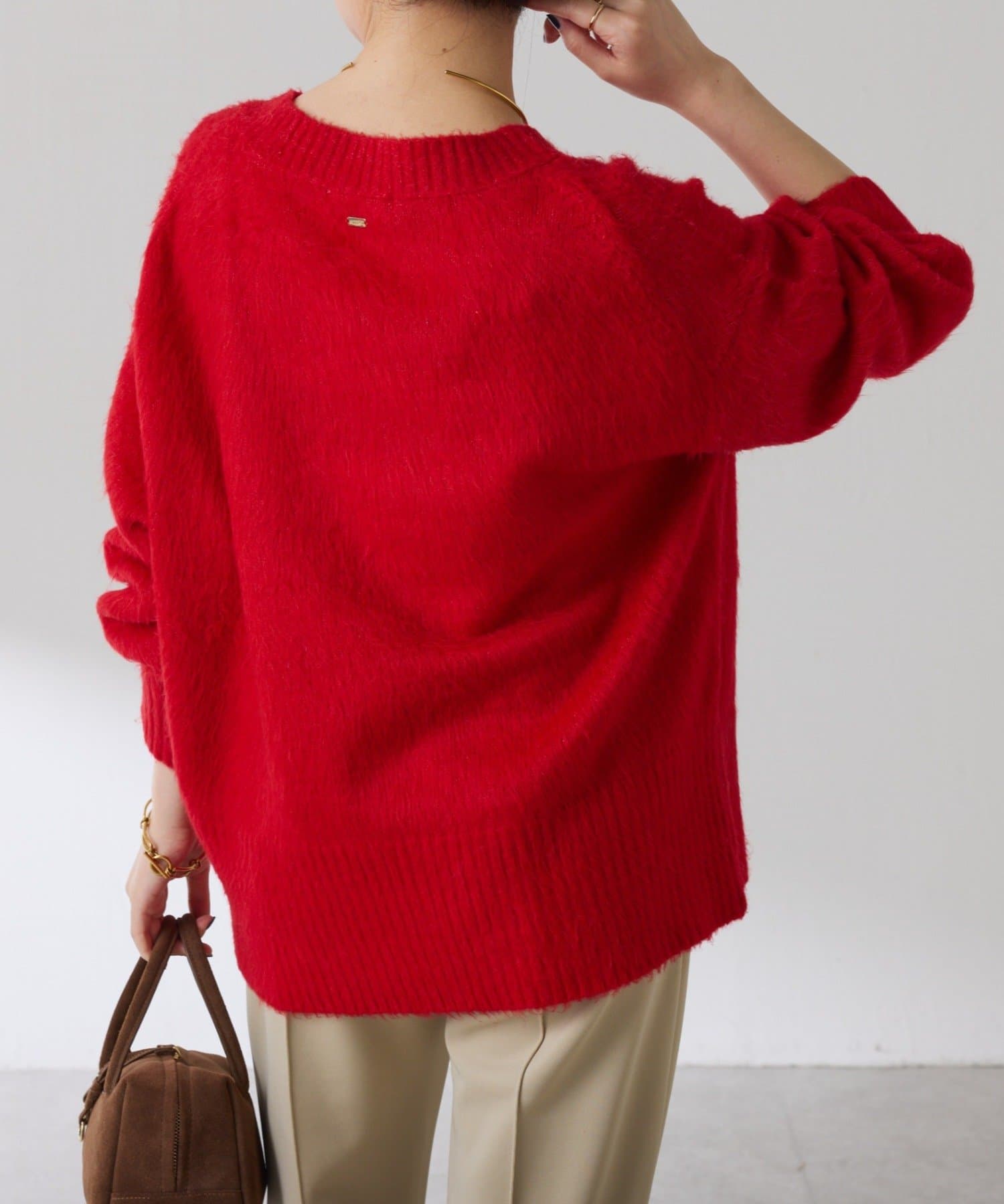 ・とにかく軽いエアリーな糸を使用した深Vニット。着ぶくれ感もなく、ストレスフリーな着心地です。