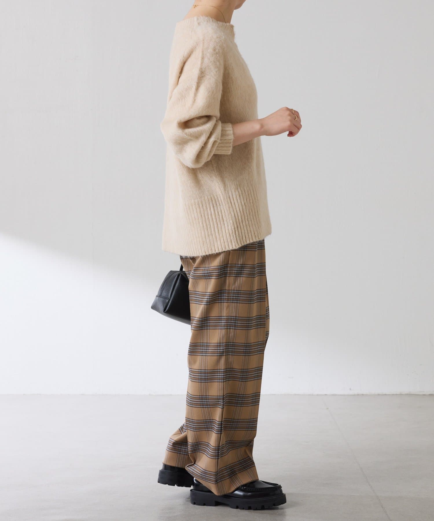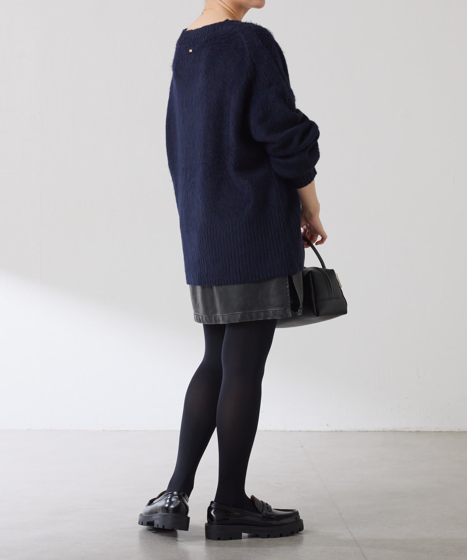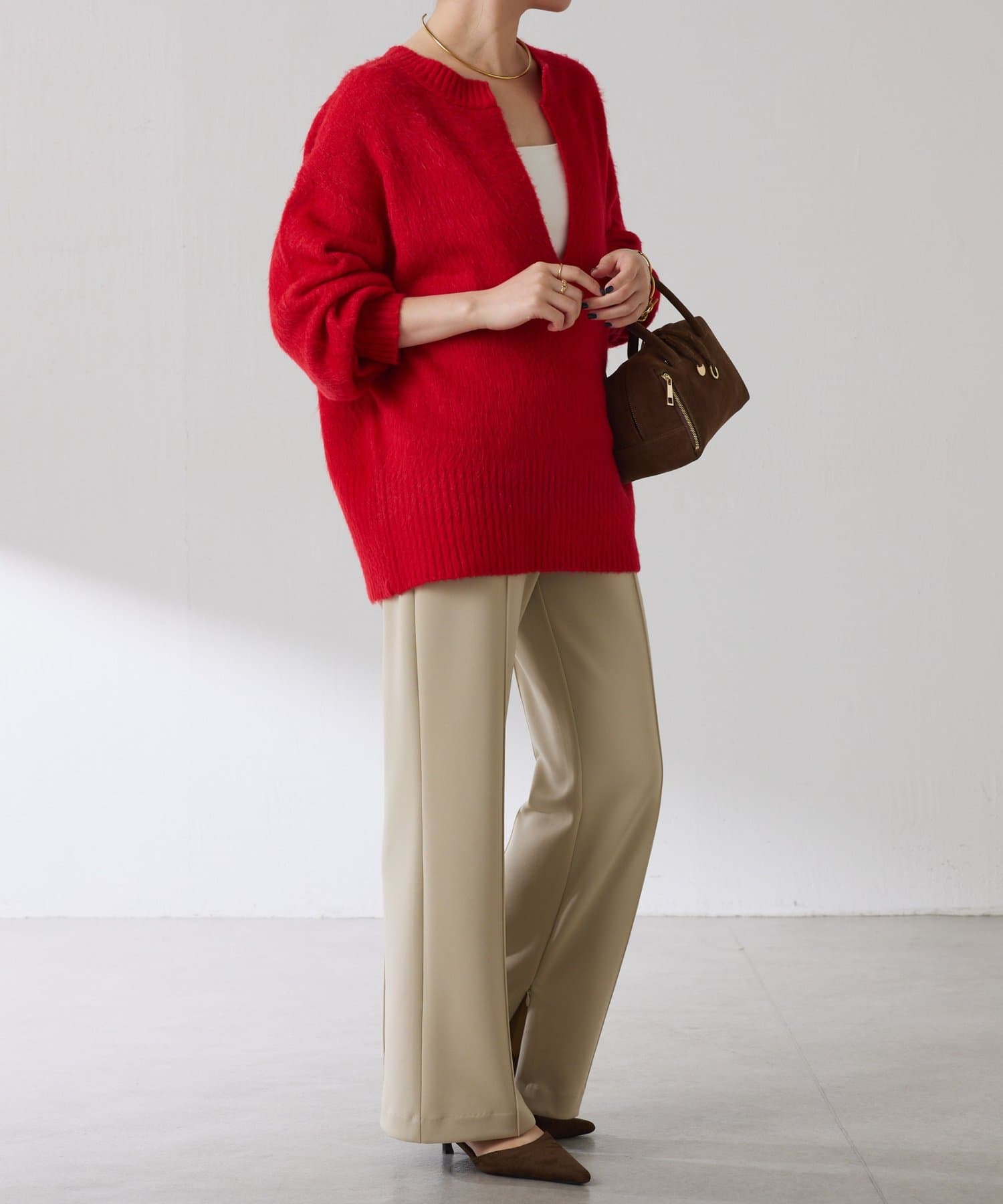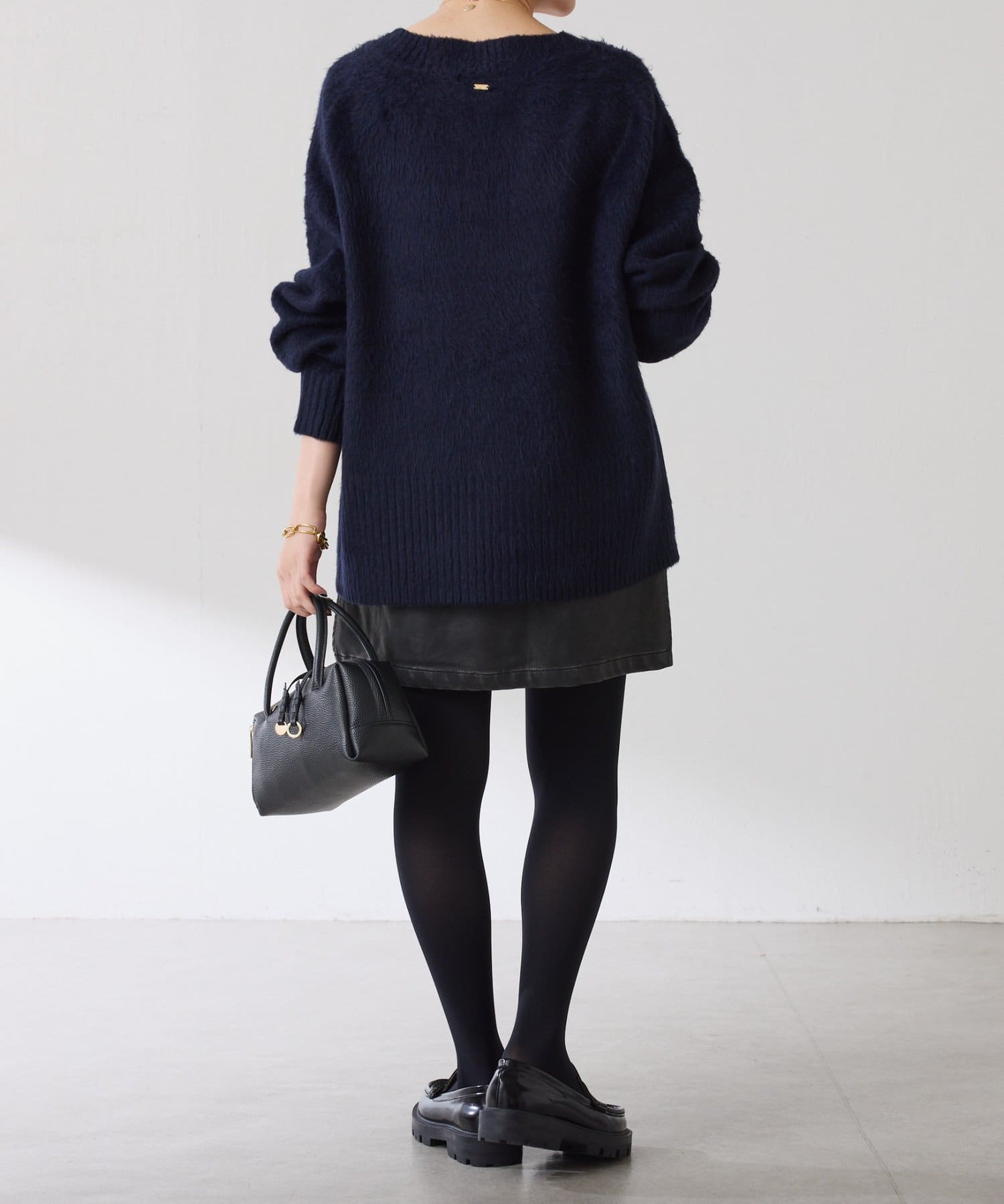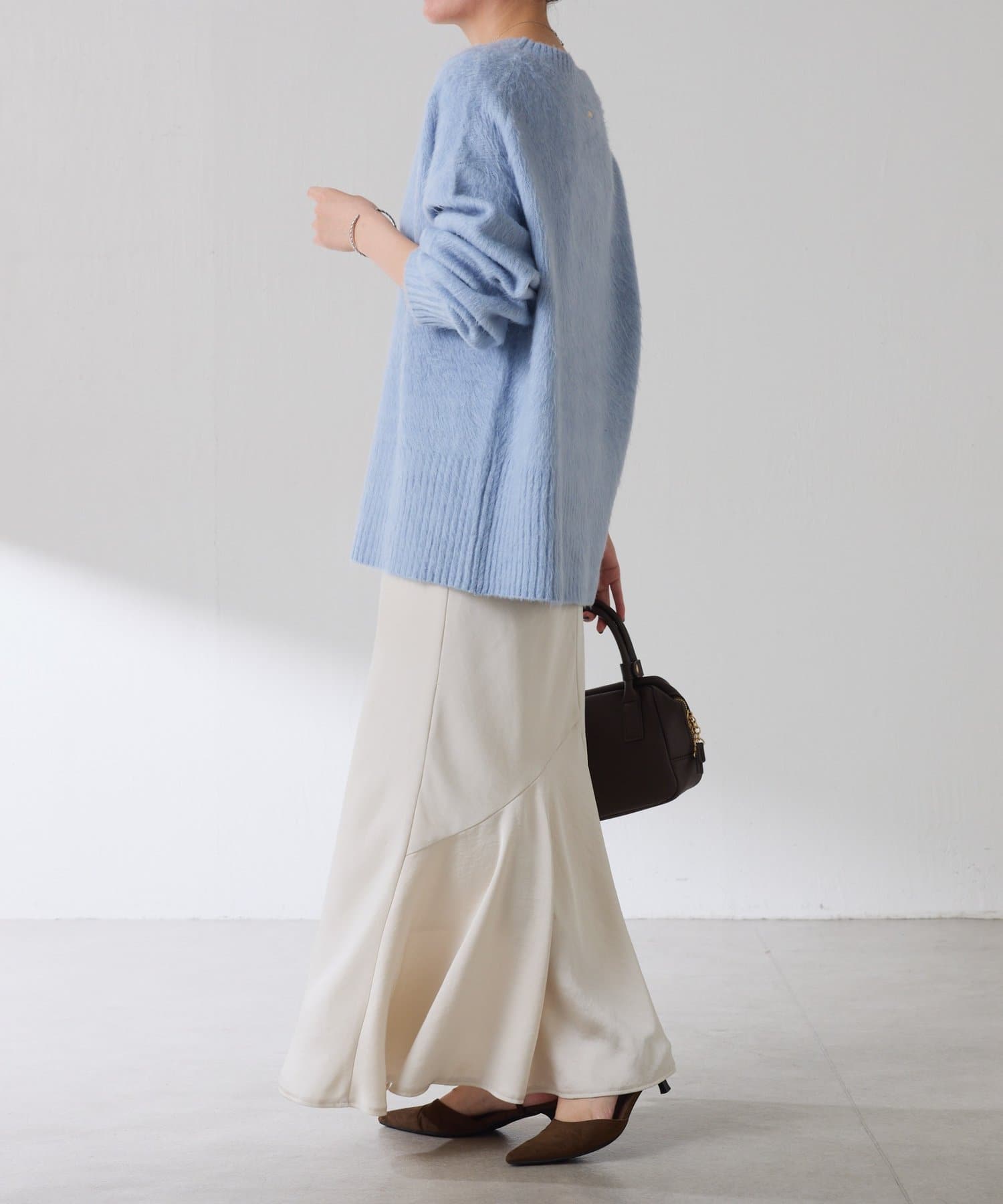 ・とにかく軽いエアリーな糸を使用した深Vニット。着ぶくれ感もなく、ストレスフリーな着心地です。