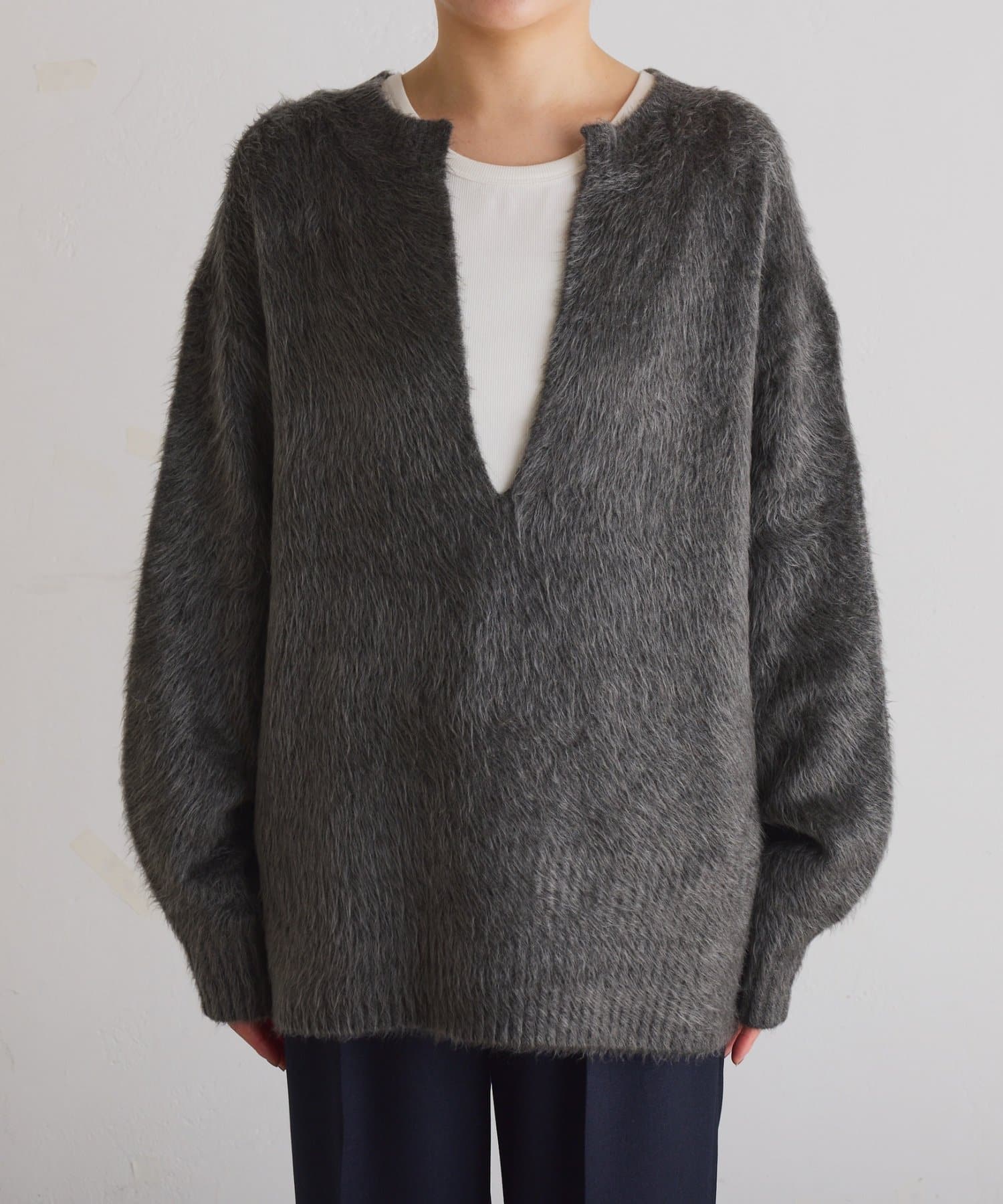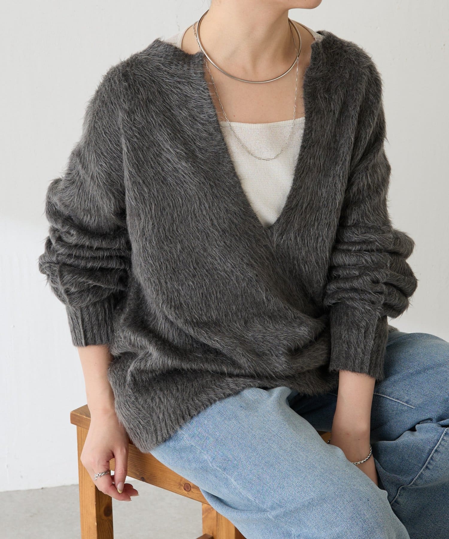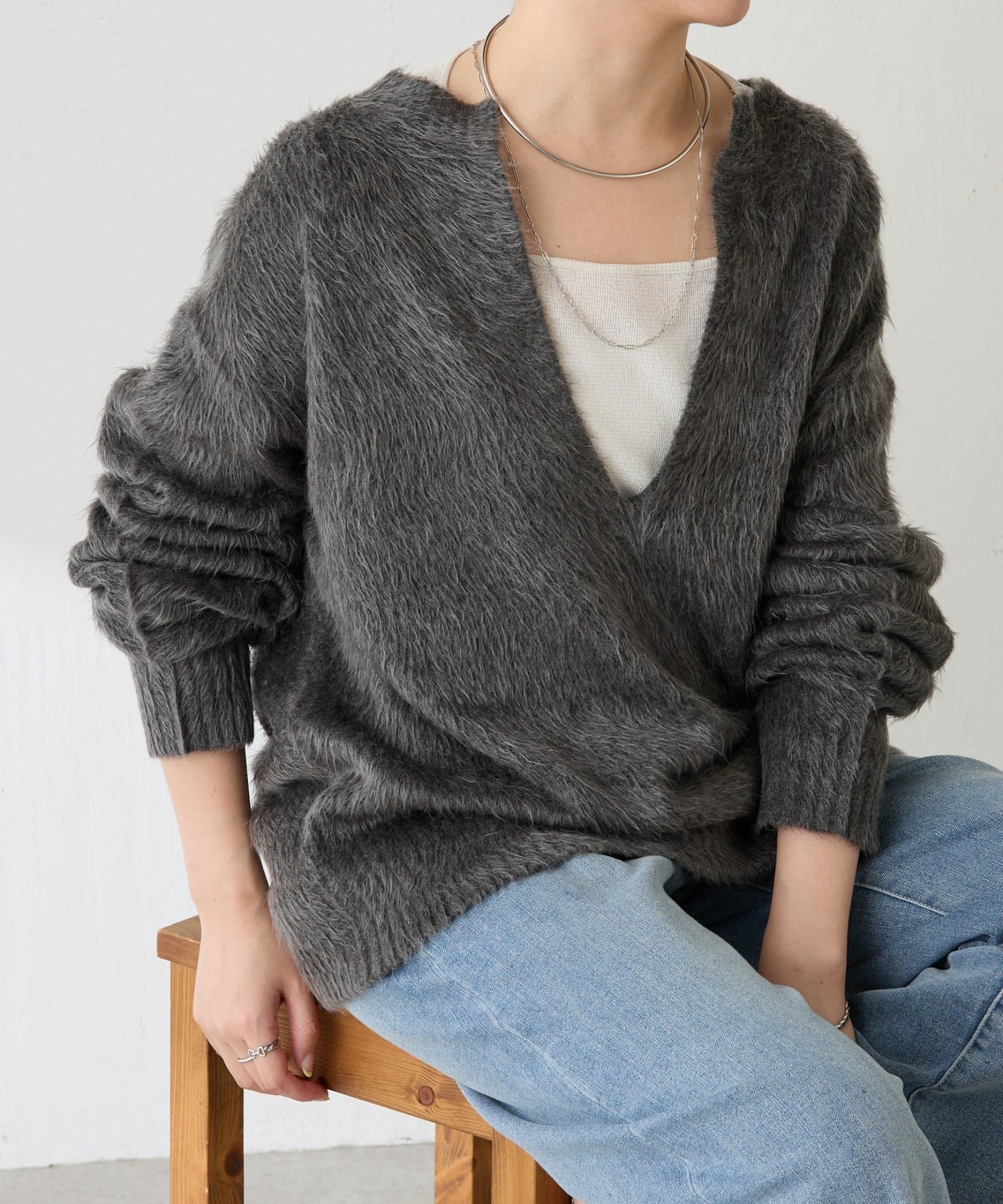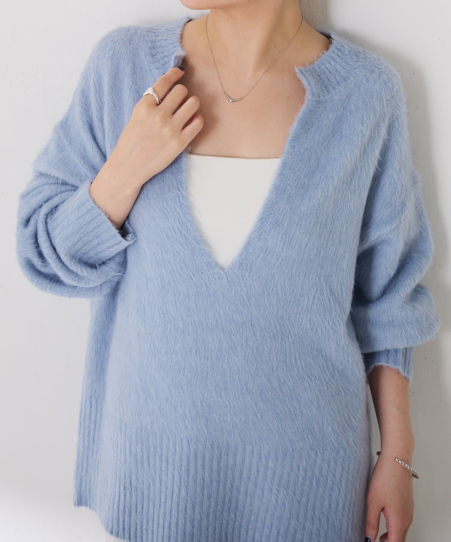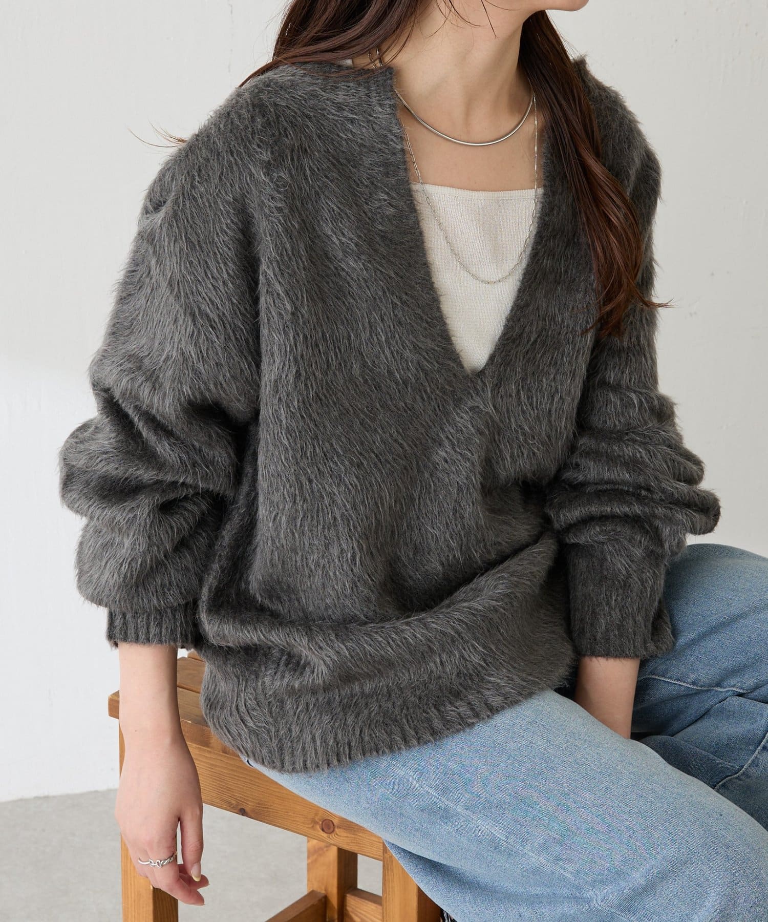 ふわっとした毛足感と軽さが魅力の深Vニット
