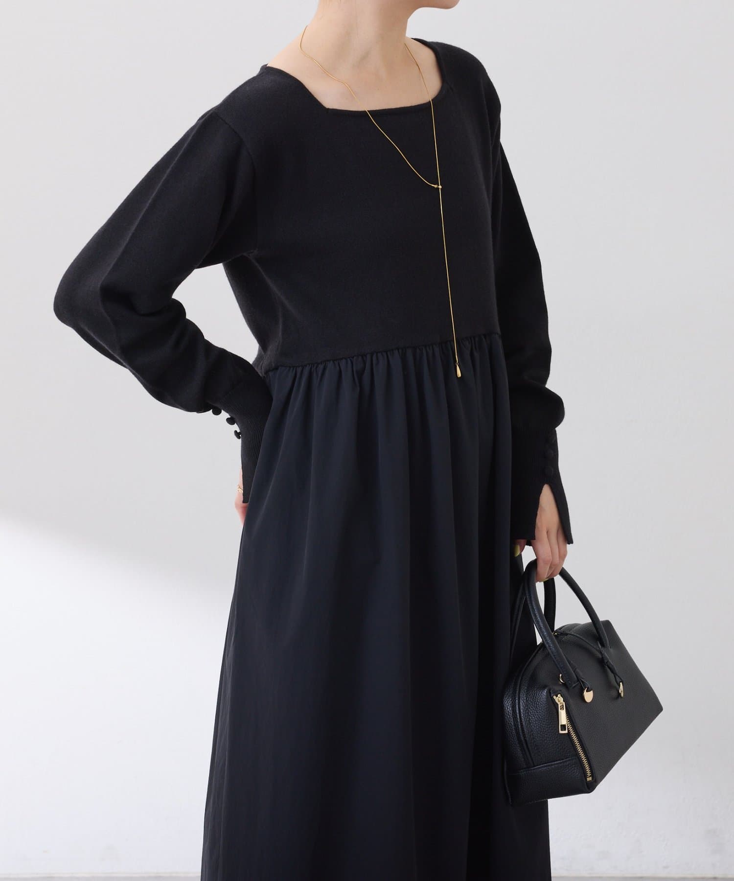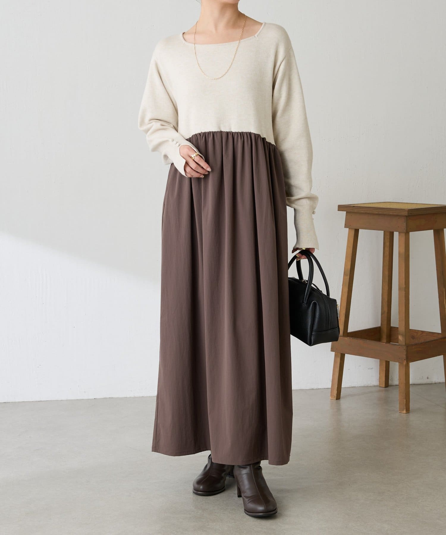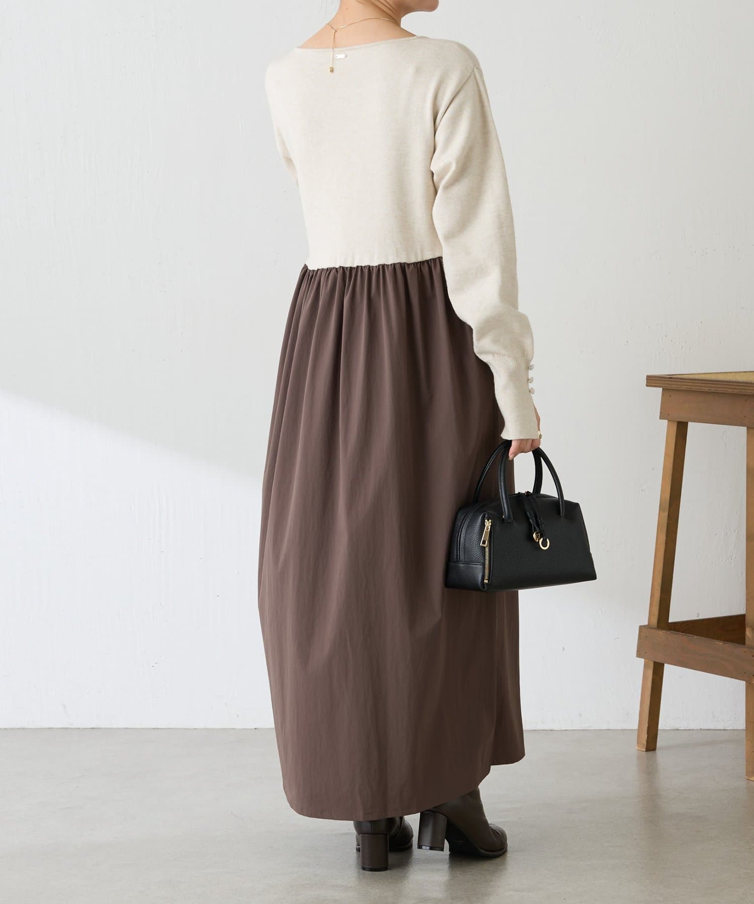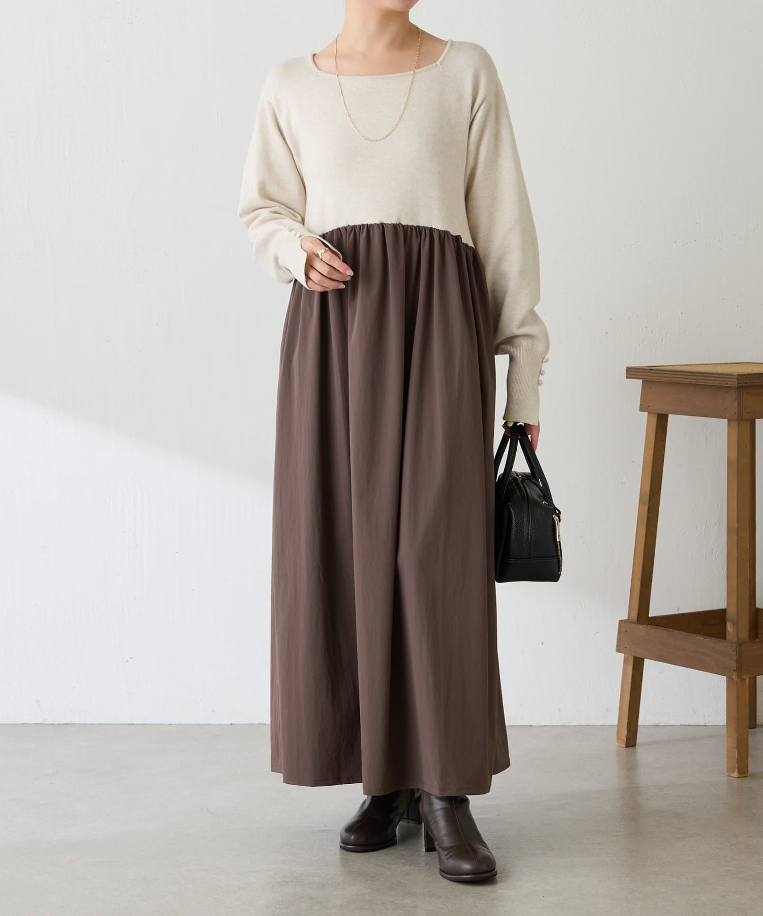 ・1枚で華やかな装いに仕上がるドッキングワンピース。