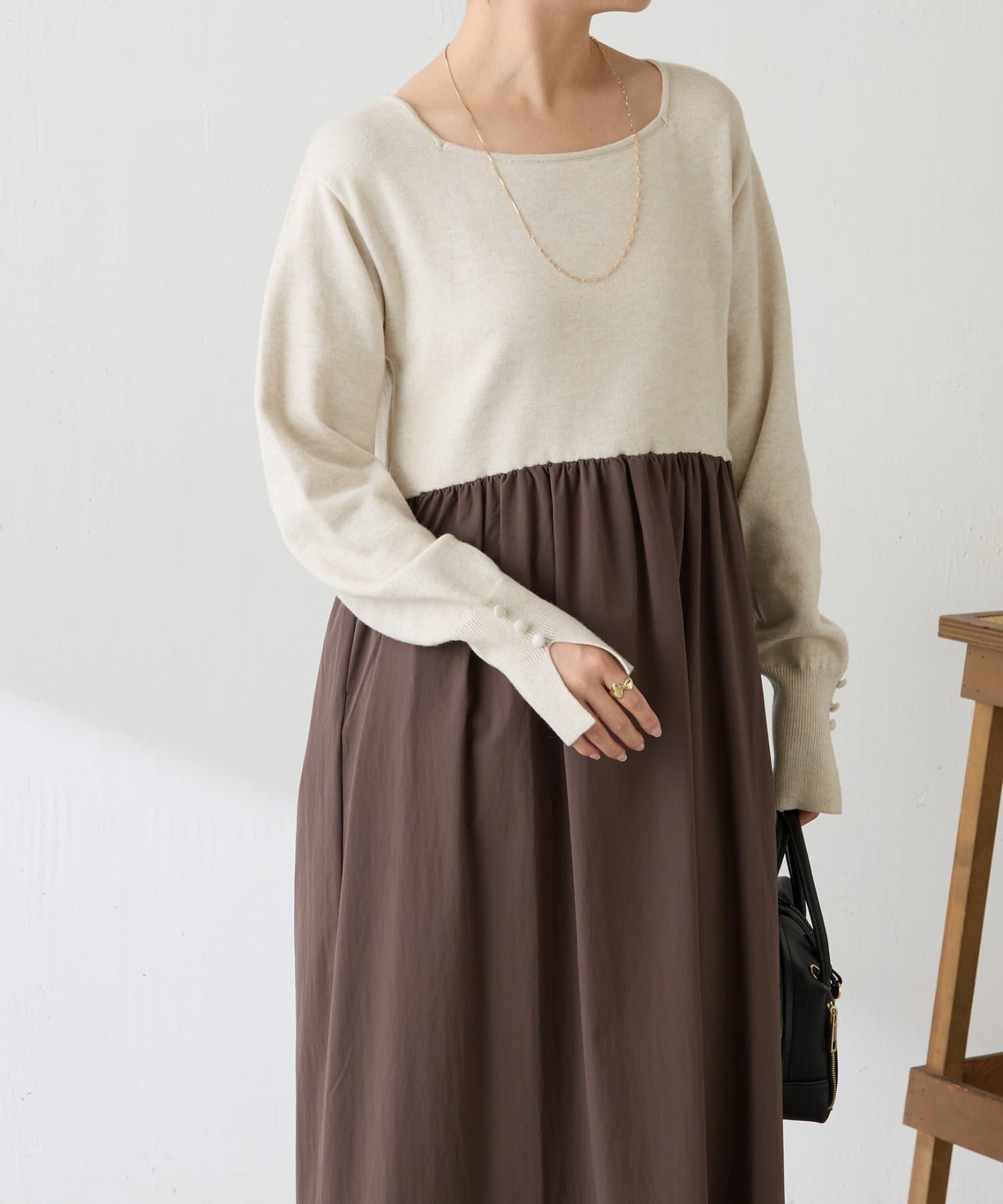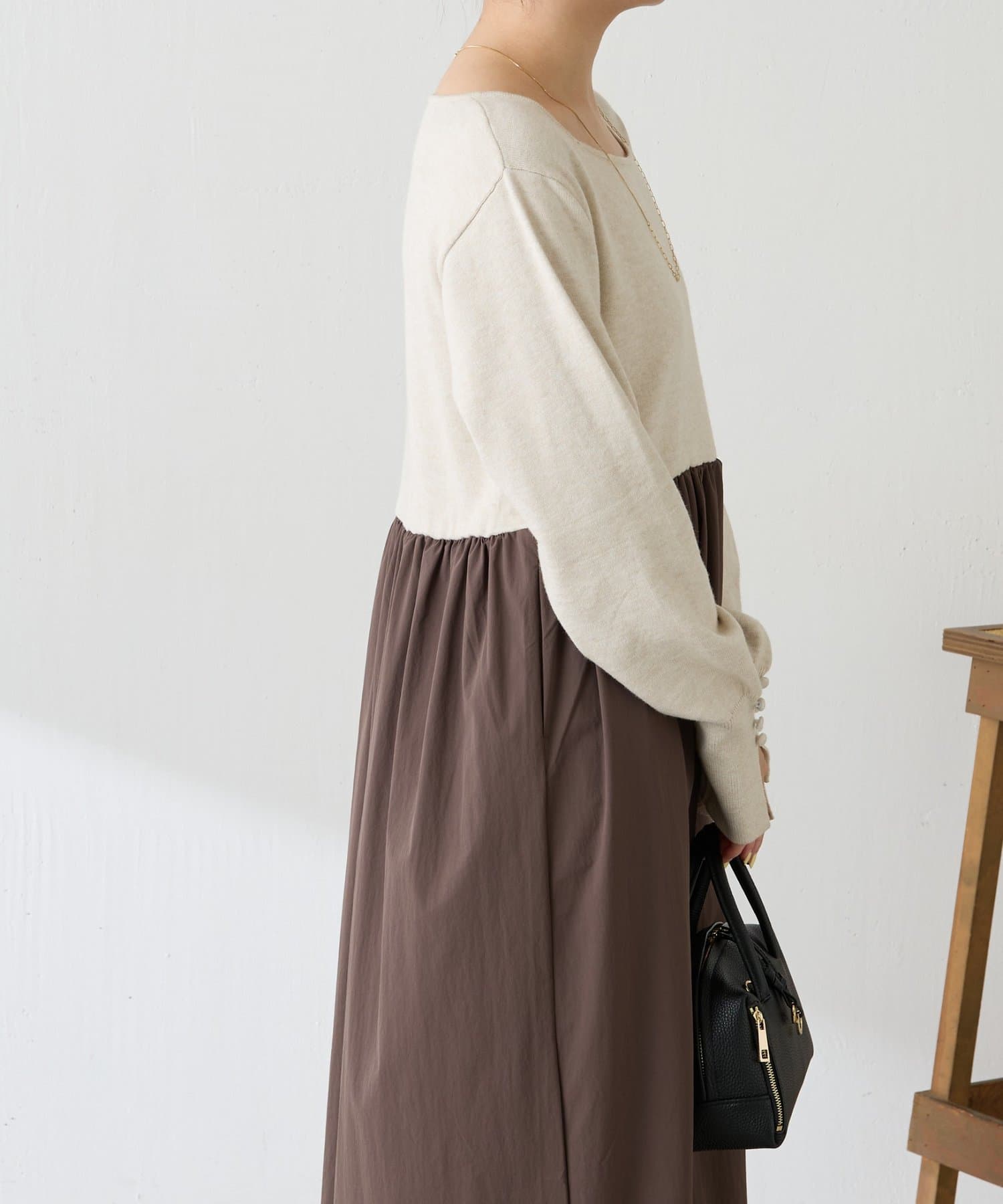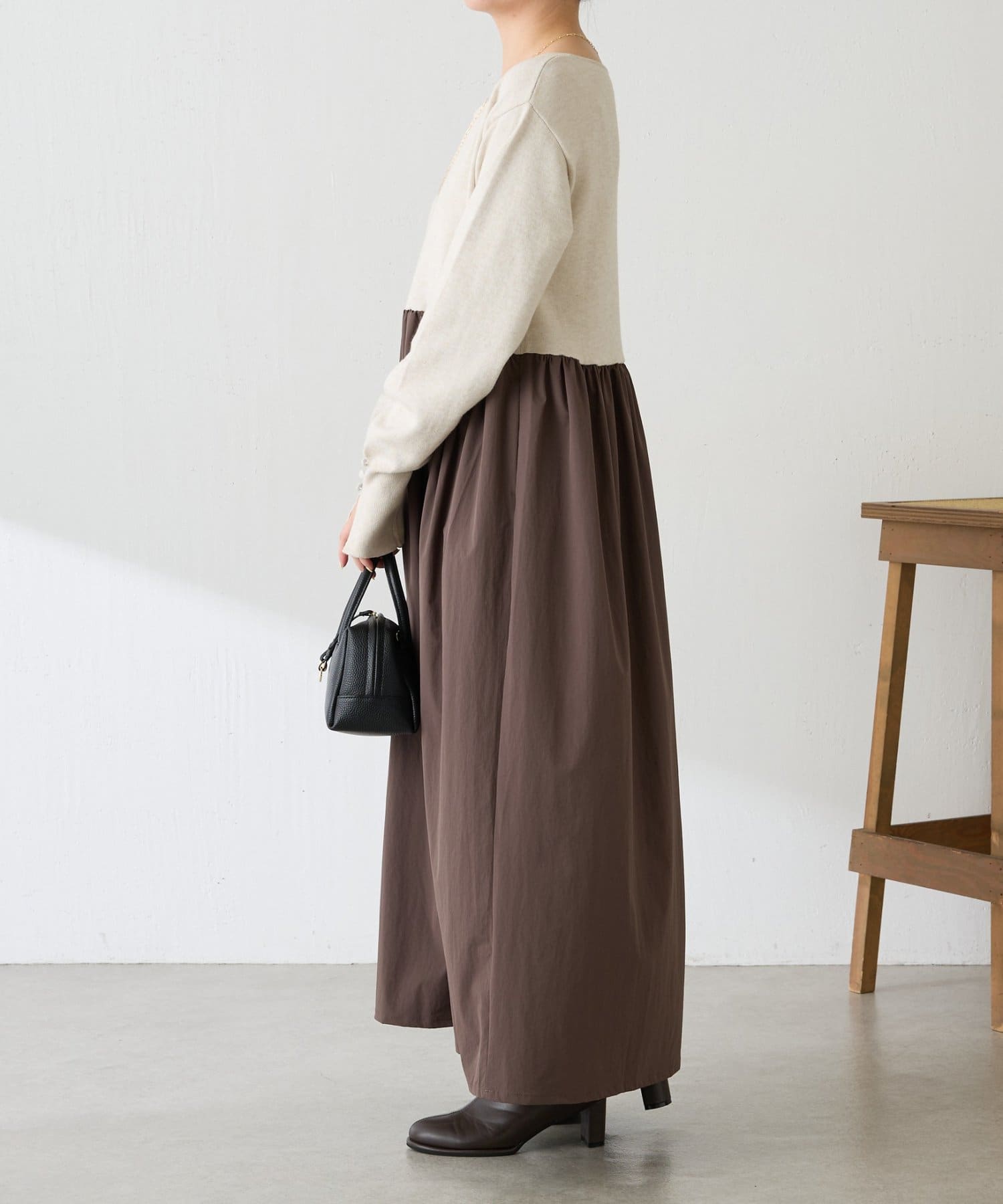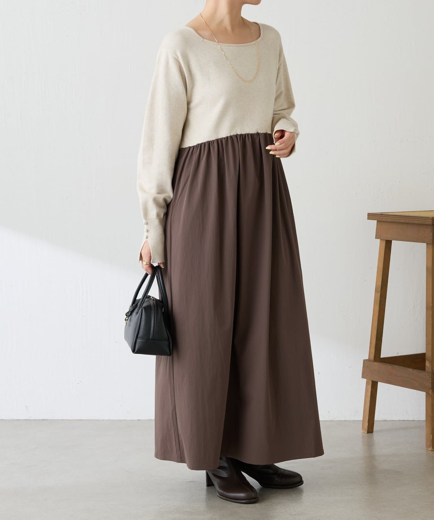 ・1枚で華やかな装いに仕上がるドッキングワンピース。