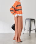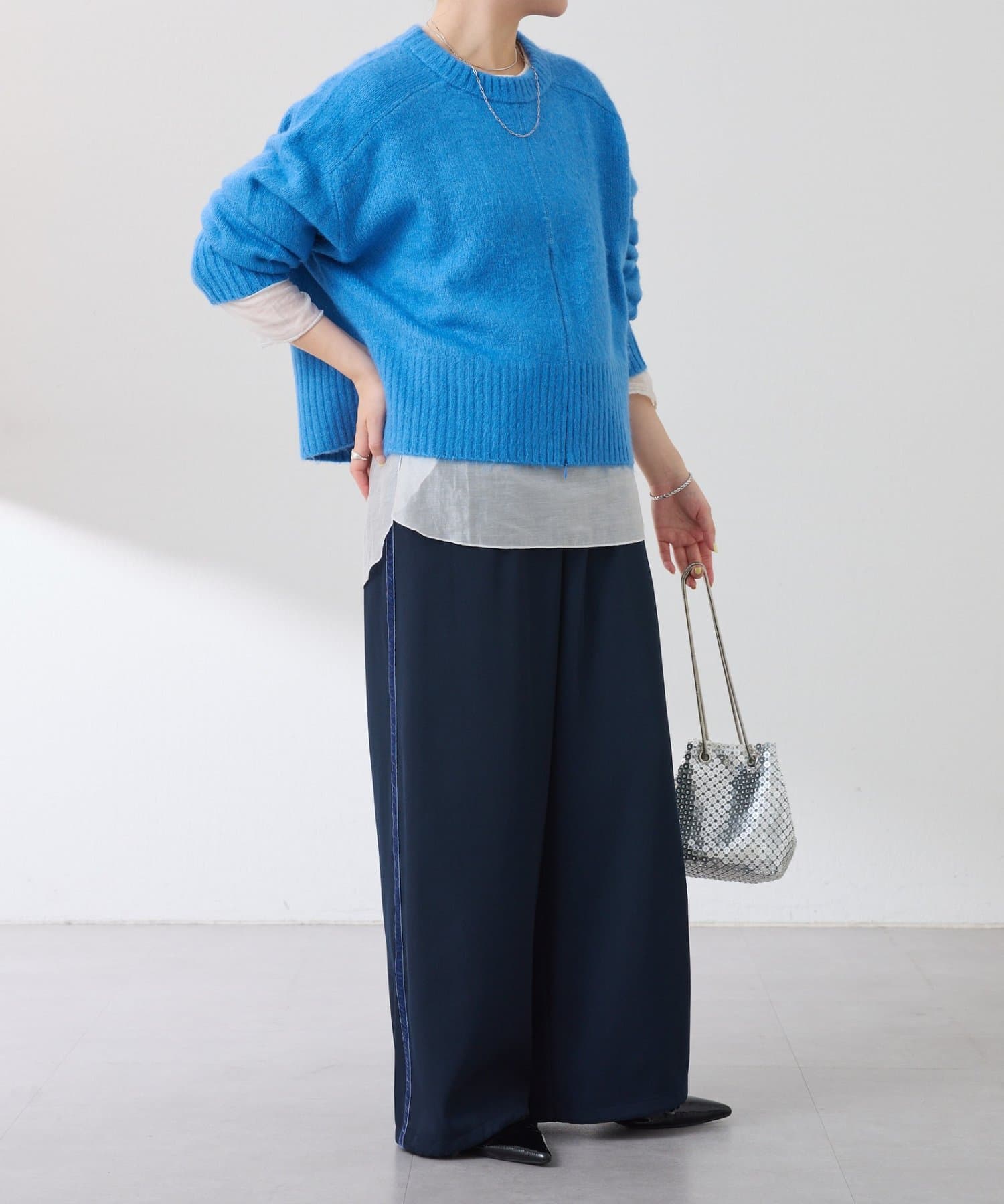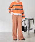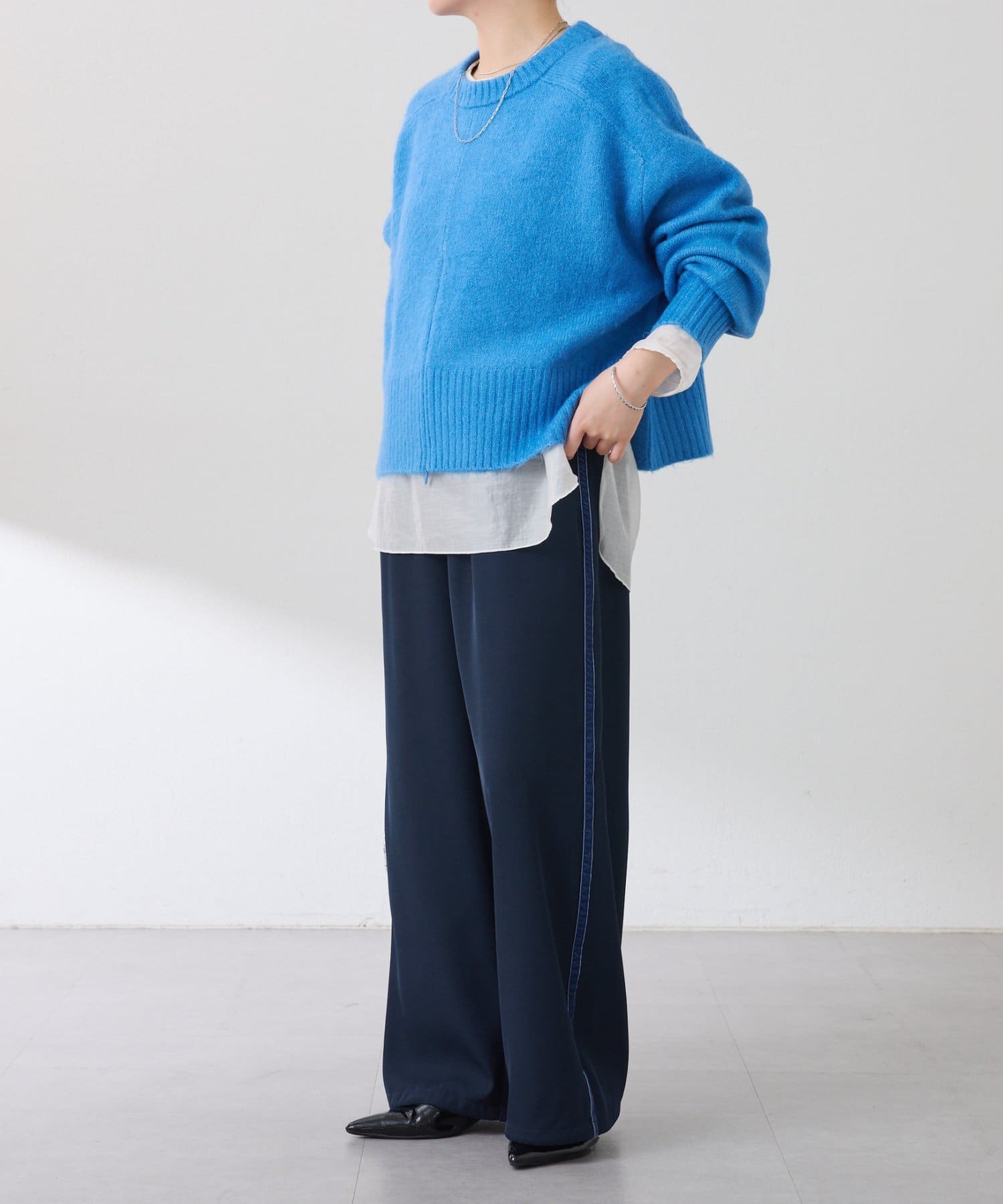 カラーニットや細リブニット、シルクシャツなどを合わせれば、スポーティなパンツもきれいめな印象で使えます。