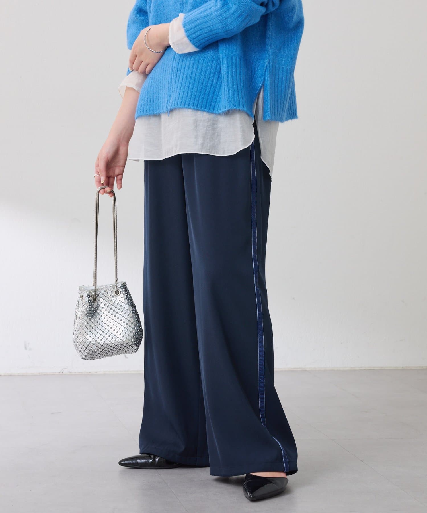 ・スポーティ要素のあるトラックパンツですが、上品見えする同系色のベロアテープできれい見えをキープ。