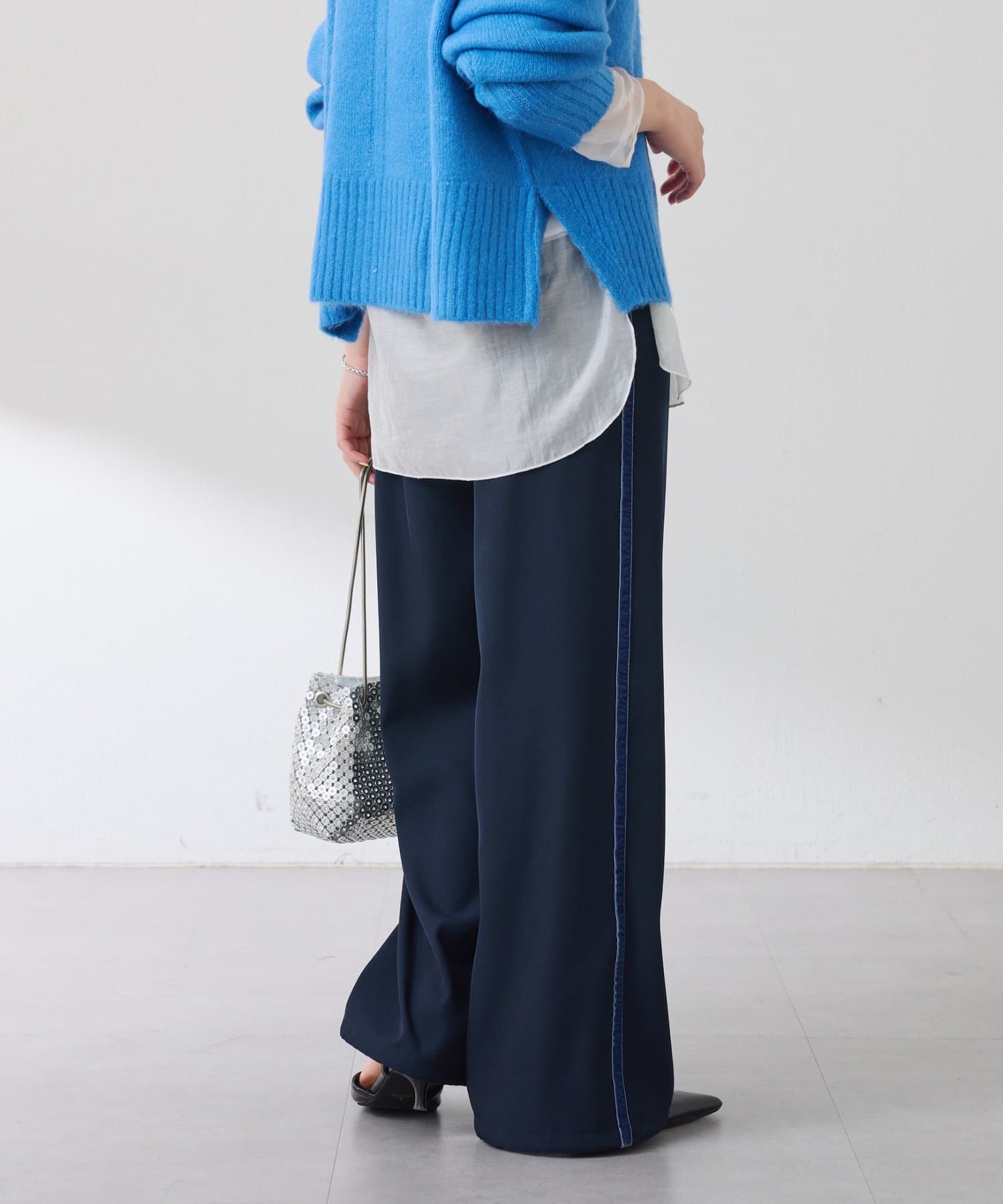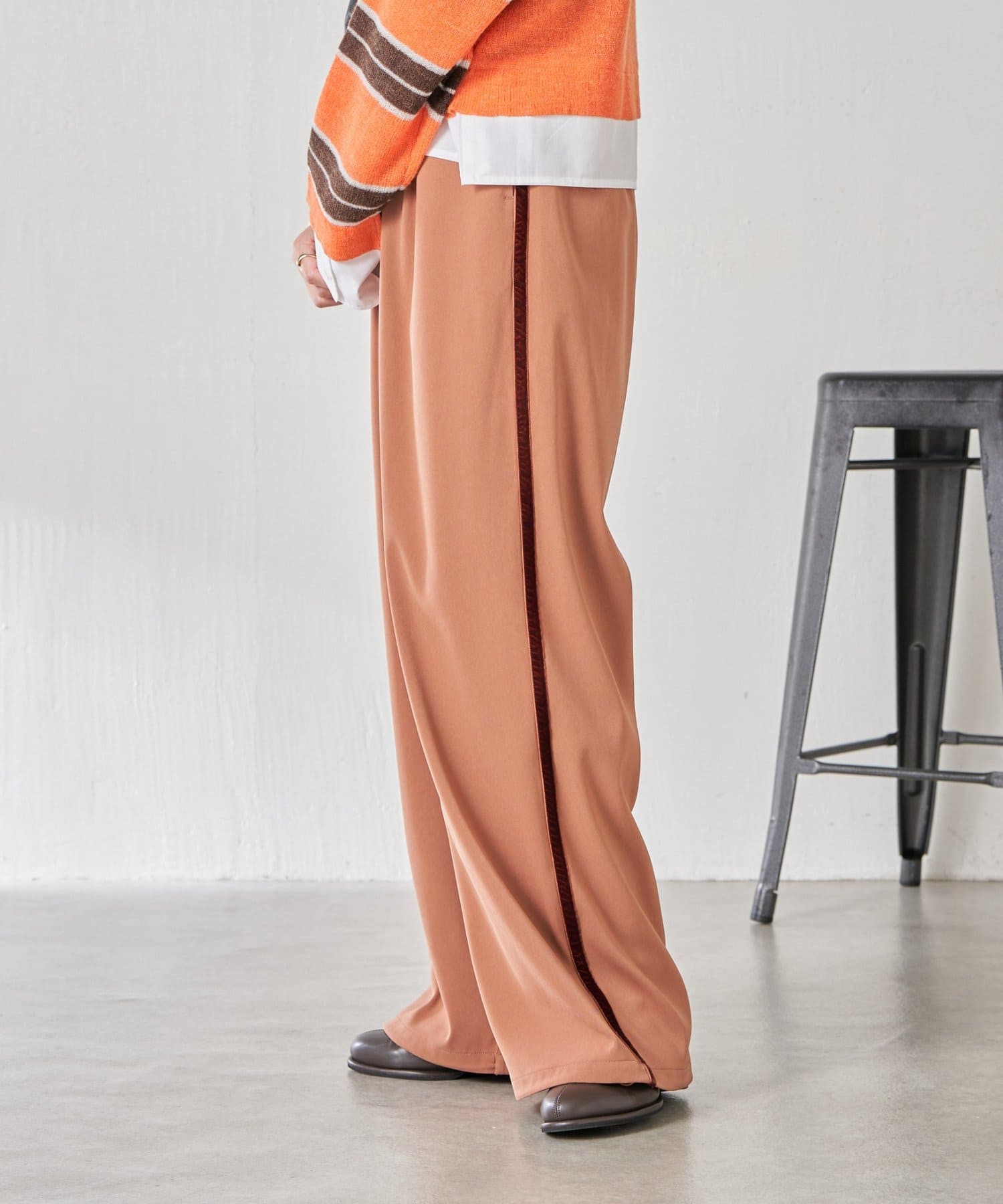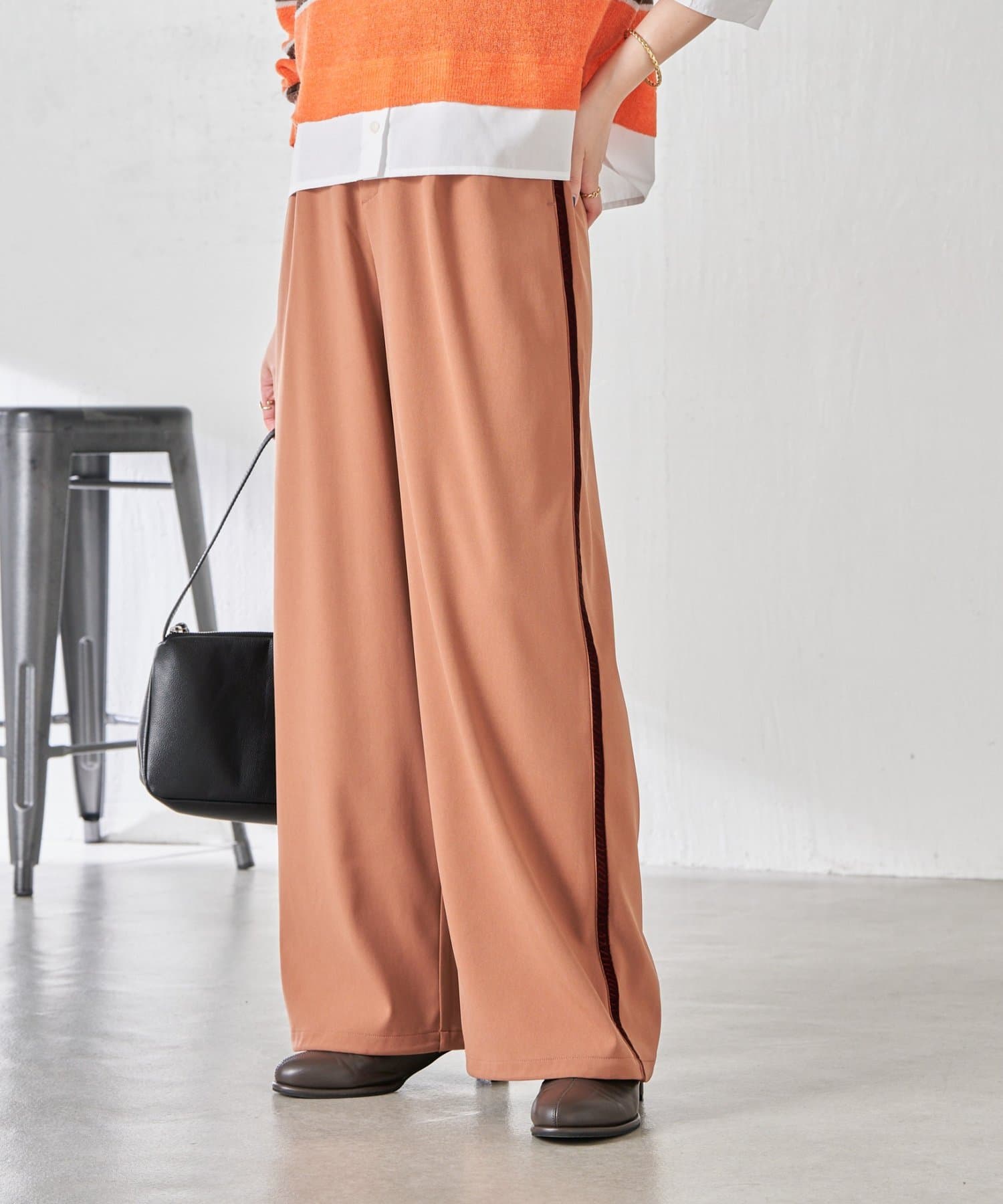 【美脚効果◎】サイドベロア裾ドロストパンツ