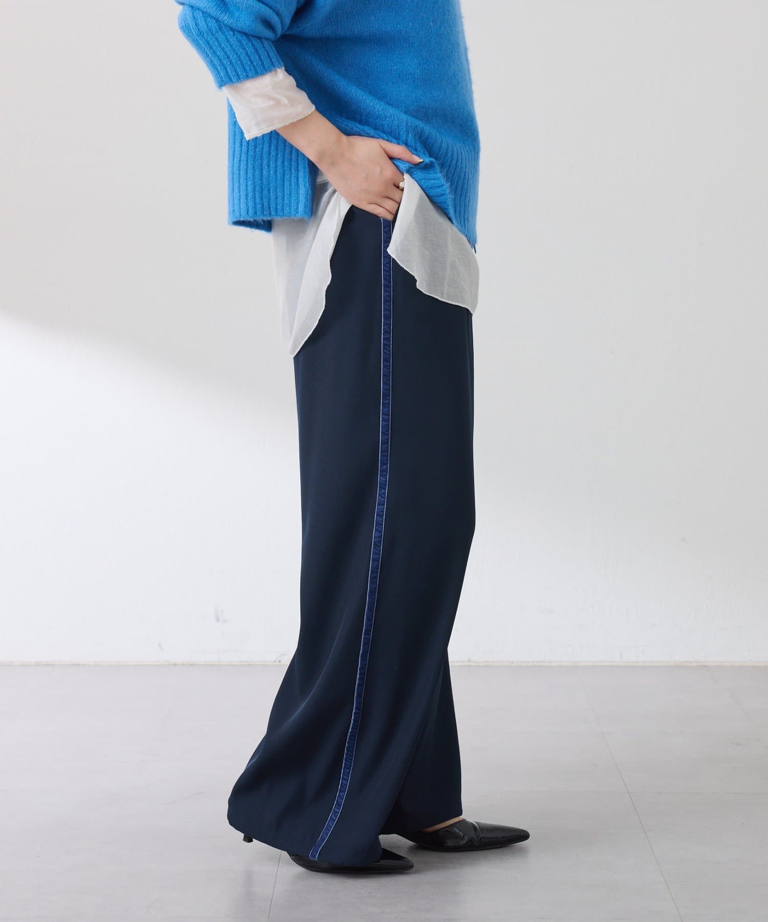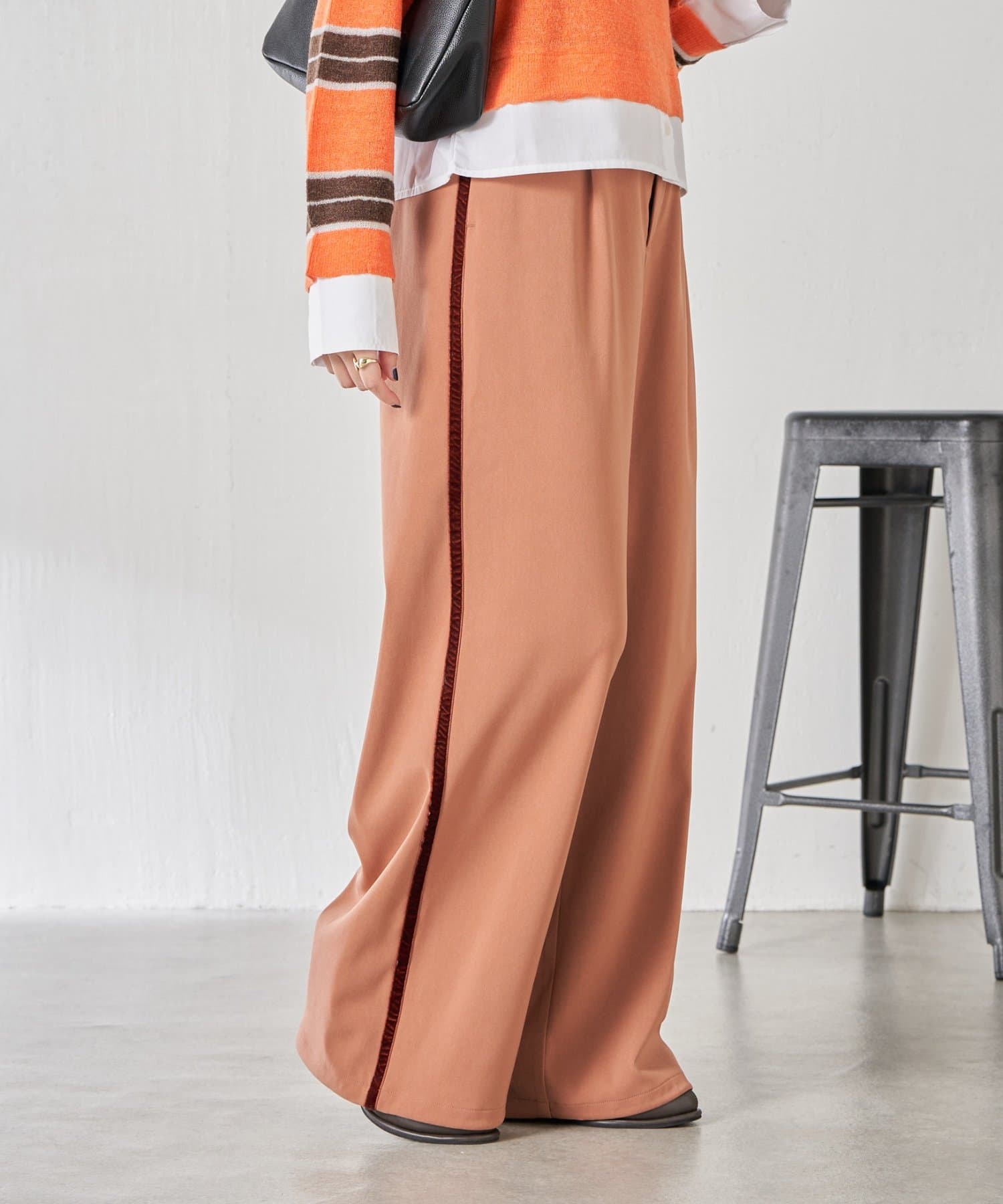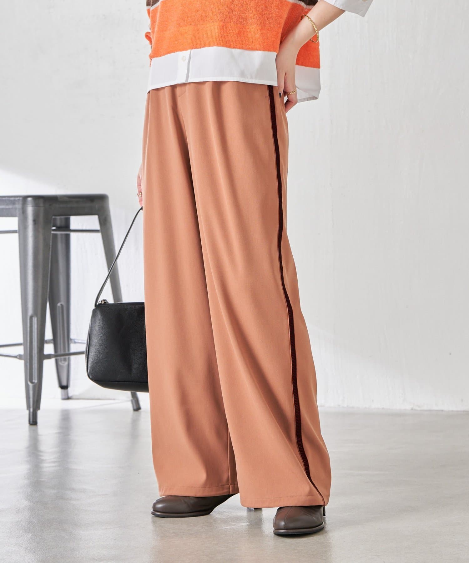 【美脚効果◎】サイドベロア裾ドロストパンツ