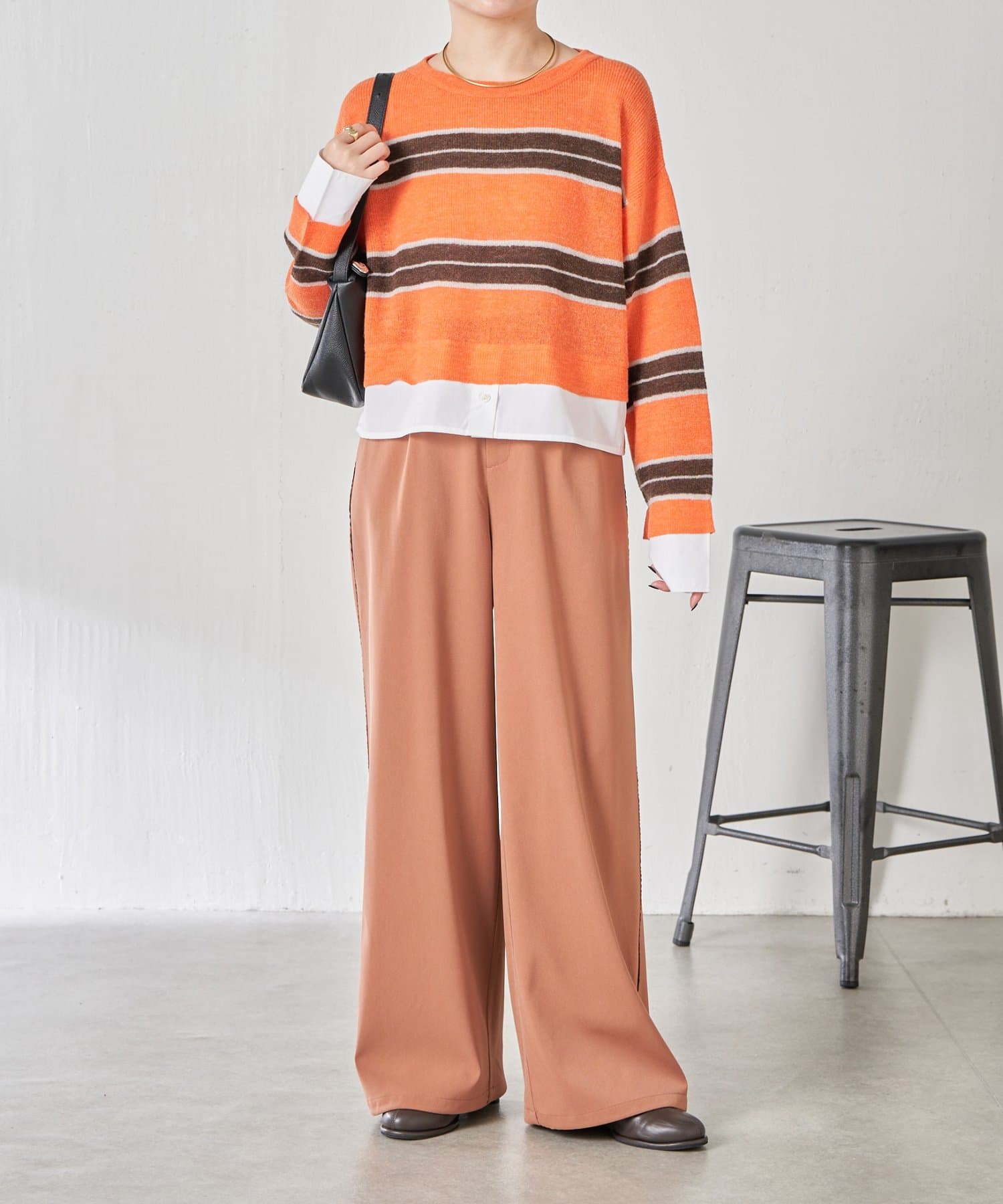 ・ワイドパンツですが、落ち感のある素材で広がりすぎずきれいなシルエットが魅力のパンツ◎