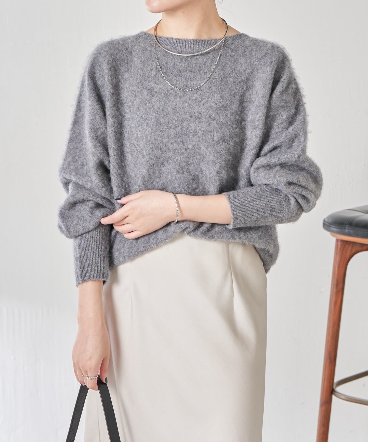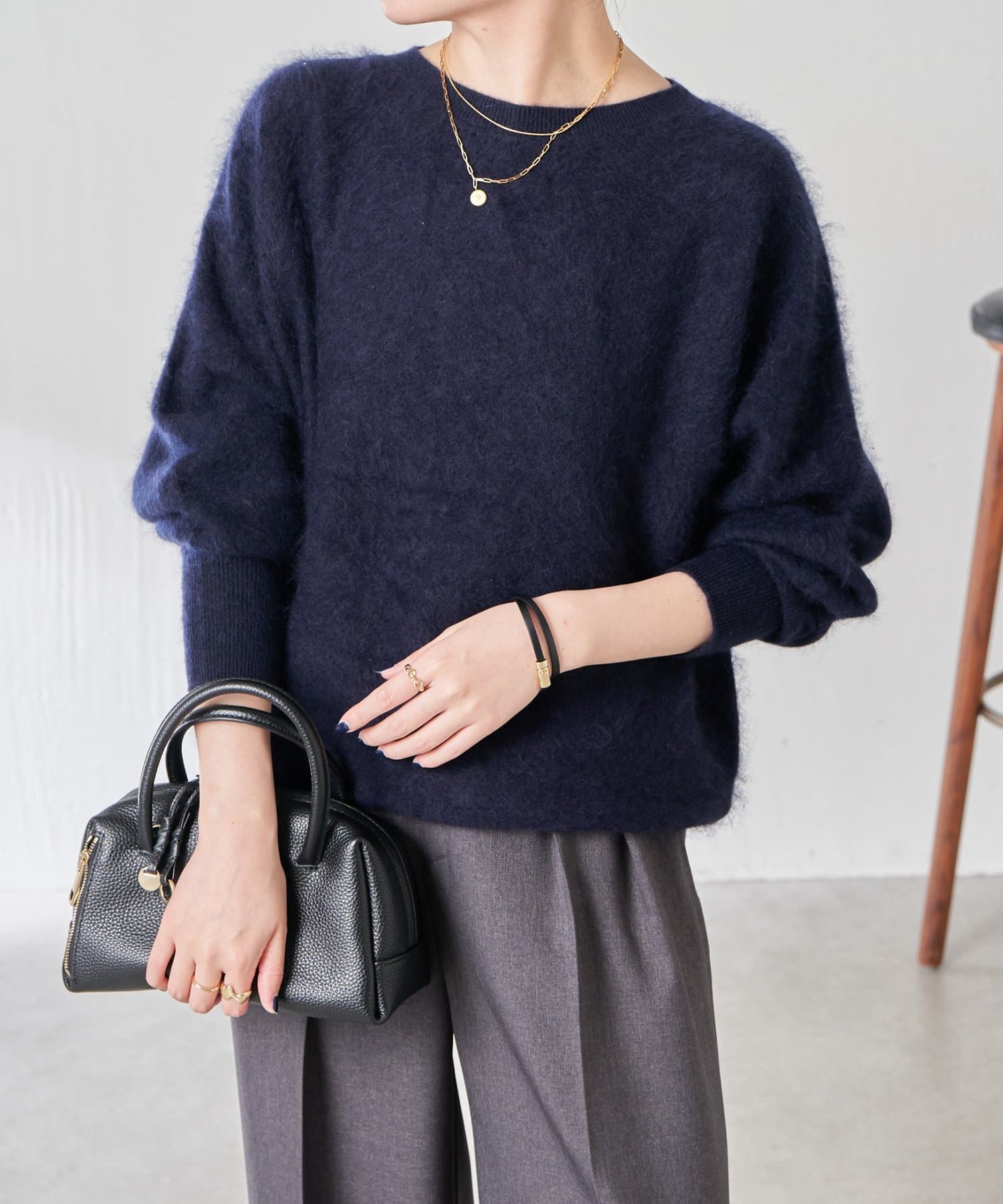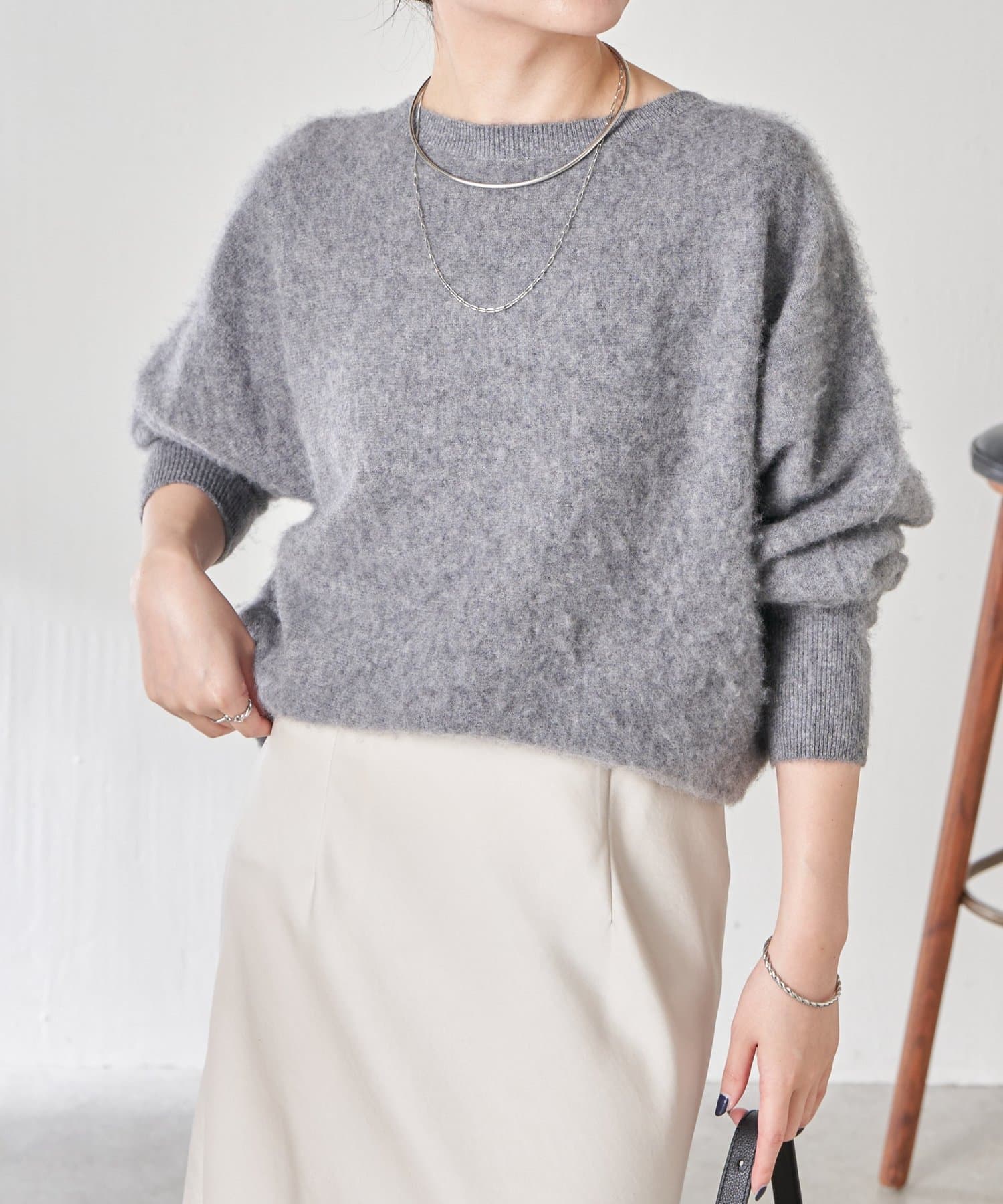 ・柔らかくぽわんとしたドルマンスリーブがリラックス感がありながらも女性らしい印象に。