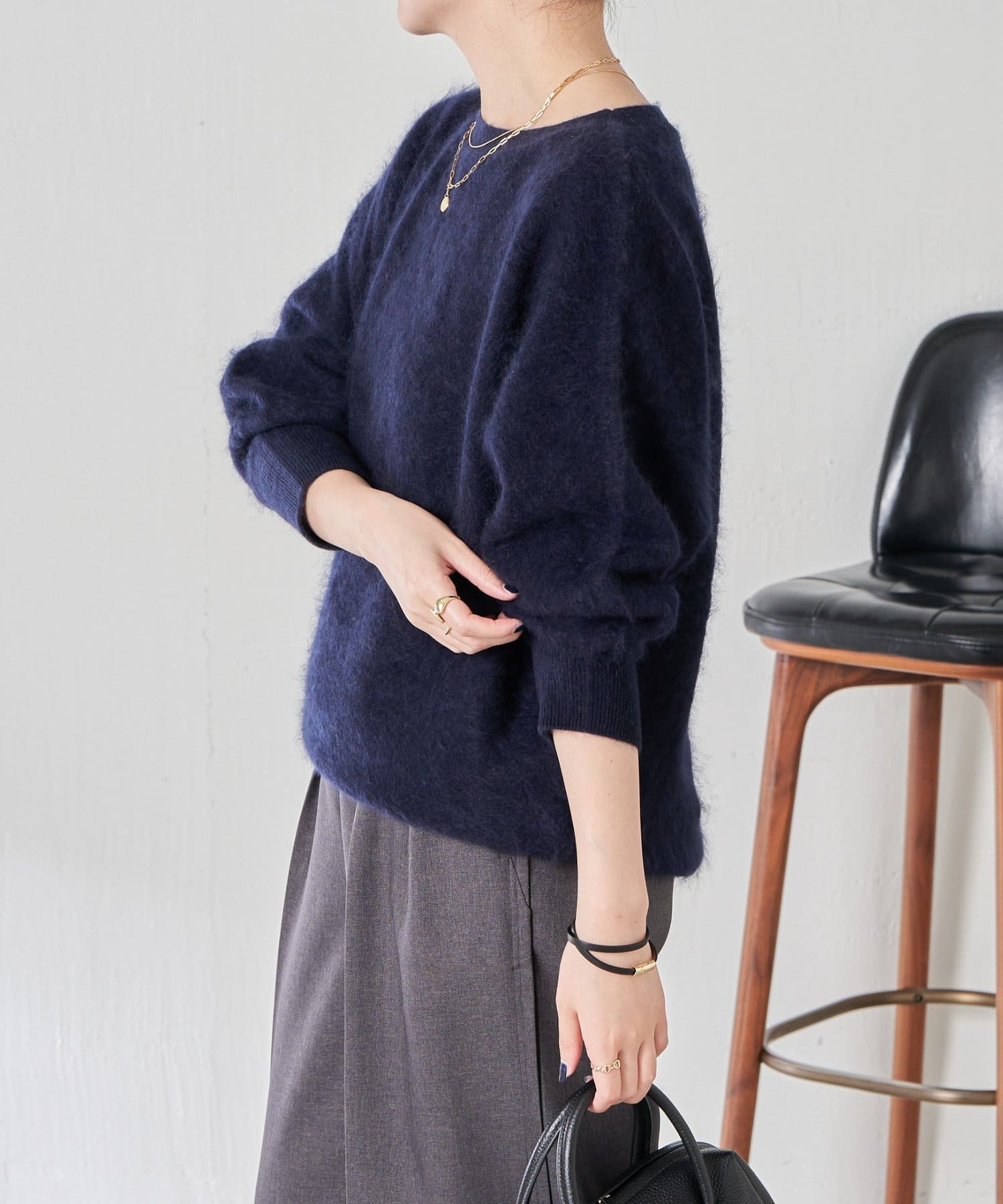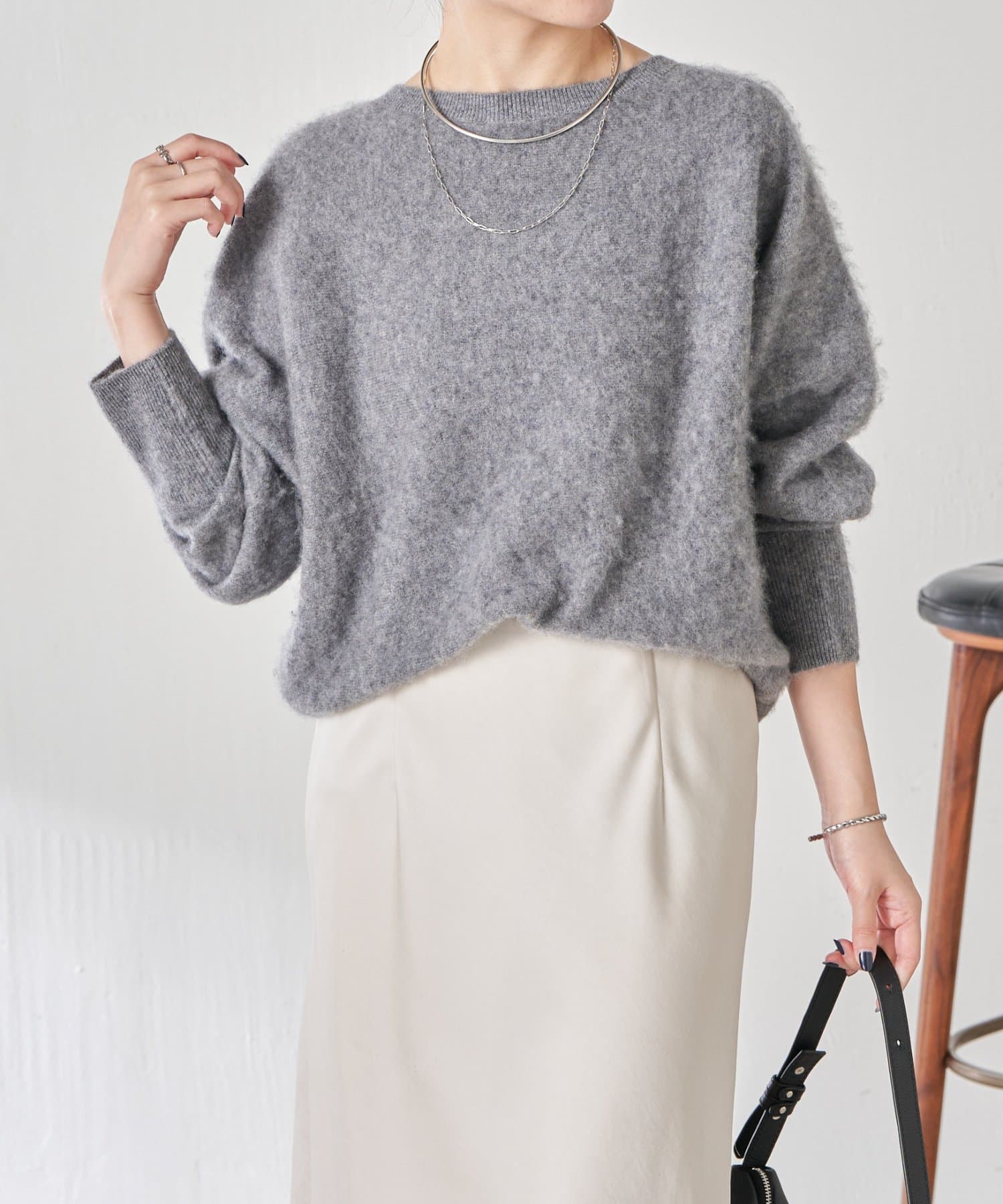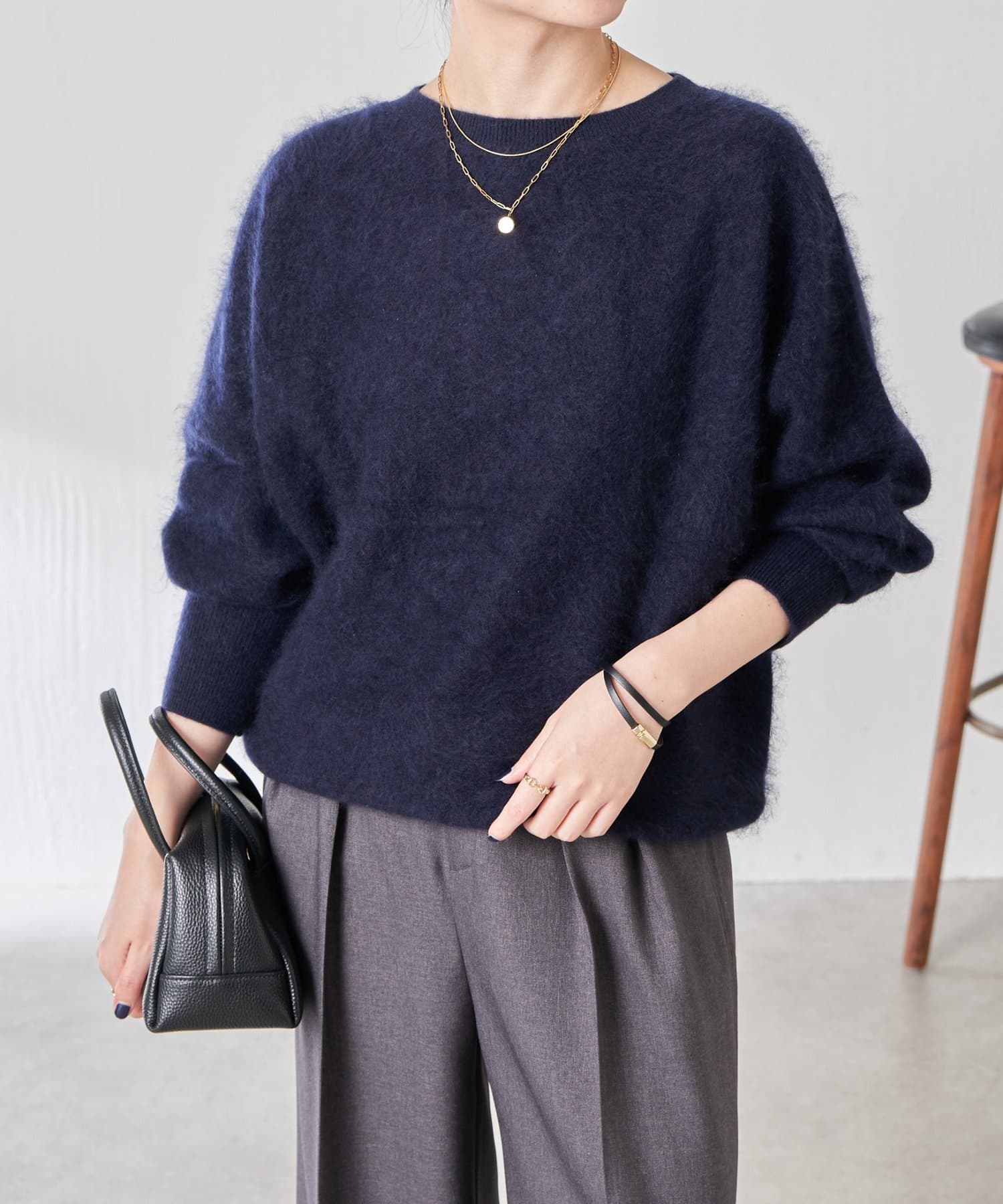 ・柔らかくぽわんとしたドルマンスリーブがリラックス感がありながらも女性らしい印象に。