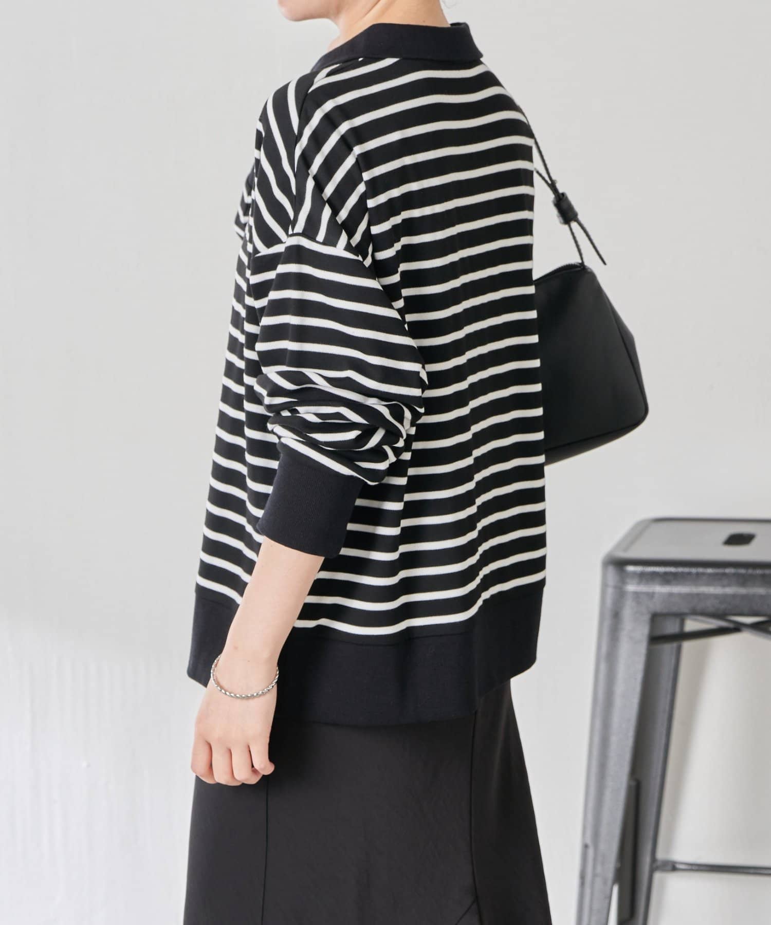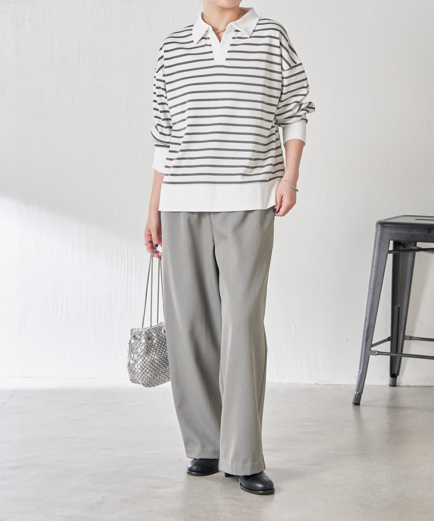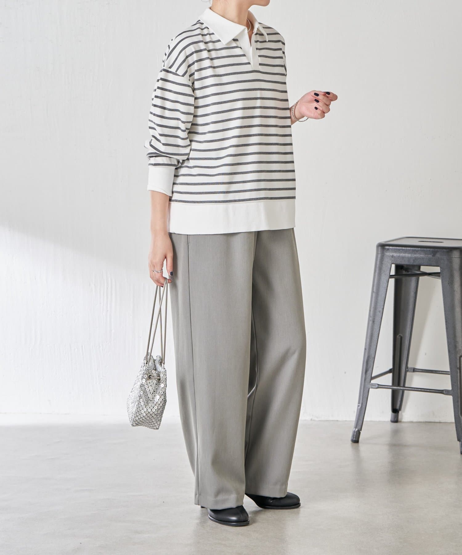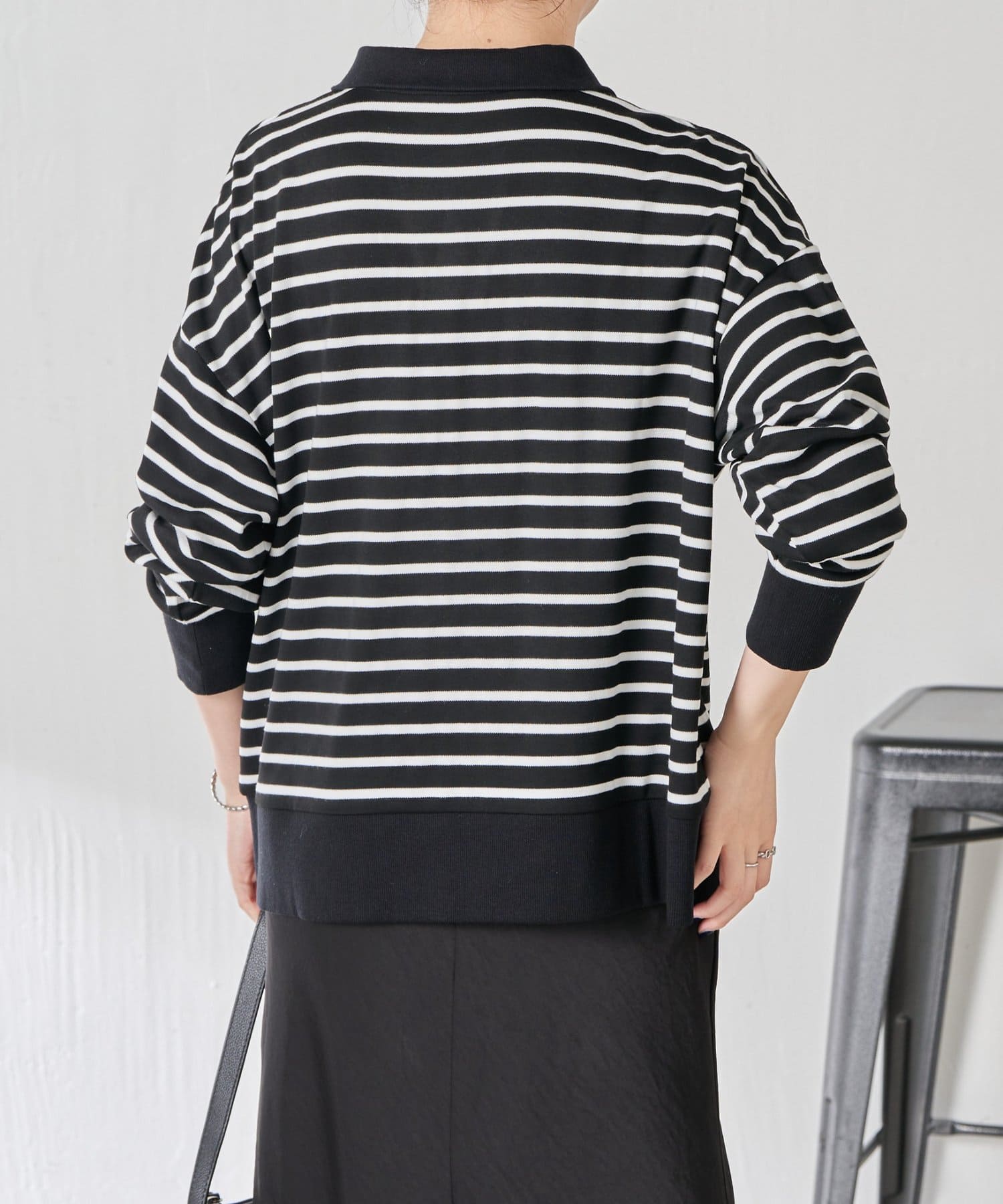 ・細めのボーダーなので、カジュアルにもきれいめにも着用できます。