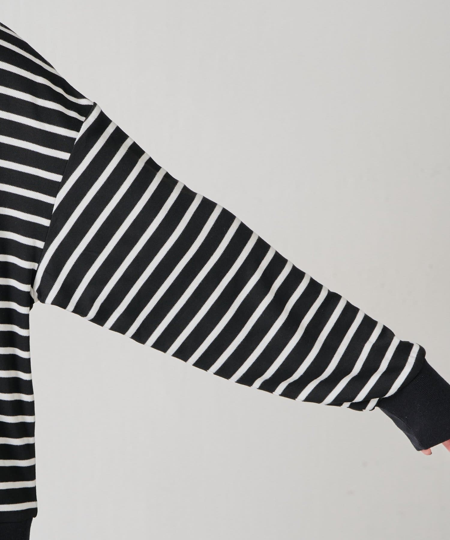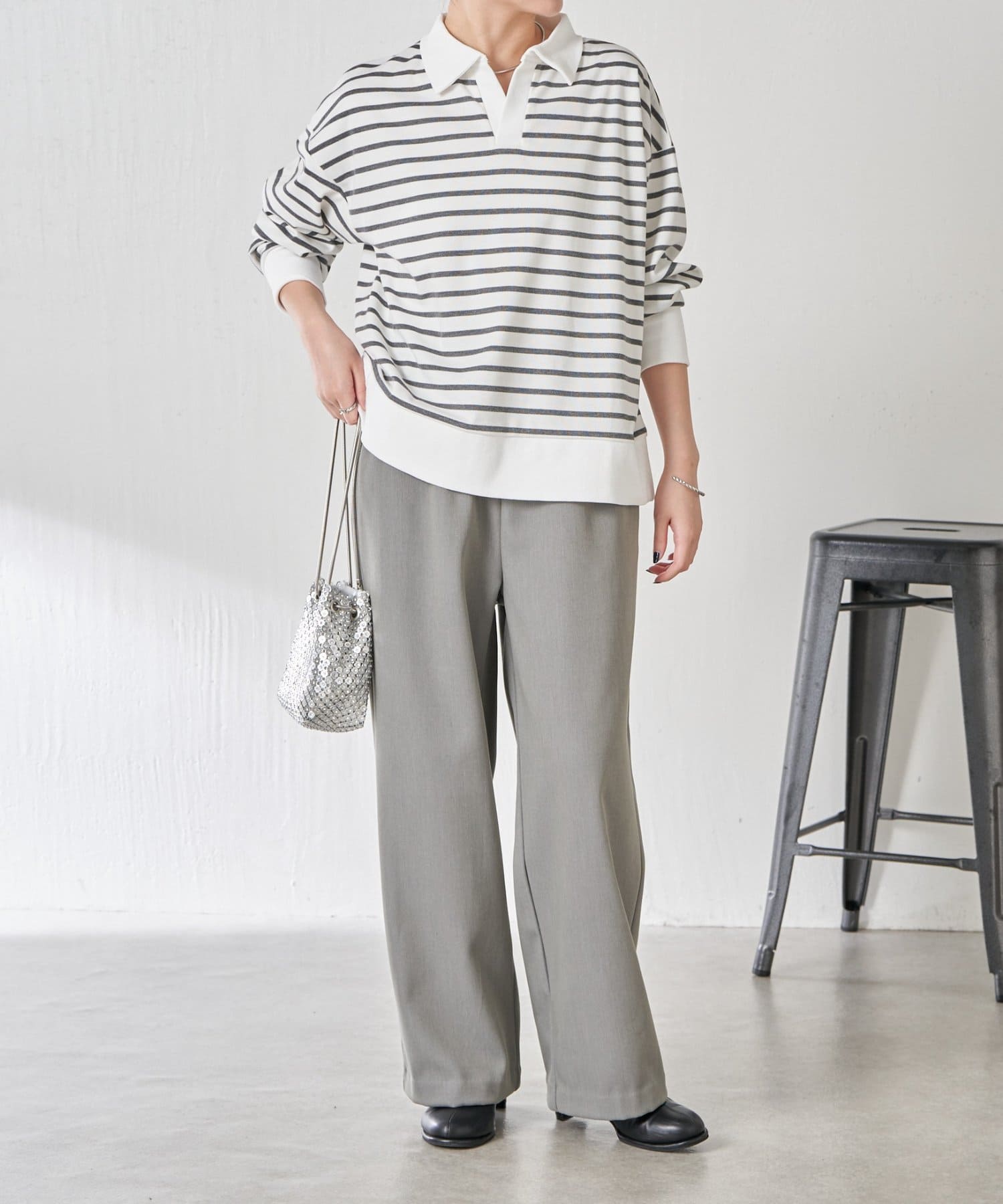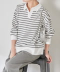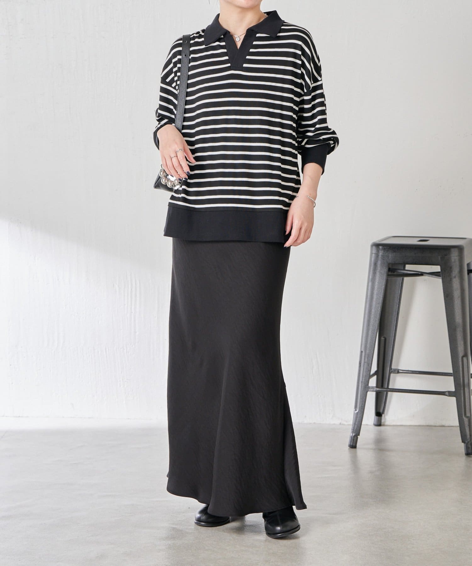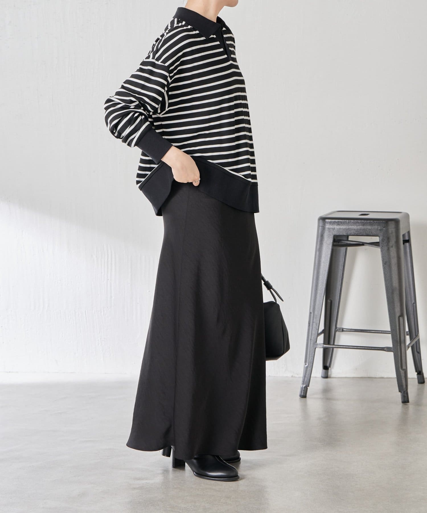 ・細めのボーダーなので、カジュアルにもきれいめにも着用できます。