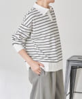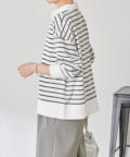 カジュアル見えしがちなボーダー柄ですが、ベーシックなカラー展開なので幅広い色のジャケットやベストともレイヤードしやすいです。