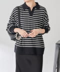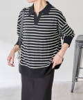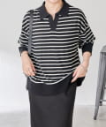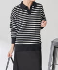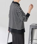 【腰回りカバー】ボーダーポンチニットソー