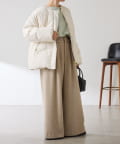 シンプルなIラインワンピースやワイドパンツと合わせる際は、裾のドロストを絞るとメリハリのあるスタイリングになります。