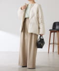 • ノーカラーにすることで、ハイネックやフーディに羽織ってもすっきり決まります。